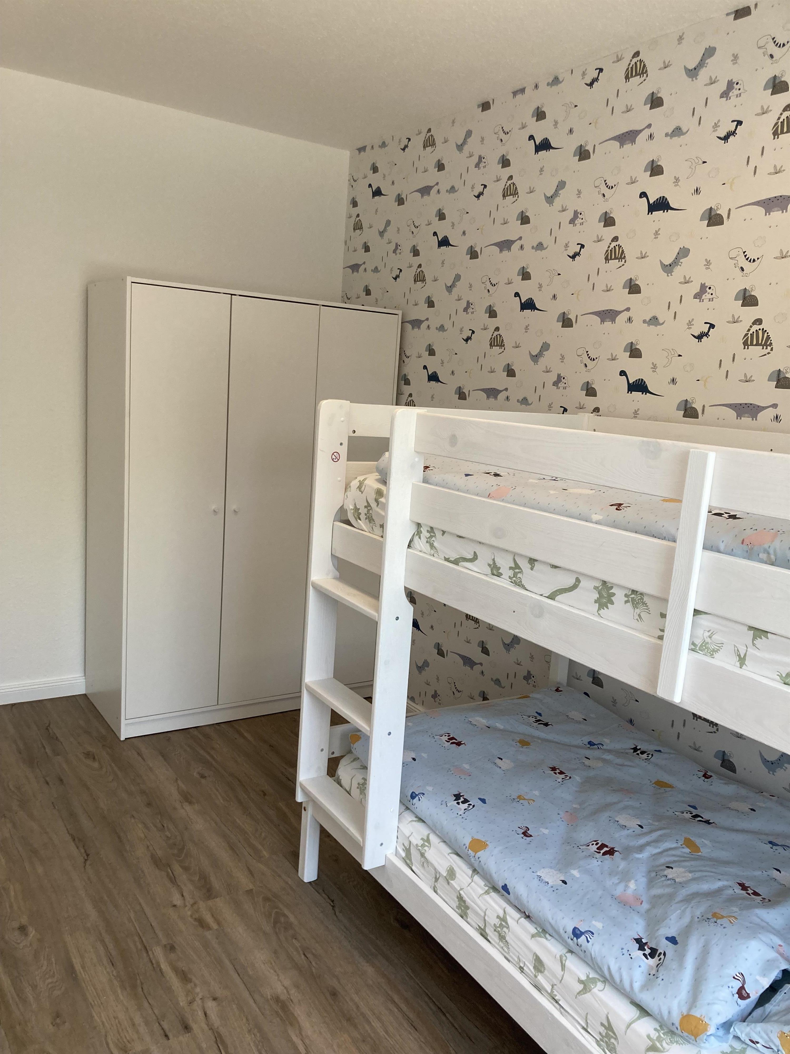 Das Elternschlafzimmer hat ein Doppelbett (180x200cm) und Kleiderschrank. Das Kinderzimmer verfügt über ein Etagenbett und einen Kleiderschrank.