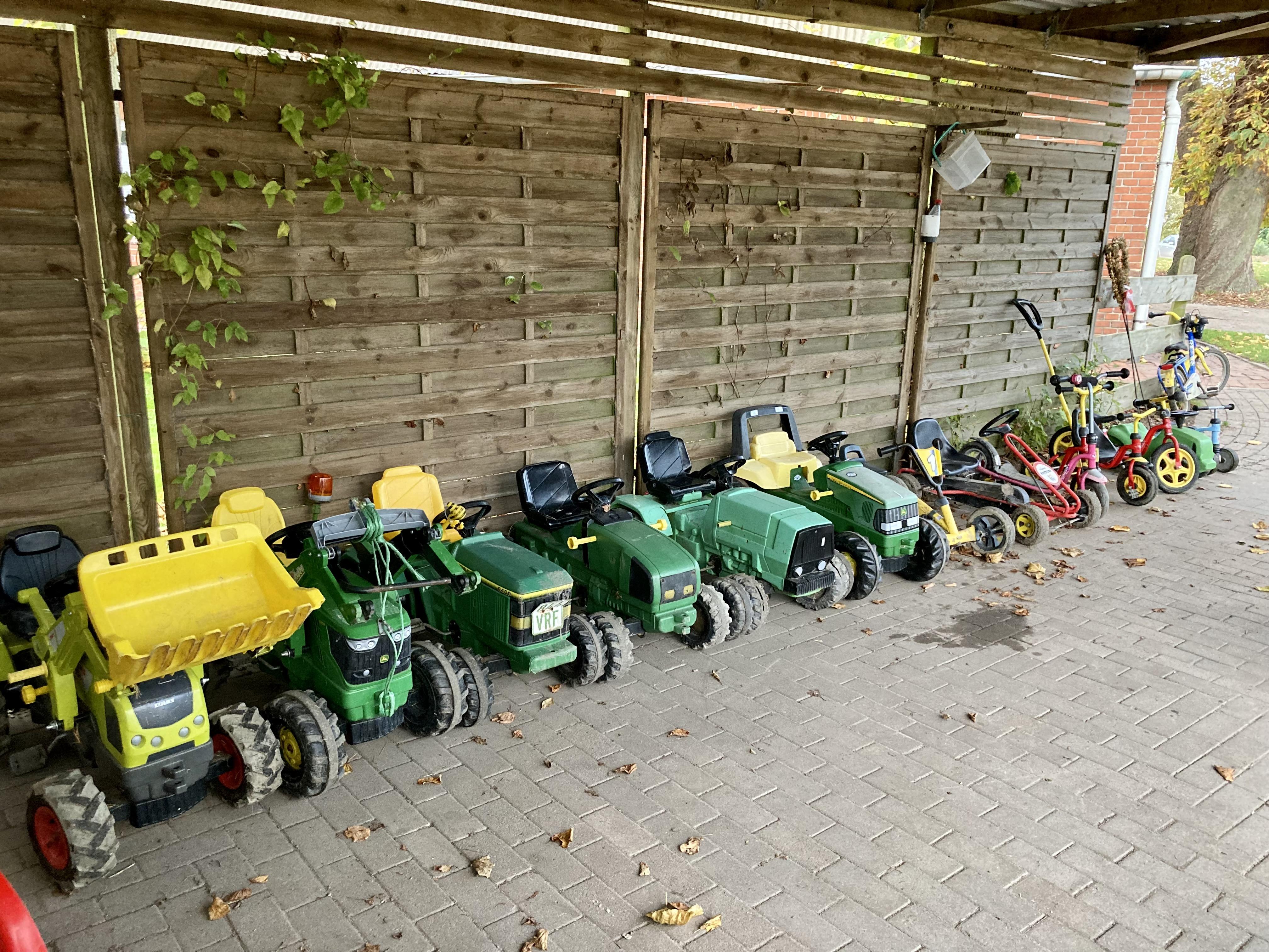 Gönnen Sie sich umgeben von Grün eine kleine Auszeit - unser großer Garten mit Terrasse und Gartenhäuschen lädt zum Entspannen und Erholen ein. Für unsere kleinen Urlauber gibt es einen Spielplatz in unserem Garten und außerdem steht noch ein großer Fuhrpark von Trettraktoren über Laufräder bis hin zu Kettcars zur Verfügung.