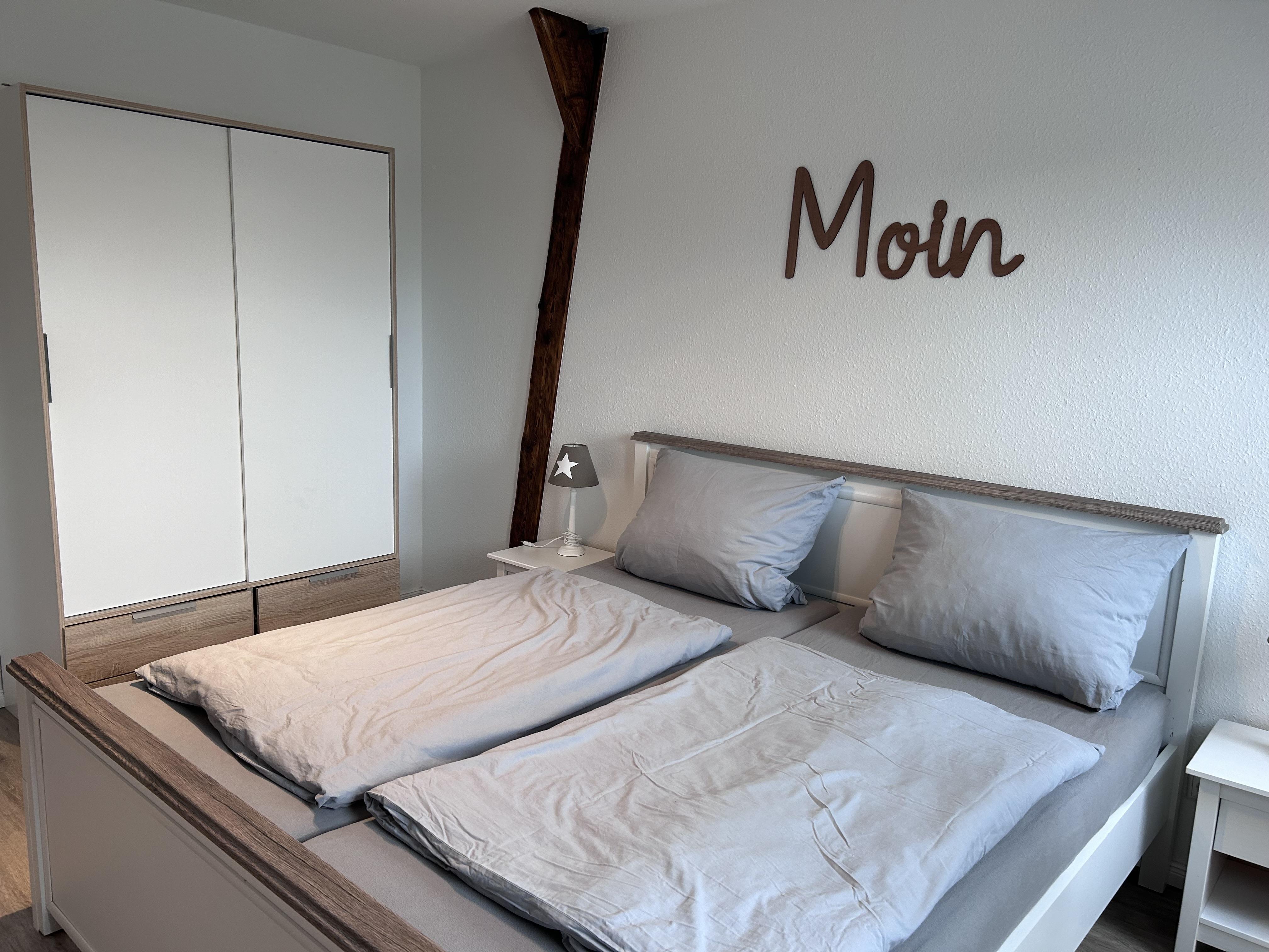 Unsere neu entstandene Obergeschosswohnung hat eine Wohnfläche von ca. 60 qm. Der Wohnraum ist hell, modern und gemütlich eingerichtet. Der Wohn/Essbereich bietet aureichend Platz für die ganze Familie. Das Elternschlafzimmer hat ein Doppelbett (180x200cm). Das Kinderzimmer verfügt über ein Etagenbett und ein Einzelbett. Die vollausgestattete Küche bietet Ihnen alles, was Sie für Ihren Urlaub benötigen u.a. Geschirrspüler, Backofen, Mikrowelle, Kaffeemaschine etc. In der Wohnung befindet sich ein Duschbad mit Handtuchwärmer. Die Wohnung hat direkten Blick über die tollen Panoramafenster und ausklappbaren Mini Balkon in den Garten und Spielplatz. In einem separaten Raum gibt es die Möglichkeit gegen Gebühr zu waschen und zu trocknen.