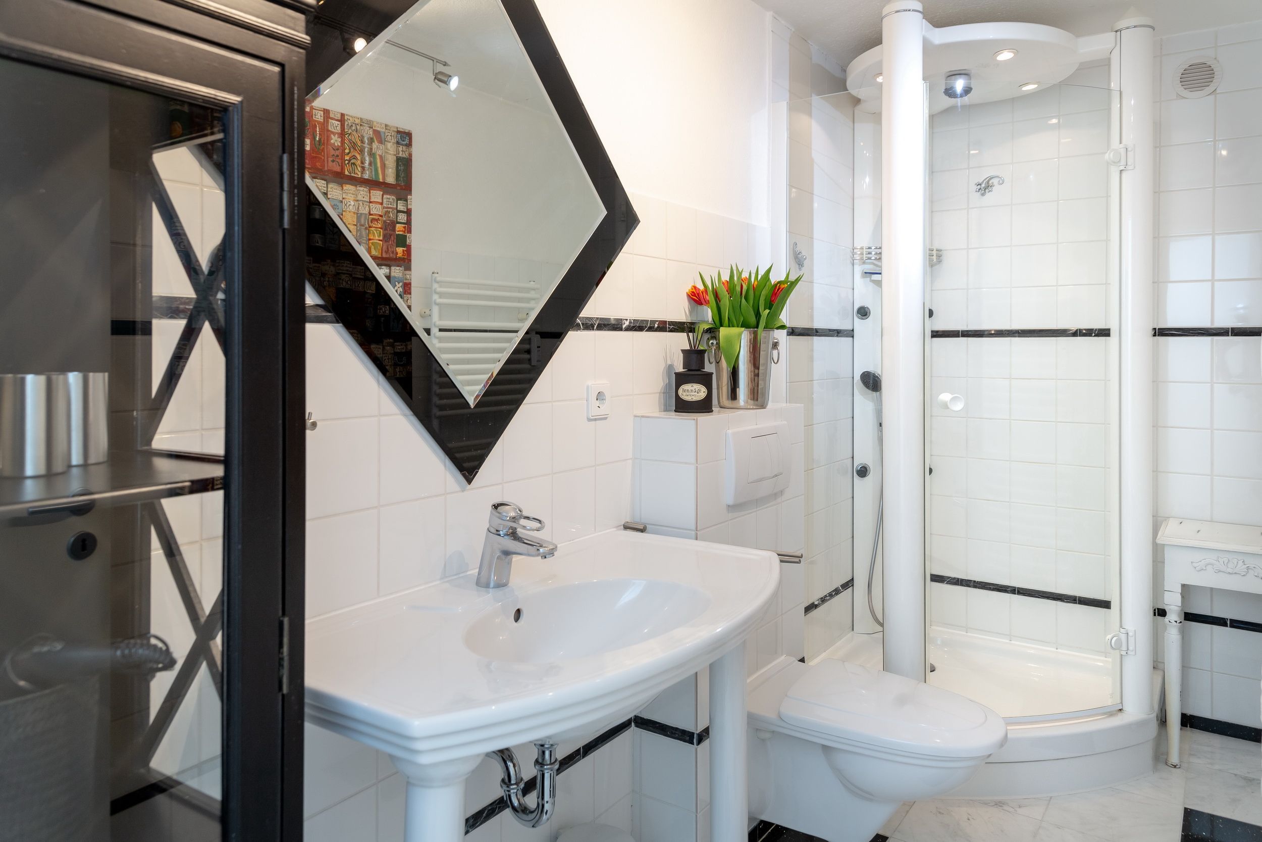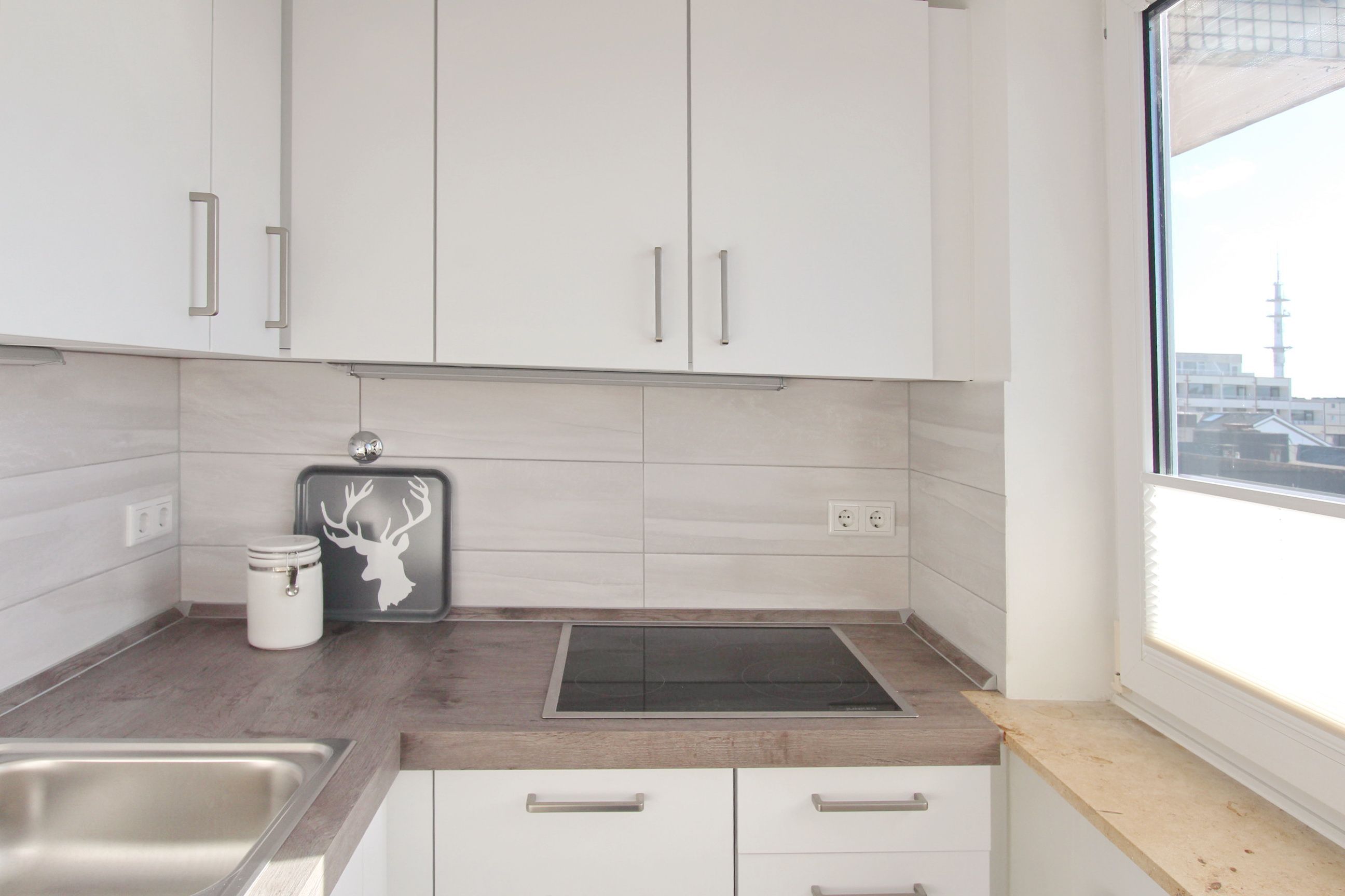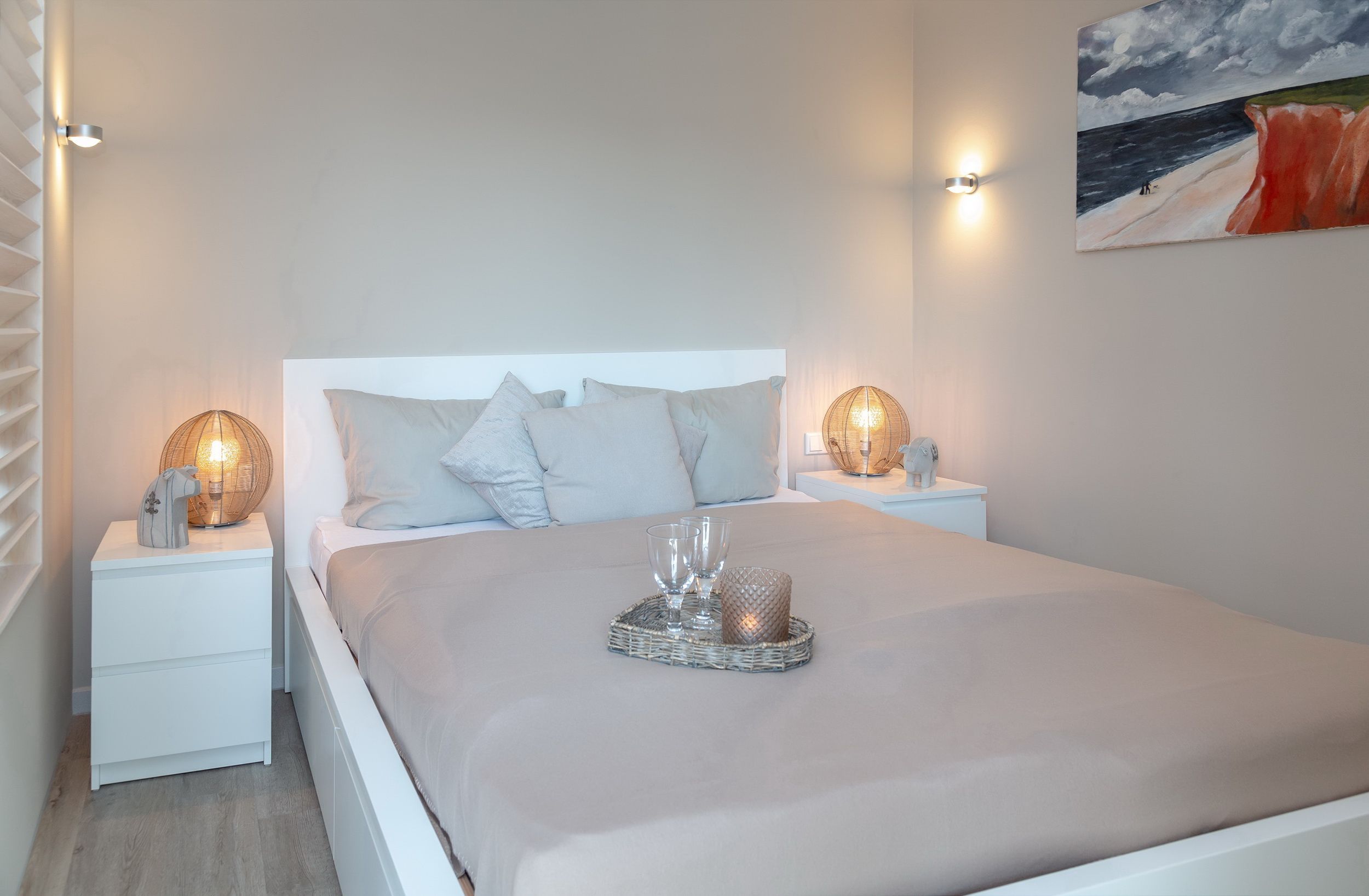 Kleine Wohlfühloase in direkter Strandnähe. Diese hell und freundlich eingerichtete Einzimmerwohnung in der 4. Etage im Beach House Stil verfügt über einen kombinierten Wohn-/Schlafraum mit einem feststehenden Bett, einen Essplatz für 2 Personen am Fenster und eine bequemen Couch mit Stoffbezug. Der Laminatboden macht den Raum hell und verleiht ihm ein angenehmes Wohnklima. In der kleinen, modernen Küche mit Geschirrspüler, 4 Platten-Ceranfeld und Mikrowelle können sie sich selbst versorgen. Die Küche hat ein Fenster zur Ostseite und ist somit gut zu belüften. Badezimmer mit Luxus-Komfort-Duschtempel, Fön, Handtuchtrockner und Kosmetikspiegel. Zur technischen Ausstattung gehört: ein Smart-Flachbildfernseher und eine Stereoanlage mit CD Player. Der Eigentümer bittet Sie darum, in dieser Wohnung nicht zu rauchen. Ein kostenfreier Hotspot im Haus, der ihnen kabellosen Zugang ins Internet ermöglicht, ist vorhanden (WEG-AD3 - Passwortfrei - ohne Gewähr). Die Größe dieser Nichtraucherwohnung beträgt: ca. 35 m². Vierbeinige Begleiter sind ausdrücklich erlaubt.