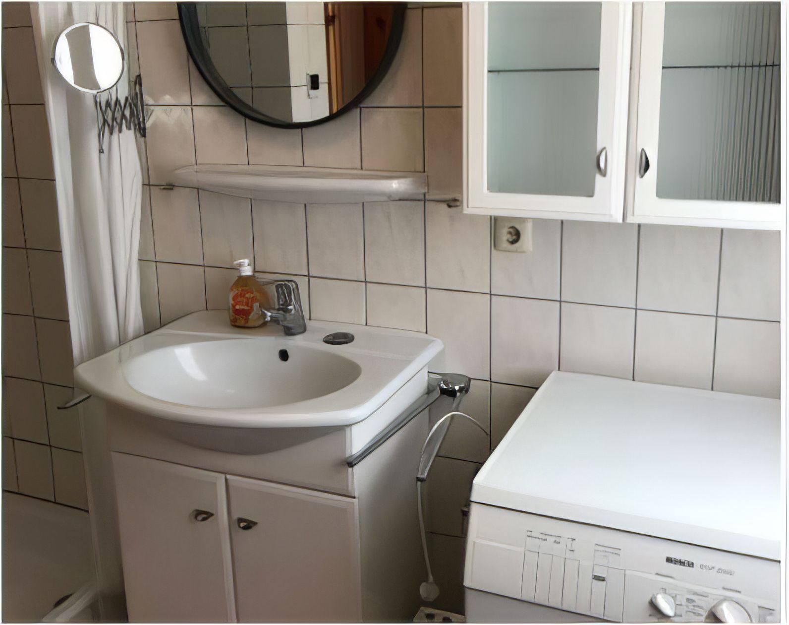 Beschreibung des Außenbereichs:Auf der geräumigen Terrasse befinden sich ein Gartentisch mit 6 Stühlen sowie 3 Gartenliegen zum Relaxen. Ein Grill steht ebenfalls zur Verfügung. Direkt vor dem Hauseingang befindet sich ein Pkw-Stellplatz. Die Wohnung befindet sich in Sackgassenlage, direkt gegenüber gibt es einen Spielplatz für die Kleinen.