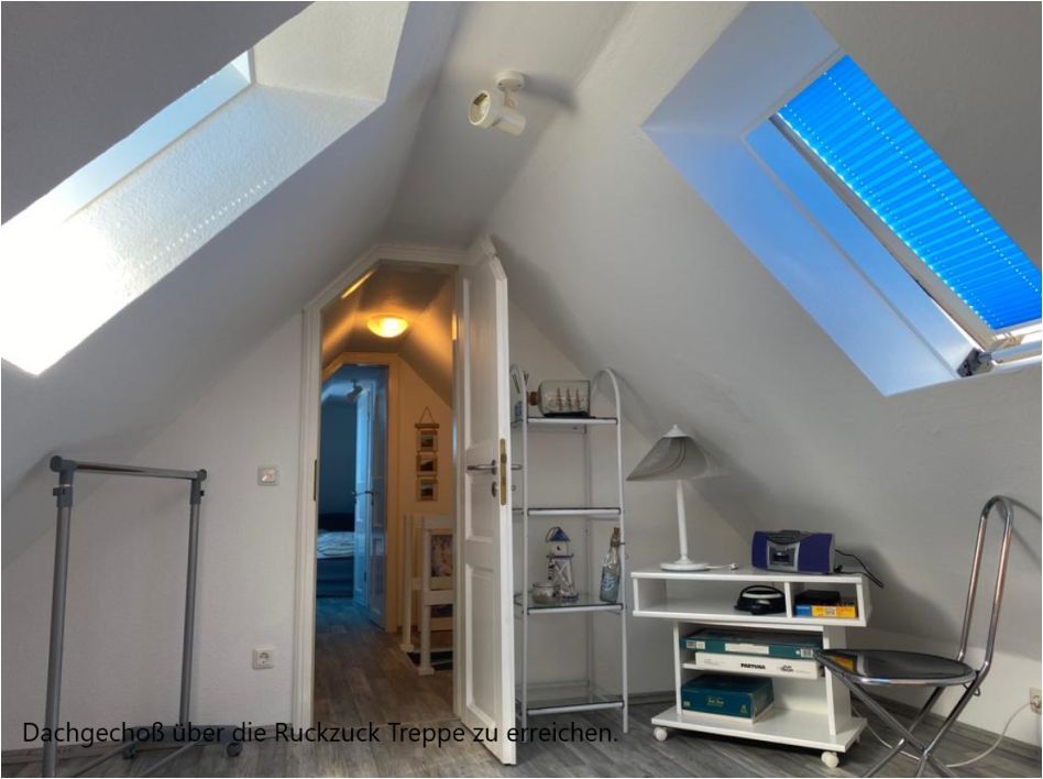 Über eine Ruckzuck Treppe gelangt man auf den voll ausgebauten Dachboden (welcher nur im Sommer genutzt werden kann), wo neben einer Toilette mit Waschbecken noch 2 weitere Schlafzimmer mit Doppelbett zur Verfügung stehen.