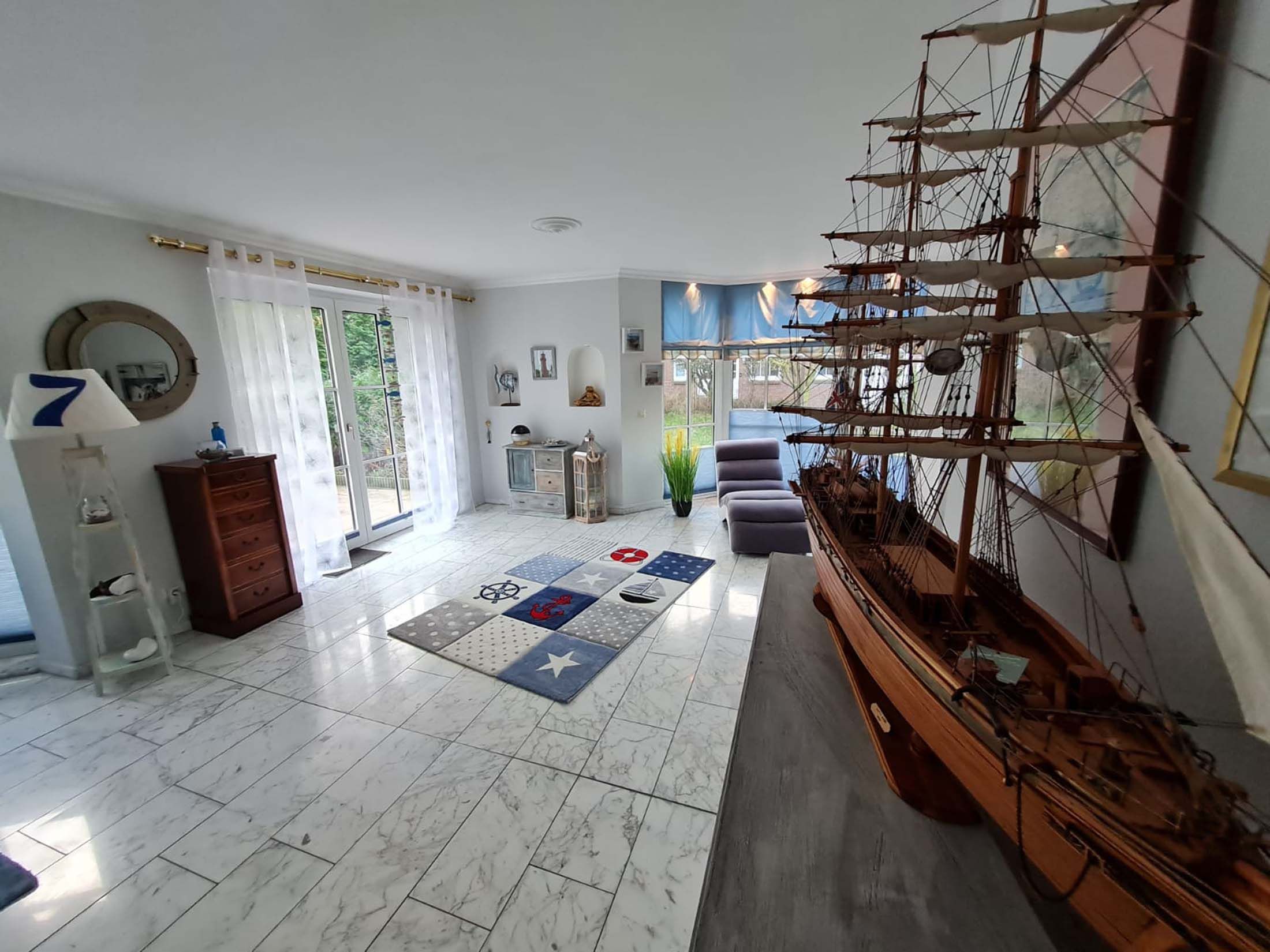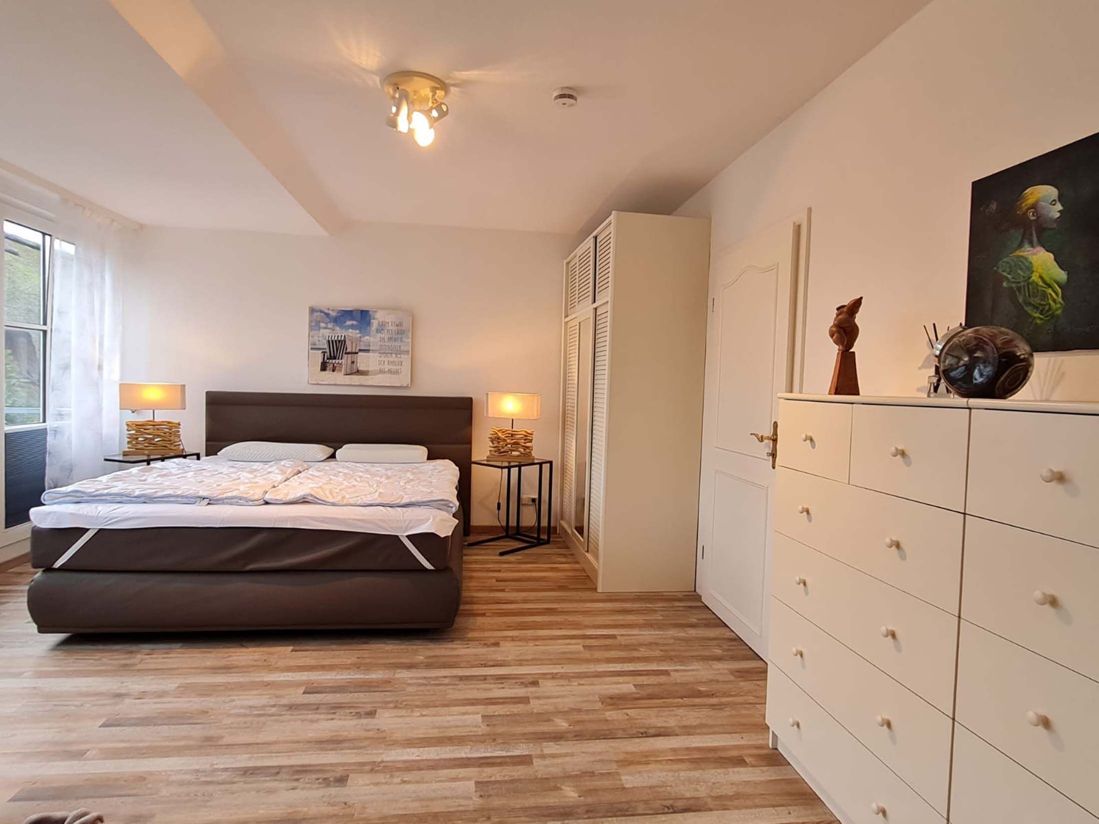 Die charmante Landhaus - Villa besticht durch ihre schöne Lage in einer ruhigen Hofanlage, nur 700 Meter vom Naturstrand entfernt. Die Wohnfläche von 205m² ist auf 2 Etagen verteilt und bietet Platz für bis zu 8 Personen. Im Erdgeschoss befindet sich der großzügige Wohn-/Essbereich mit Kaminlounge und Zugang zur Süd-Terrasse mit großem Garten. Hier können Sie die Sonne genießen oder ein paar Leckereien auf dem Gasgrill zaubern.