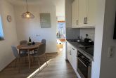 Die moderne Einbauküche mit Backofen und Ceranfeld, Kühlschrank, Geschirrspüler, Kaffeemaschine, Heißwasserkocher, Kücheninventar sowie einem gemütlichen Essplatz lädt nicht nur zum gemütlichen Frühstück ein.