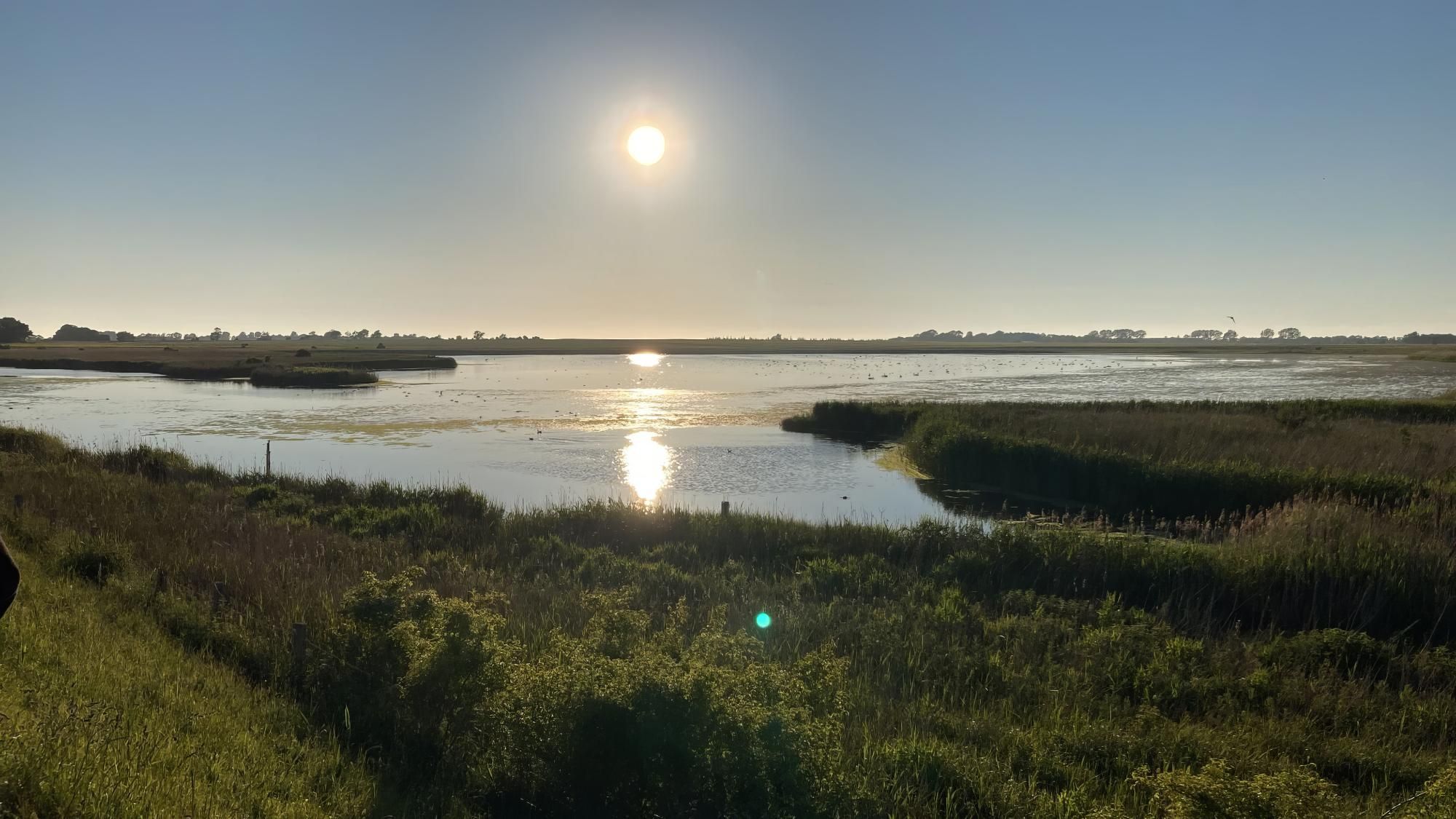 Die Terrasse mit Gartenmöbeln und eigenem Strandkorb lädt abends ein zum Sundowner oder einem Grillabend.