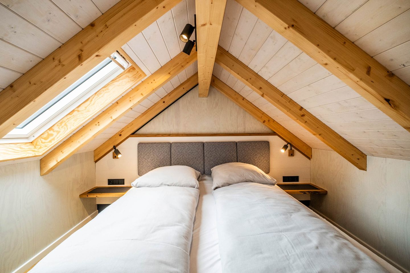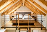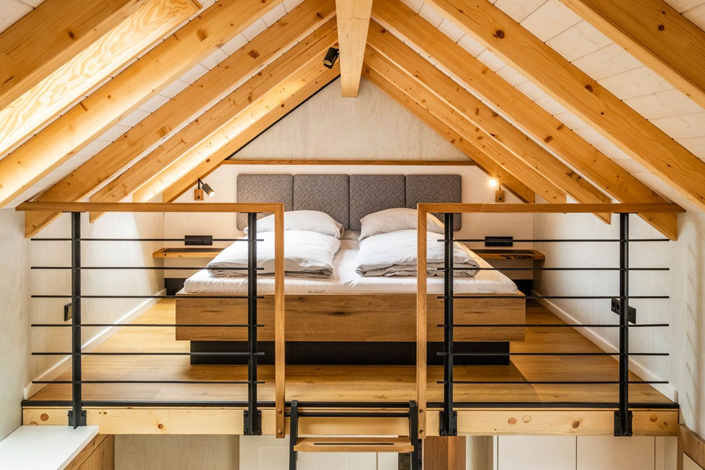 Der Zugang zu den Schlafbereichen erfolgt über eine Leiter bzw. steile Stufen. Hinweis für Familien mit kleinen Kindern