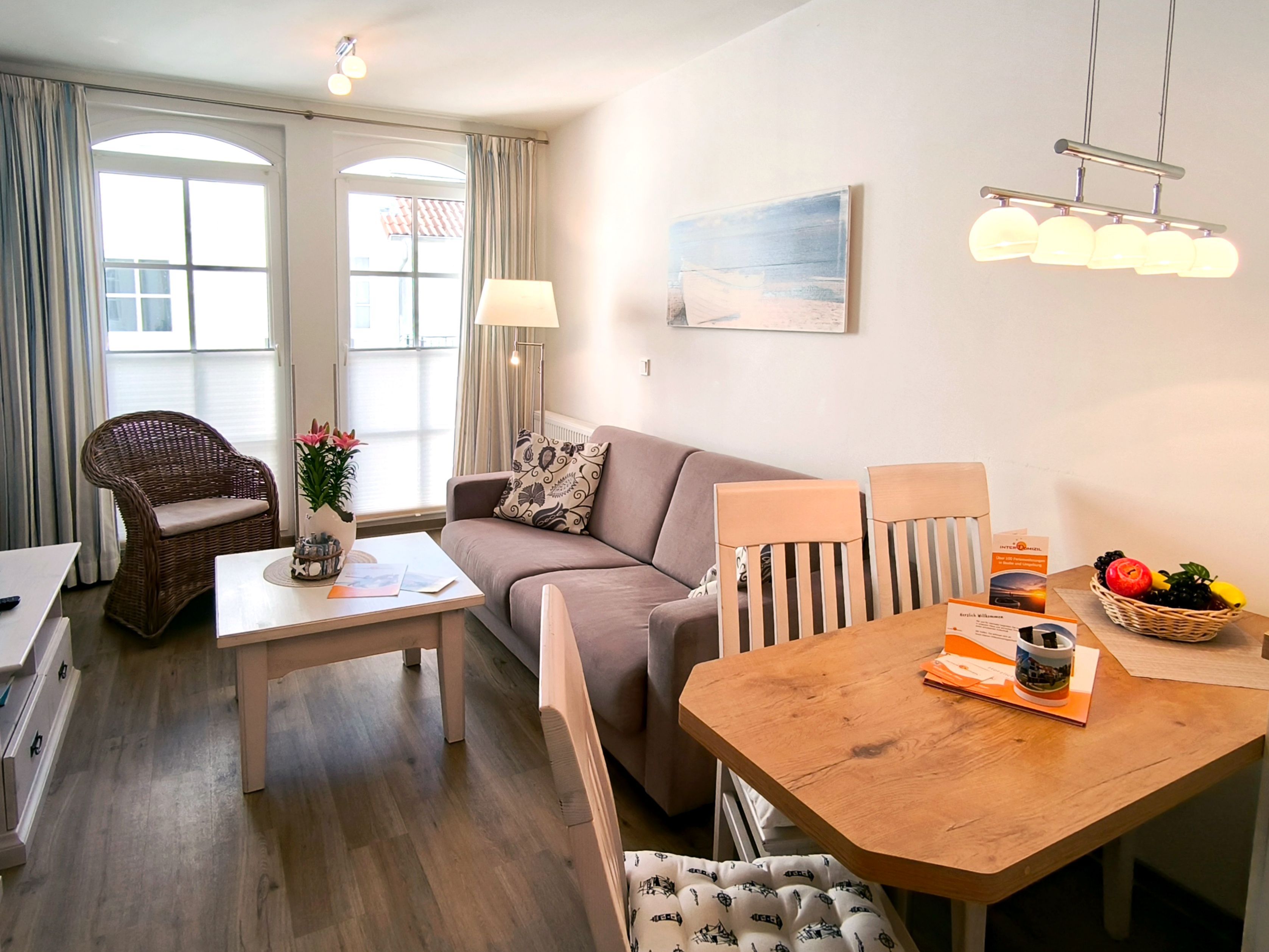 Die gemütlich eingerichtete Ferienwohnung Albatros für 2 bis 3 Personen liegt im 2. Obergeschoss der Residenz Haus Meeresblick und verfügt über einen schönen Balkon.