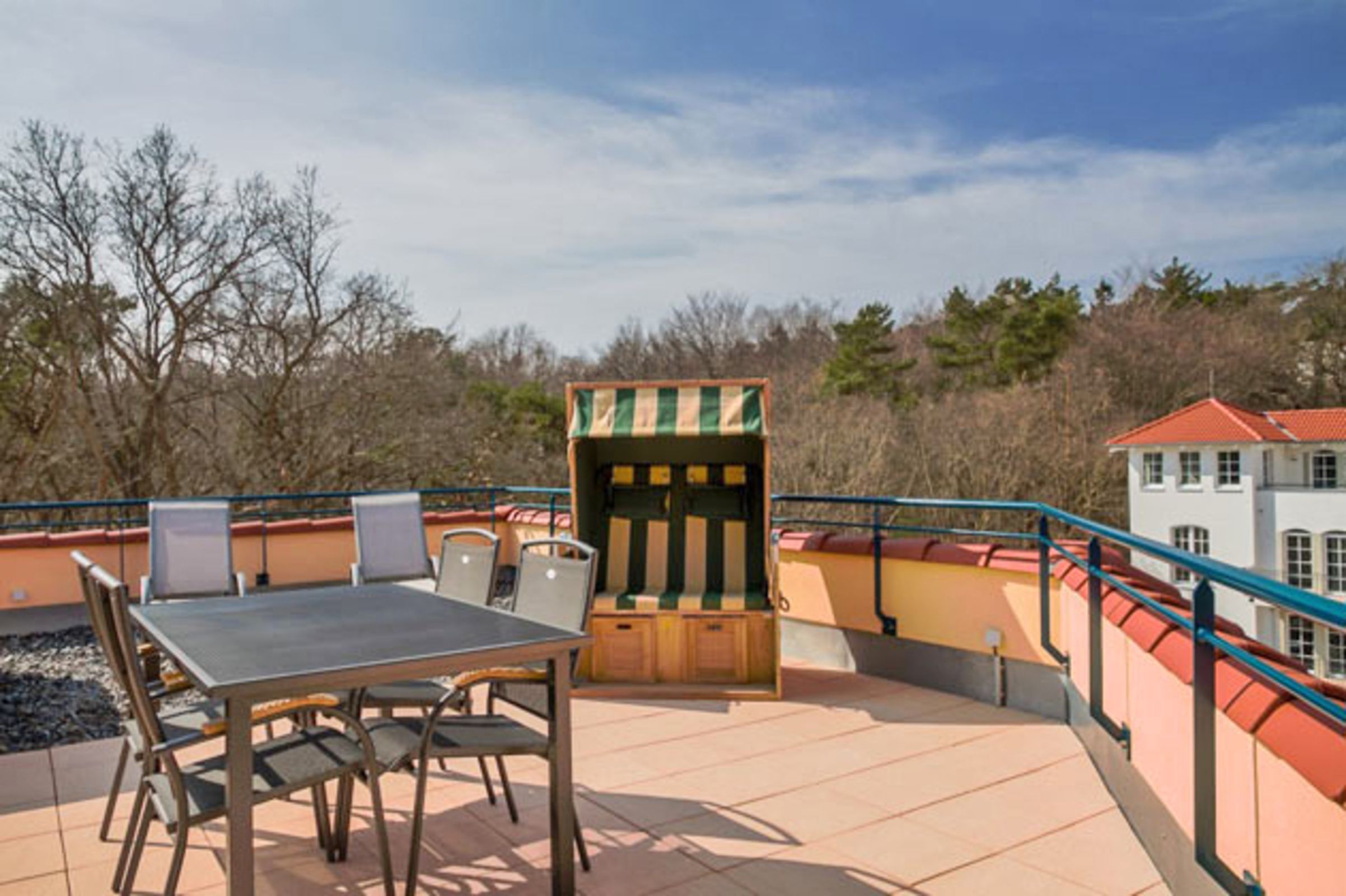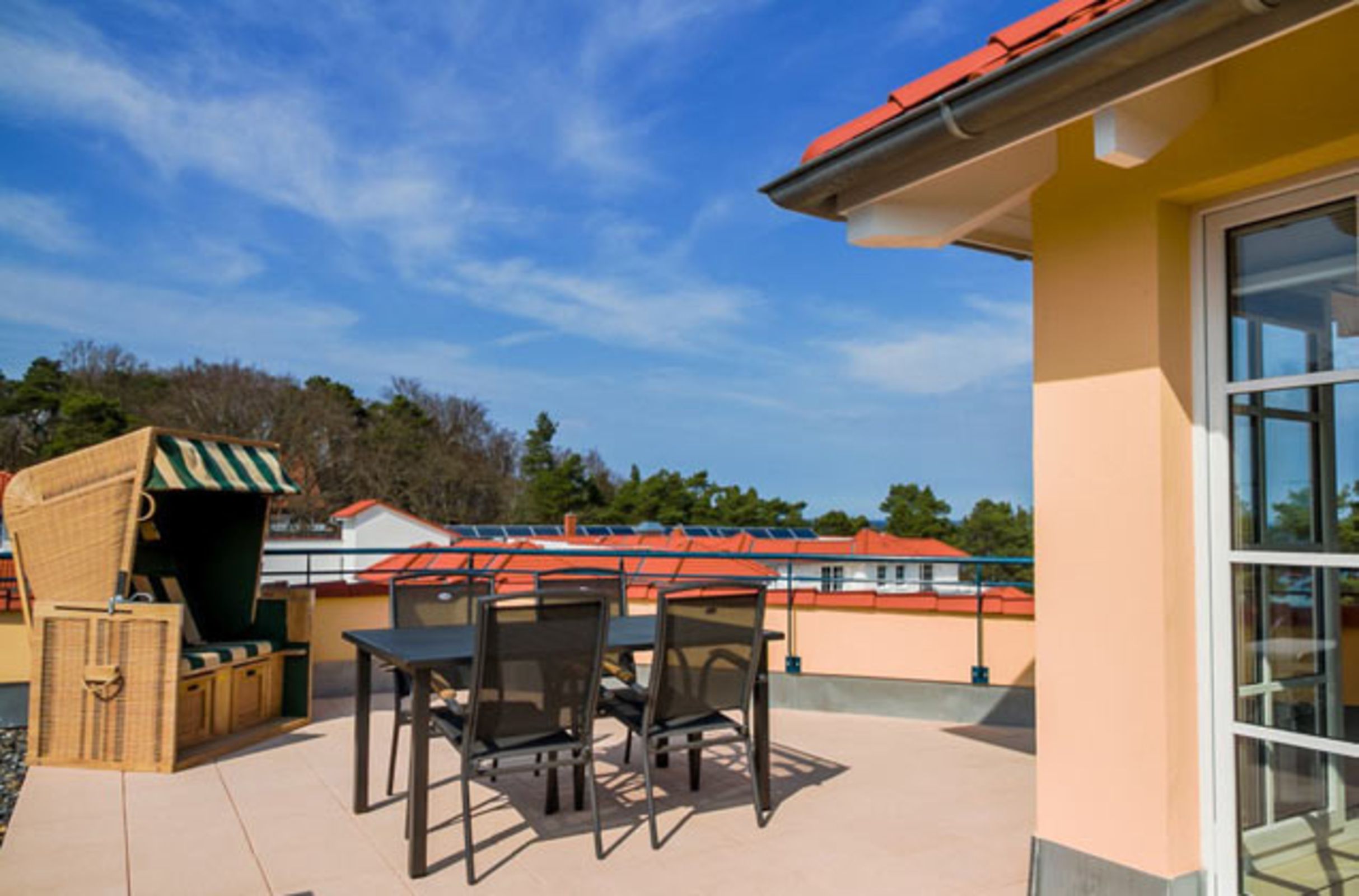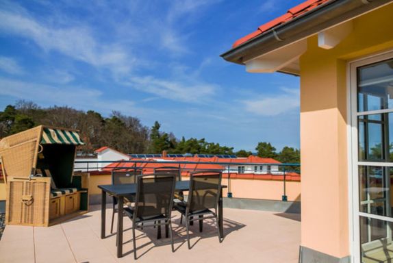Luxus Penthauswohnung mit 4 Zimmern für bis zu 6 Personen mit großer Dachterrasse, Strandkorb und herrlichem Meerblick. Eine wirklich außergewöhnliche Ferienwohnung in einer Villa des Haus Meeresblick.