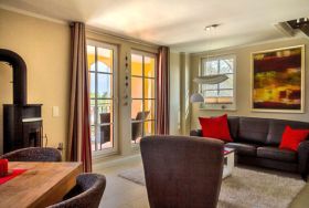 Das Wohnzimmer ist für die maximale Zahl an Gästen (sechs) eingerichtet und ausgestattet mit Radio, TV und CD-Player. Hinzu kommt ein HiFi-System mit iPod-Schnittstelle und WLAN.