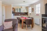 Die offene Küche - ebenfalls für 6 Personen eingerichtet - hat einen 4-Plattenherd (Ceranfeld), einen Kombimikrowellenbackofen, einen Kühlschrank mit Gefrierfach, Geschirrspüler, Toaster, Wasserkocher, Kaffeemaschine und eine Senseo-Kaffeemaschine. Der Dunstabzug über dem Herd hat Außenlüftung. Für gesellige Abende steht ein großer Esstisch im Wohnbereich.
