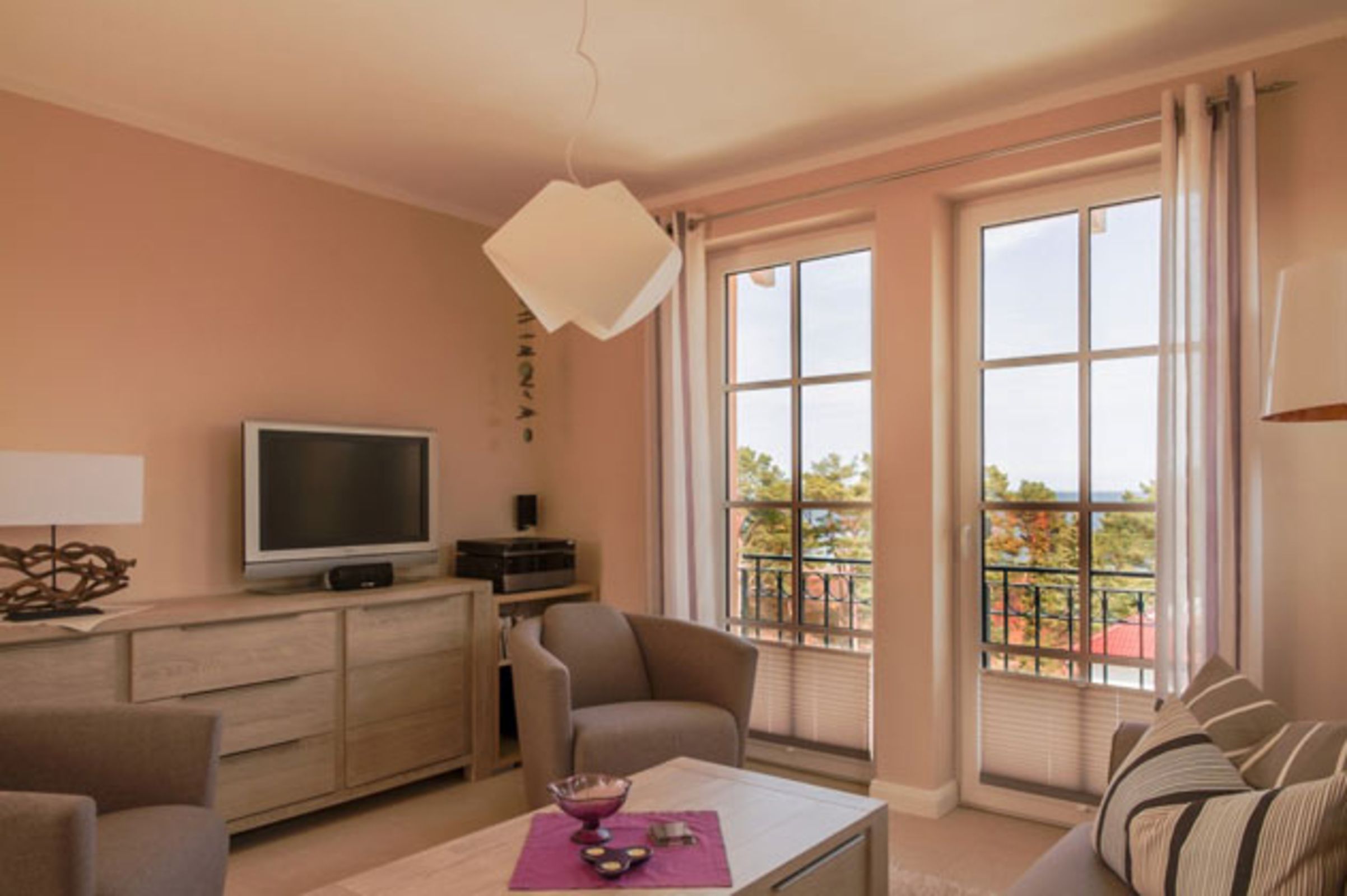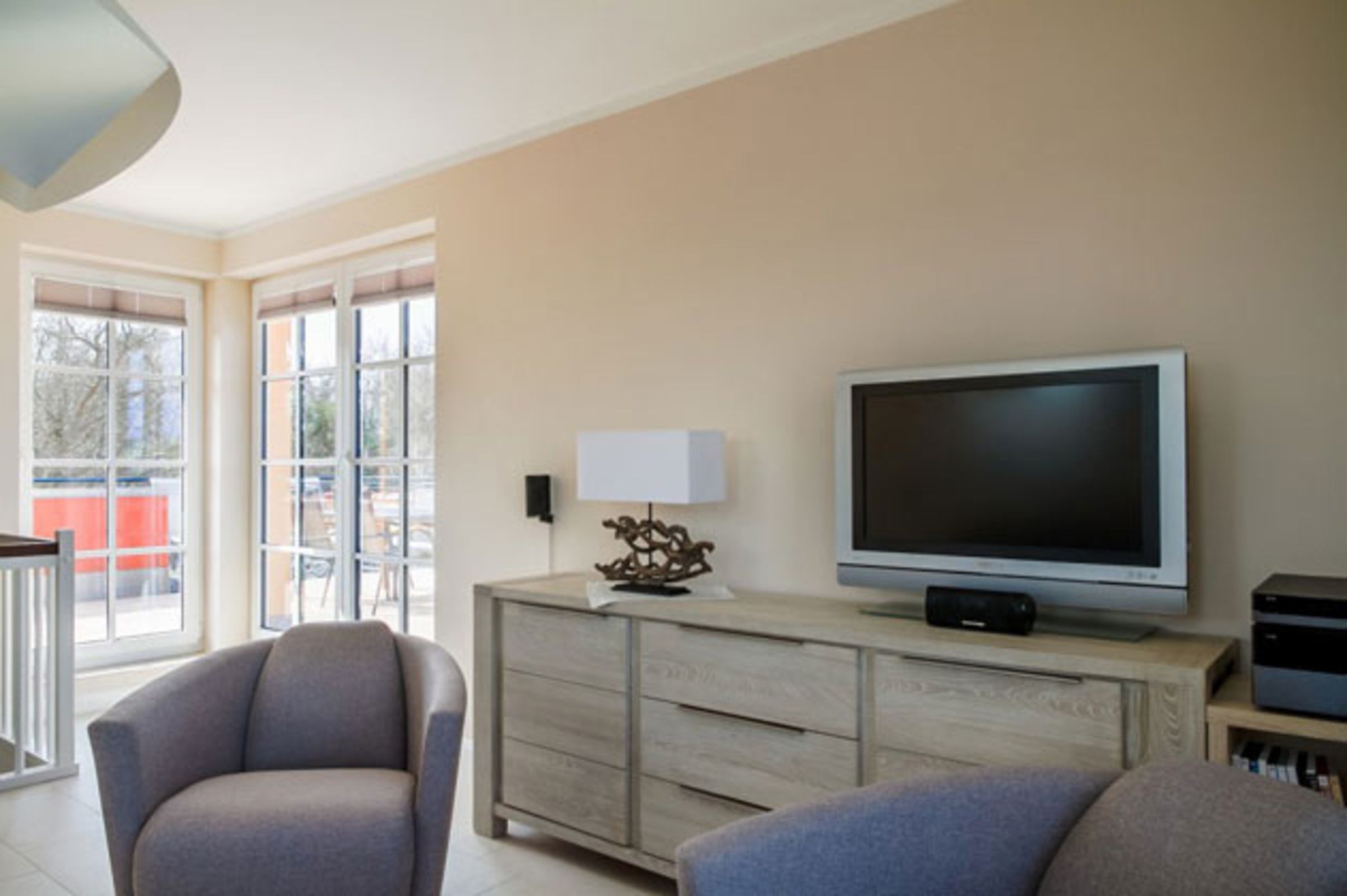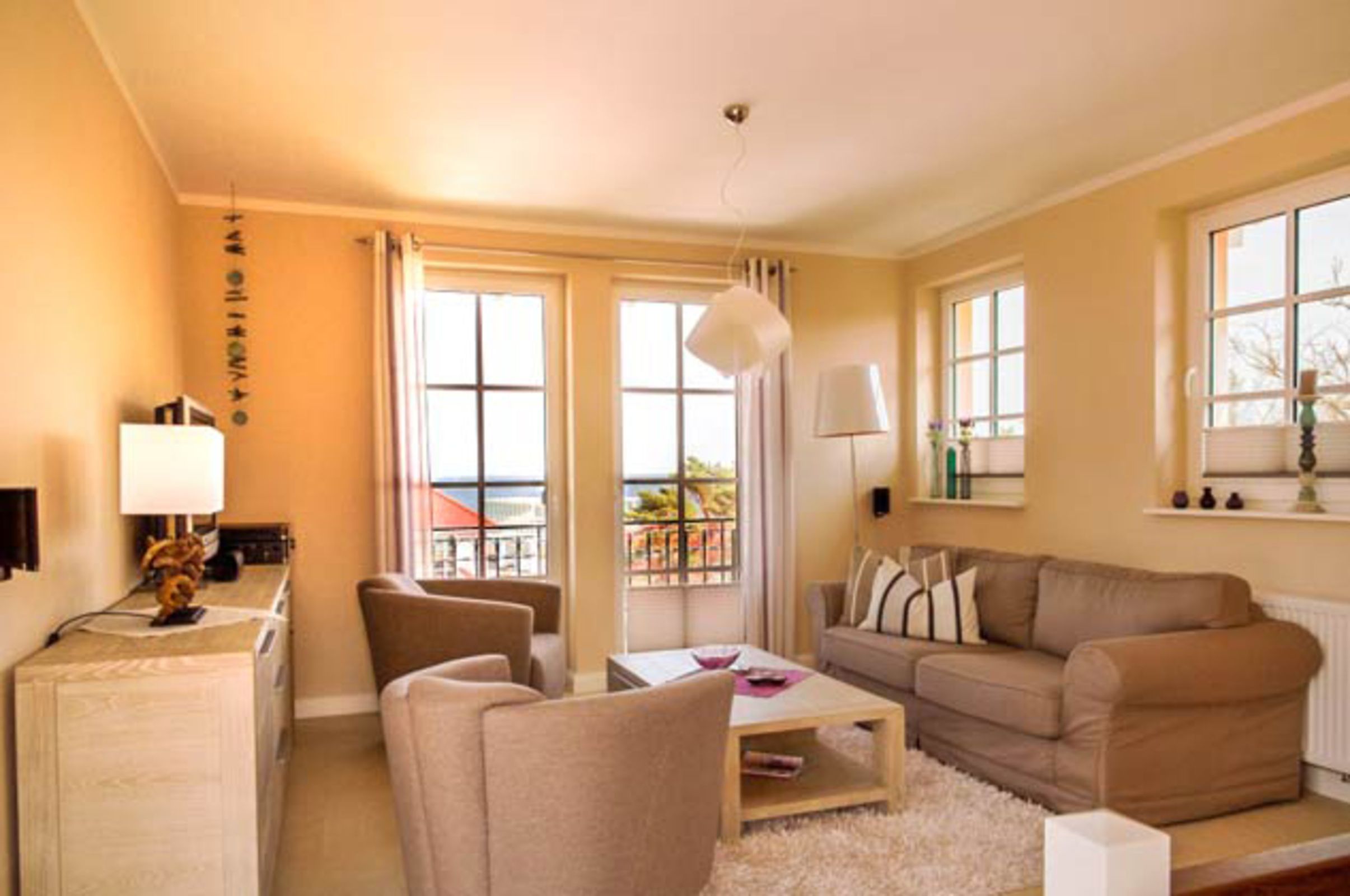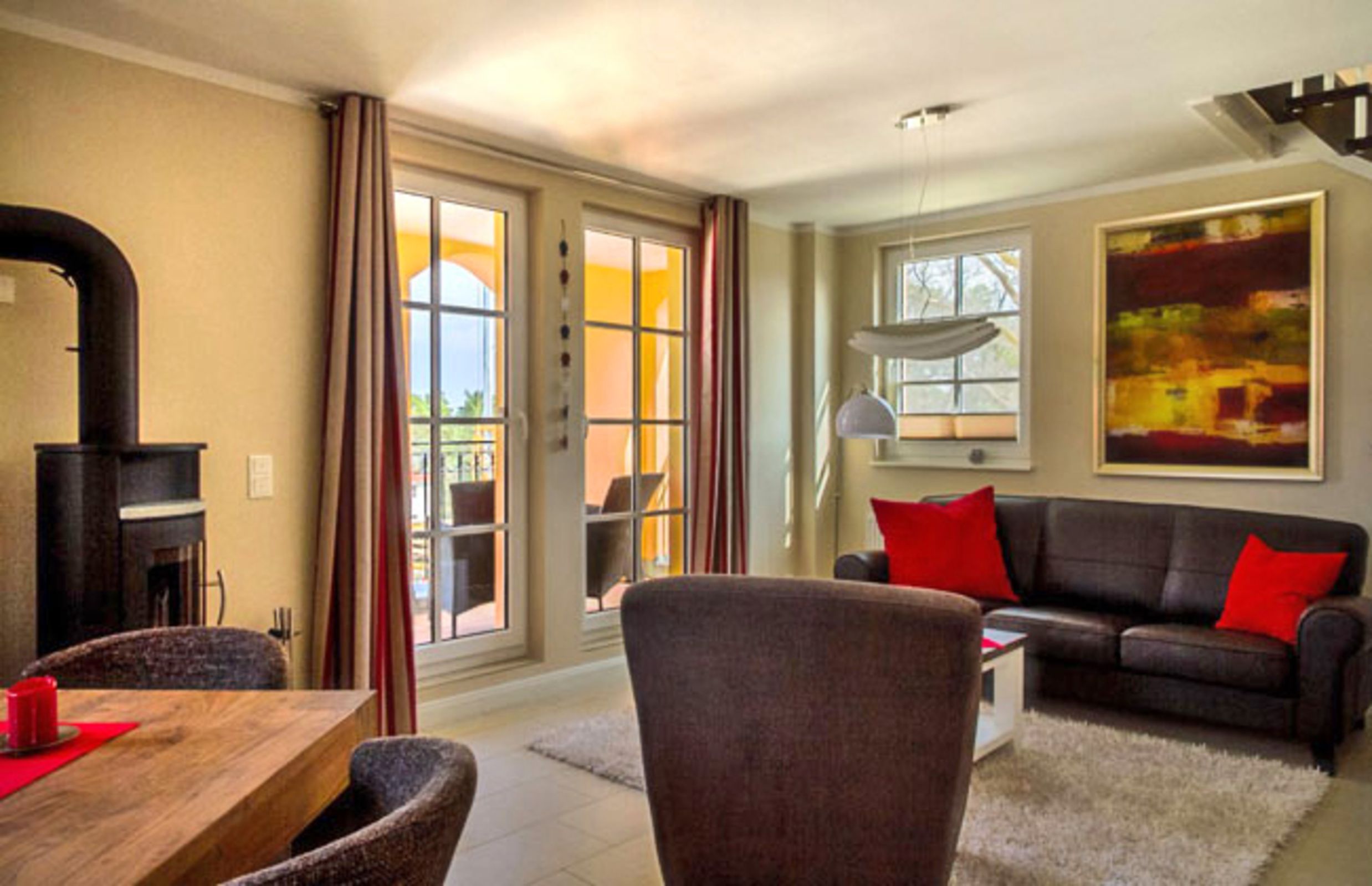 Das Wohnzimmer ist für die maximale Zahl an Gästen eingerichtet und ausgestattet mit Radio, TV und CD-Player. Hinzu kommt ein HiFi-System mit iPod-Schnittstelle und WLAN.