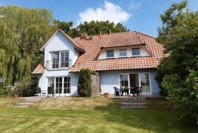 Ferienhaus mit 4 Ferienwohnungen, in der Nähe von Putbus. Das Haus ist 1998 fertiggestellt. Grosser Garten und Süd-Terrassen, eigene Sitzgruppe im Garten oder auf der Terrasse, Sandkasten, Grill, Gartenhaus mit Fahrradständer.
