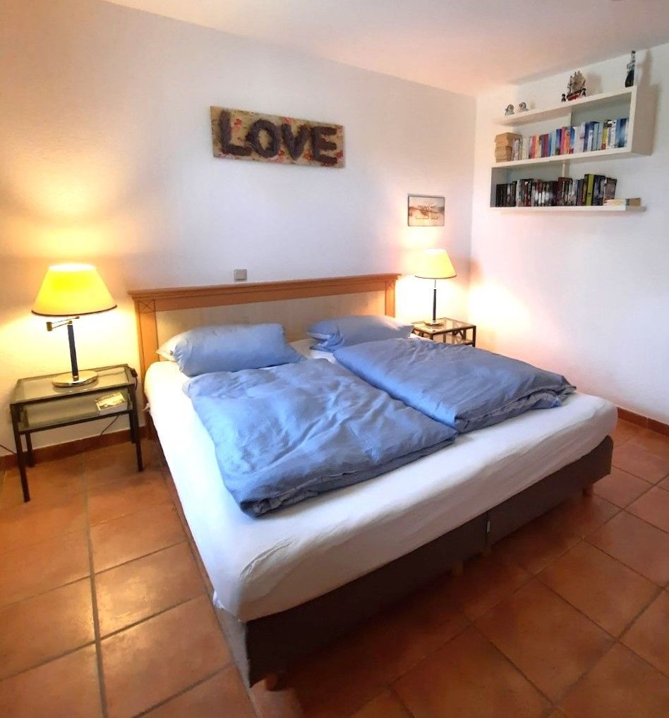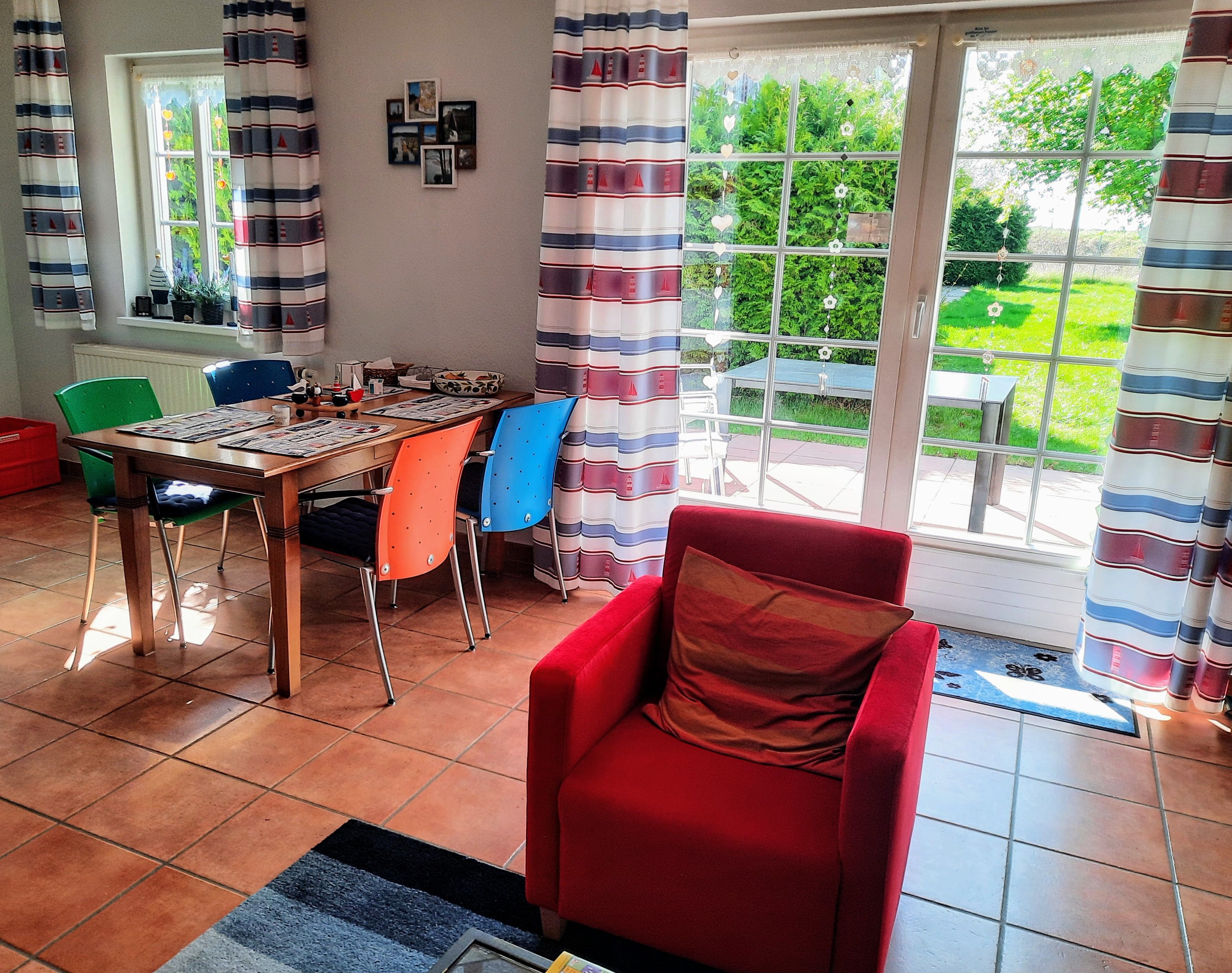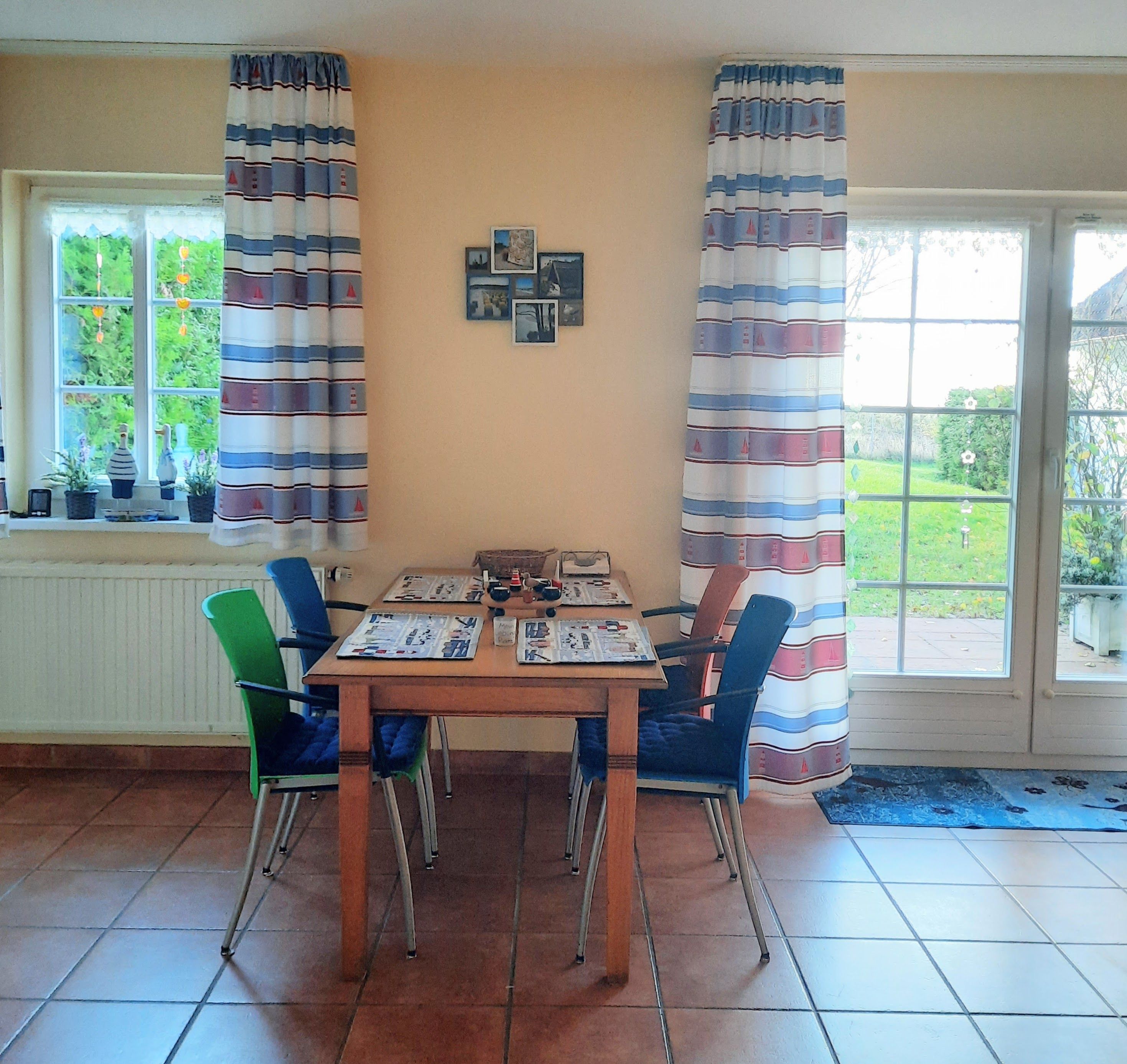 Die gemütliche Ferienwohnung ist ebenerdig und hat eine große möblierte Terrasse. Zur Ferienwohnung gehört ein reservierter Parkplatz. Sie besteht aus einem Wohn-/Essraum mit Schlafcouch (für bis zu zwei Kindern) und einem Elternschlafzimmer sowie einem Tageslichtbad mit Dusche. Alles, was Sie benötigen, finden Sie dort vor. Anfang 2024 wurde in der Ferienwohnung eine neue Küche eingebaut.