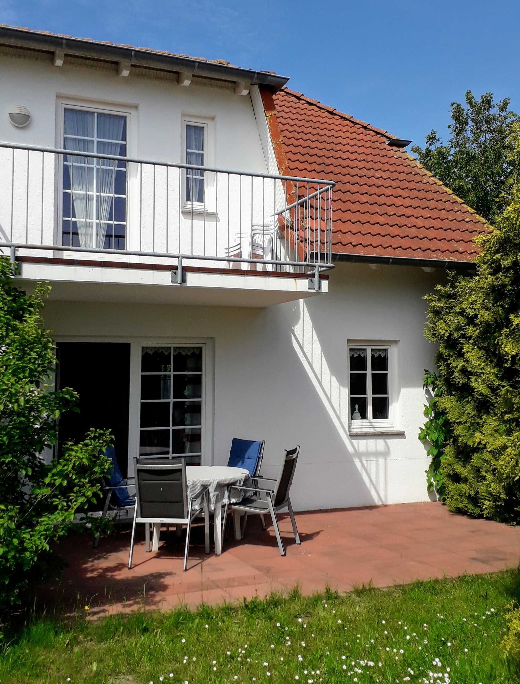 Vom hellen Wohnbereich gelangt man auf eine gut 20 qm große möblierte Terrasse, auf der Sie Ihre Mahlzeiten einnehmen oder auch in vollen Zügen die frische Insel-Luft und die Sonne genießen können.