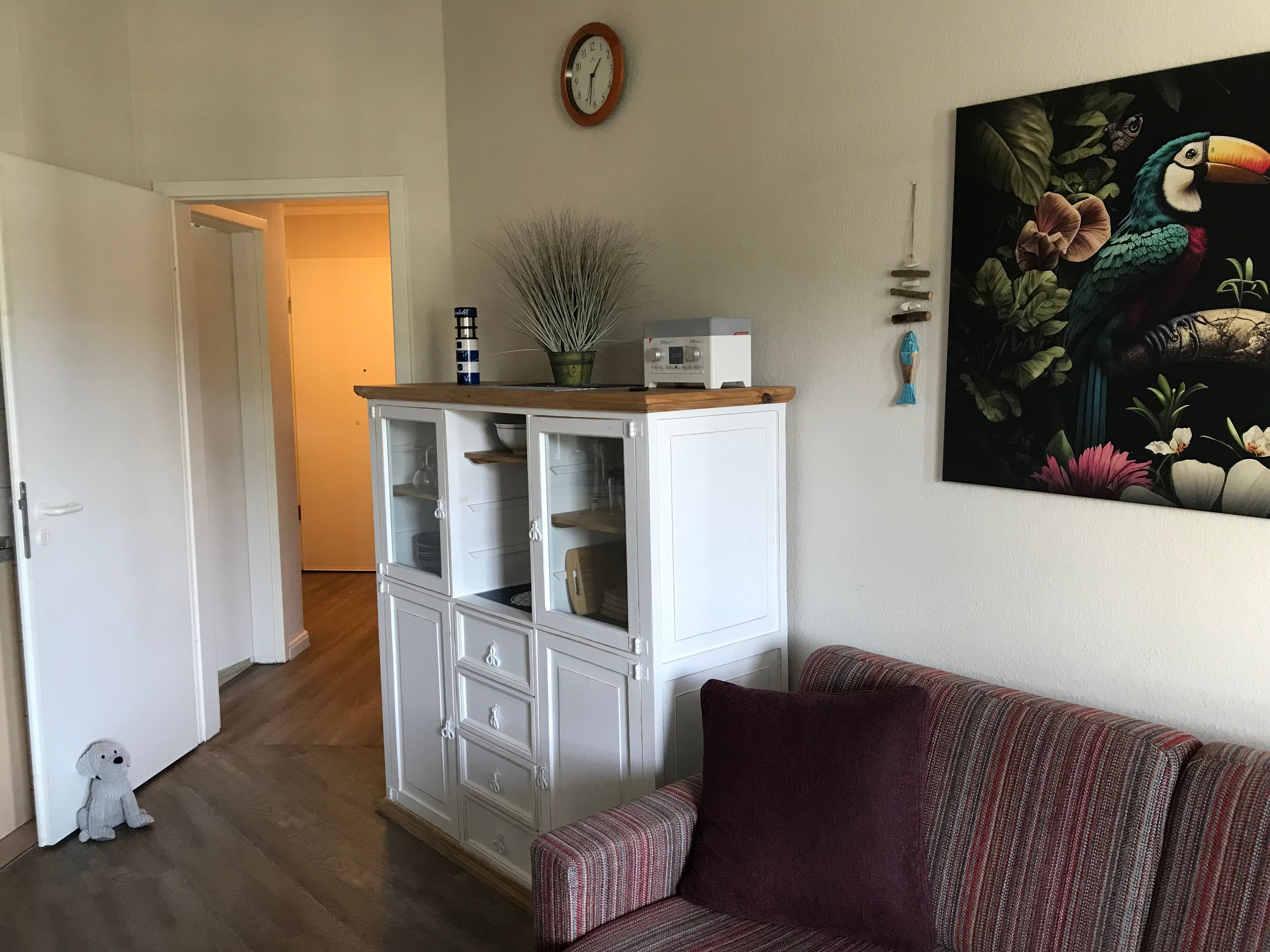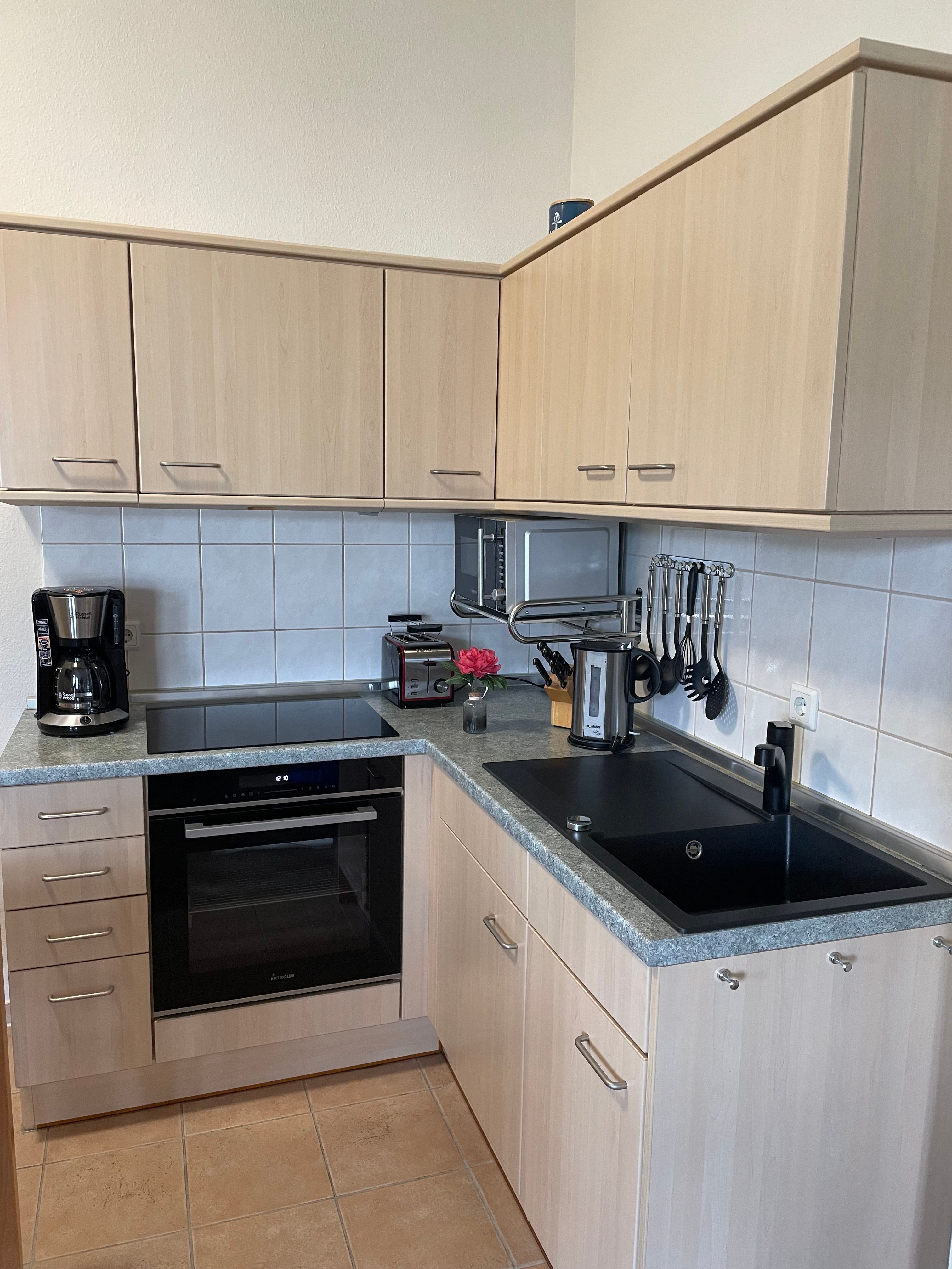 Die Ferienwohnung verfügt über kostenfreies WLAN und die Erstausstattung an Bettwäsche, sowie Hand- und Badetücher ist inklusive. Das Schlafzimmer verfügt über ein Doppelbett, im Wohnzimmer befindet sich zusätzlich eine Doppelschlafcouch, beide Räume mit Verdunklung. Darüber hinaus verfügt die Ferienwohnung über ein Bad mit Wanne und Duschabtrennung, Waschbecken, Föhn, Kosmetikspiegel, Ablagen und Staumöglichkeiten für Ihre Pflegeprodukte. Daneben liegt das separate WC mit kleinem Waschbecken. Die voll ausgestattete, offene Küche mit Mikrowelle, Kühlschrank mit Gefrierfach, moderner Herd mit Backofen, Wasserkocher, Kaffeemaschine und Toaster lässt keine Wünsche offen.