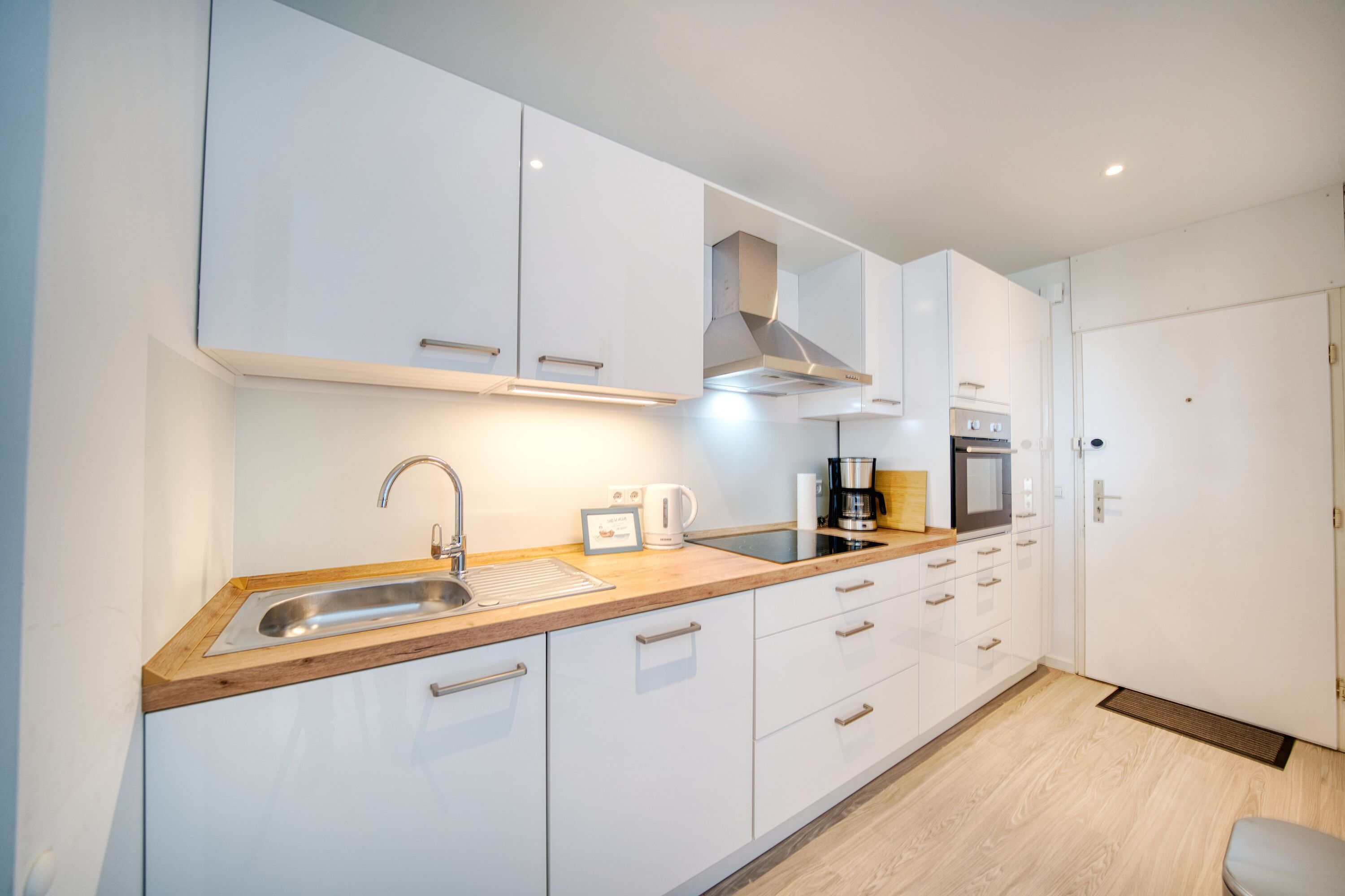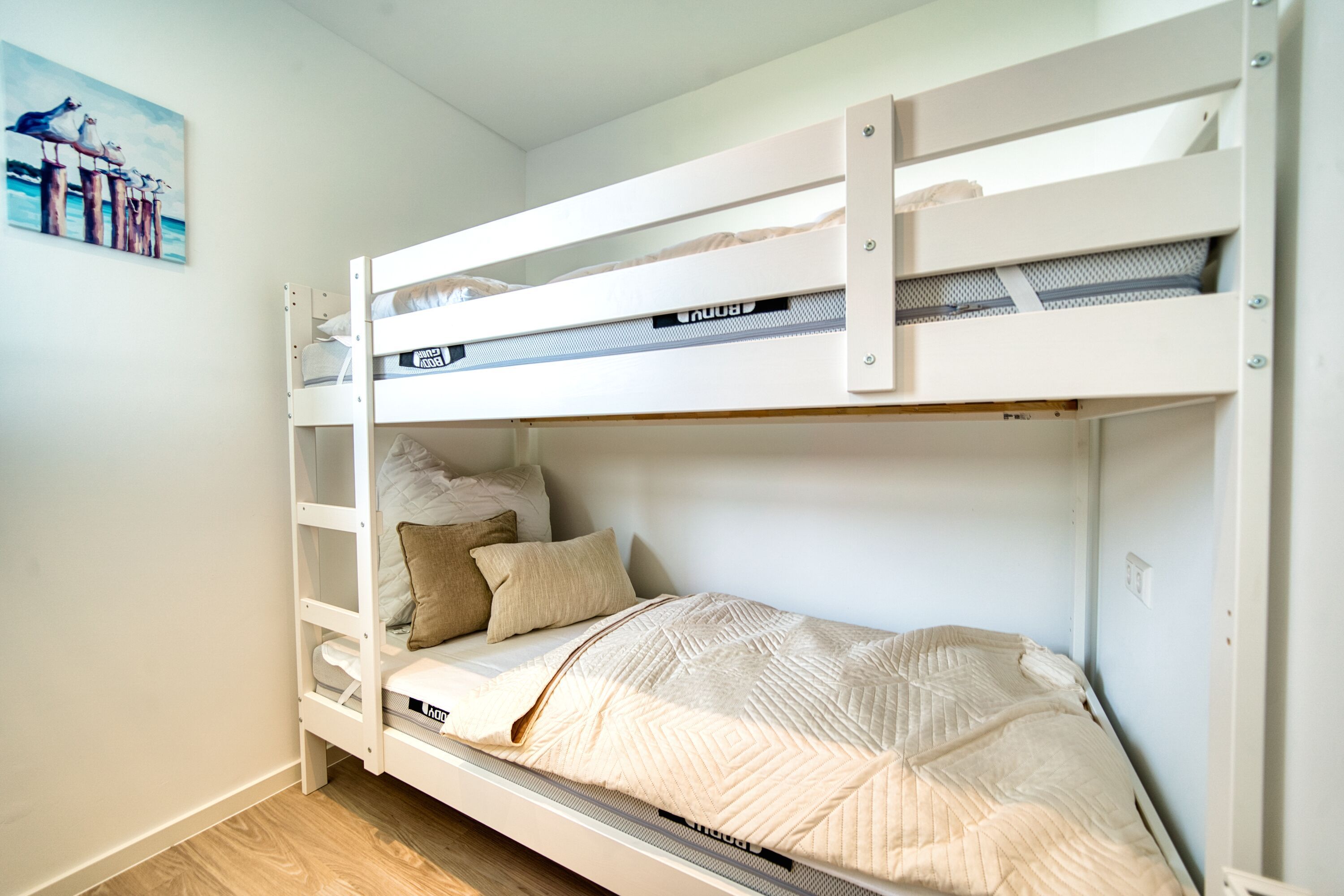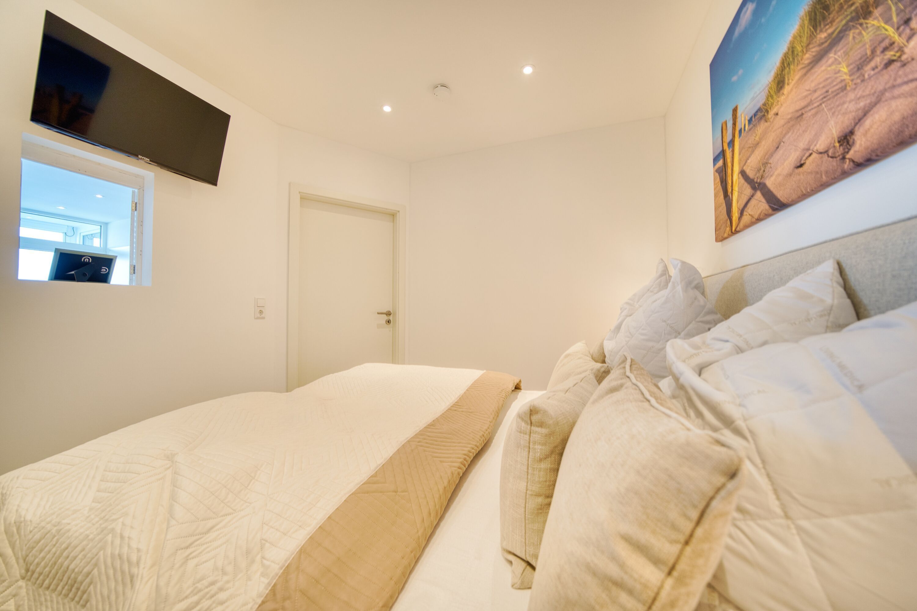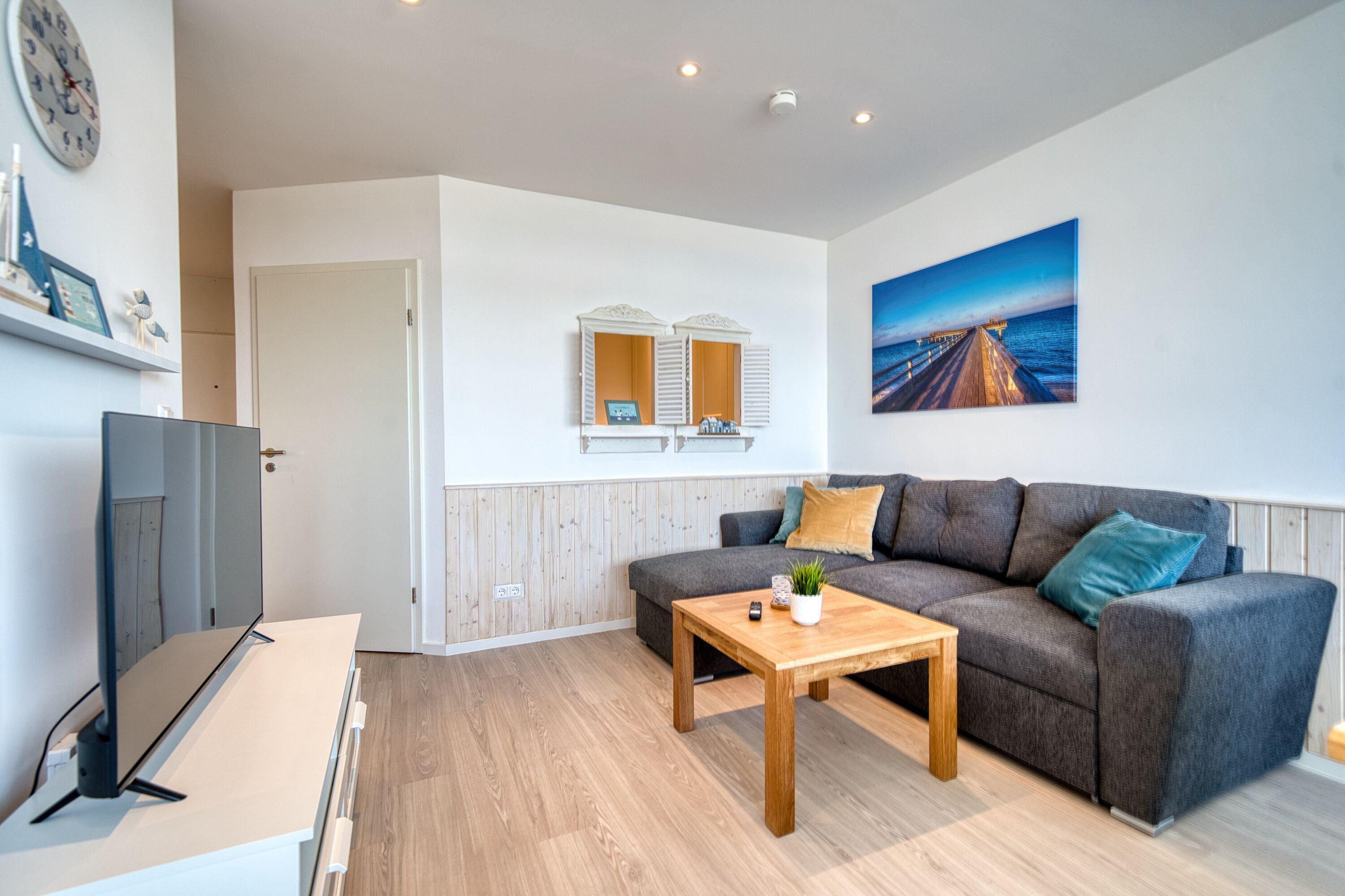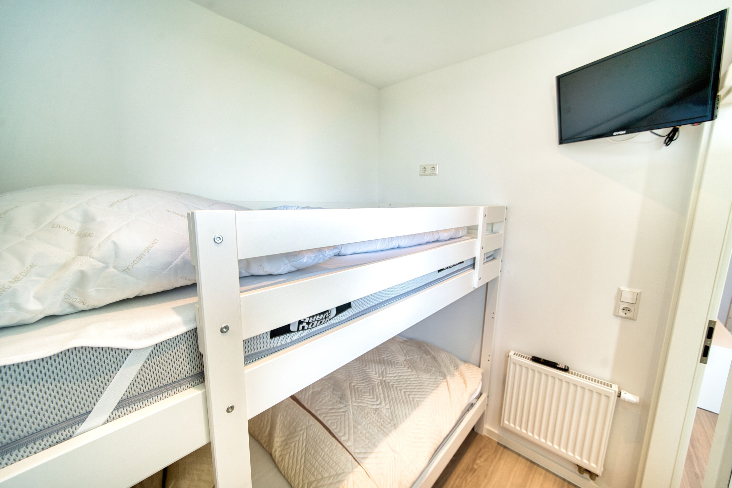 Die stilvolle Wohnung ist ideal für Familien oder Gruppen von bis zu 4 Personen und bietet eine durchdachte Raumaufteilung. Der Wohnbereich mit großzügigem Flachbildfernseher lädt zum Verweilen ein. Im Kinderzimmer mit TV mit Etagenbett können die Kleinen gemütlich schlafen, während die Eltern sich im separaten Schlafbereich mit Doppelbett (160x200cm) und eigenem TV entspannen.