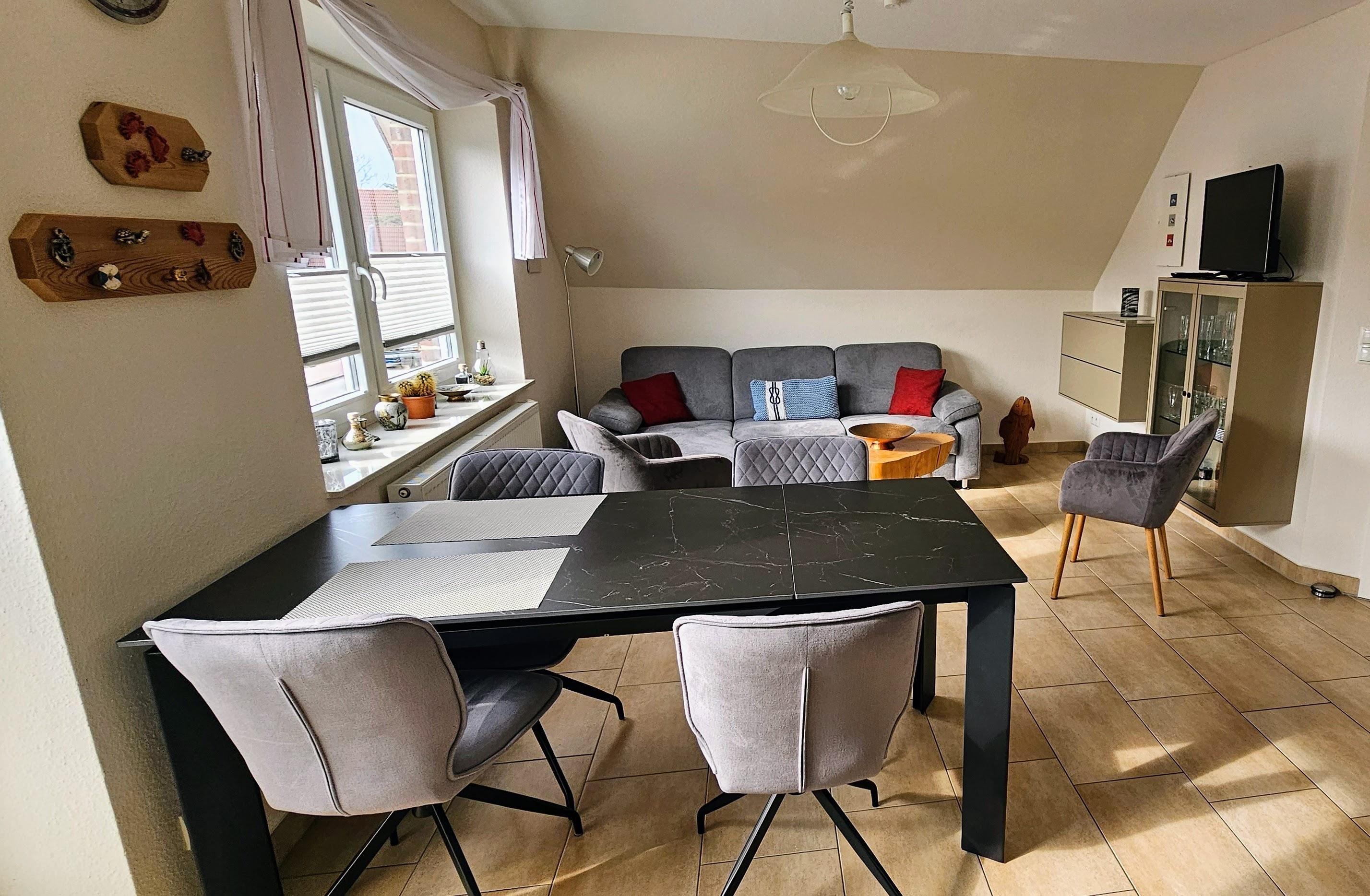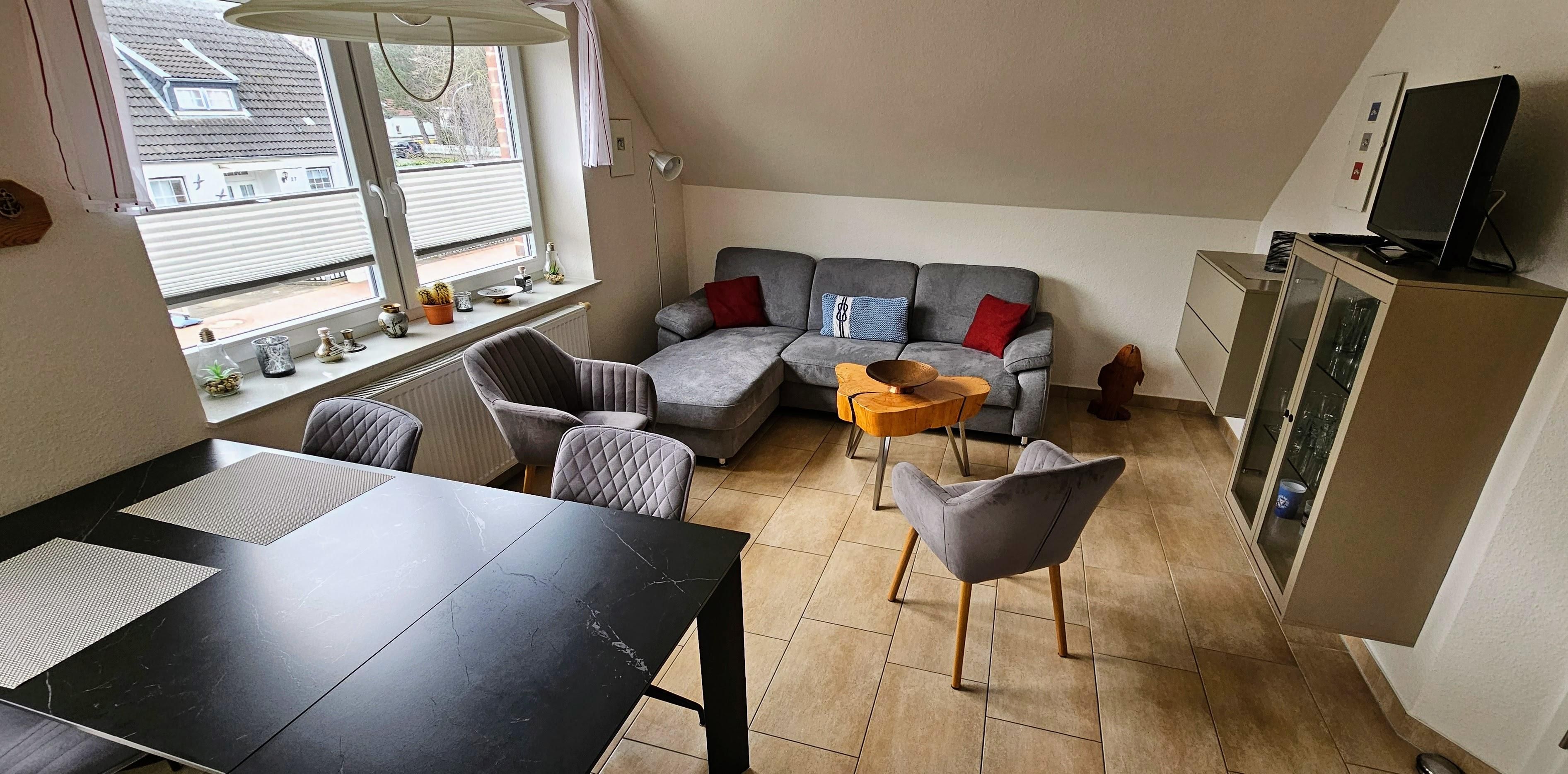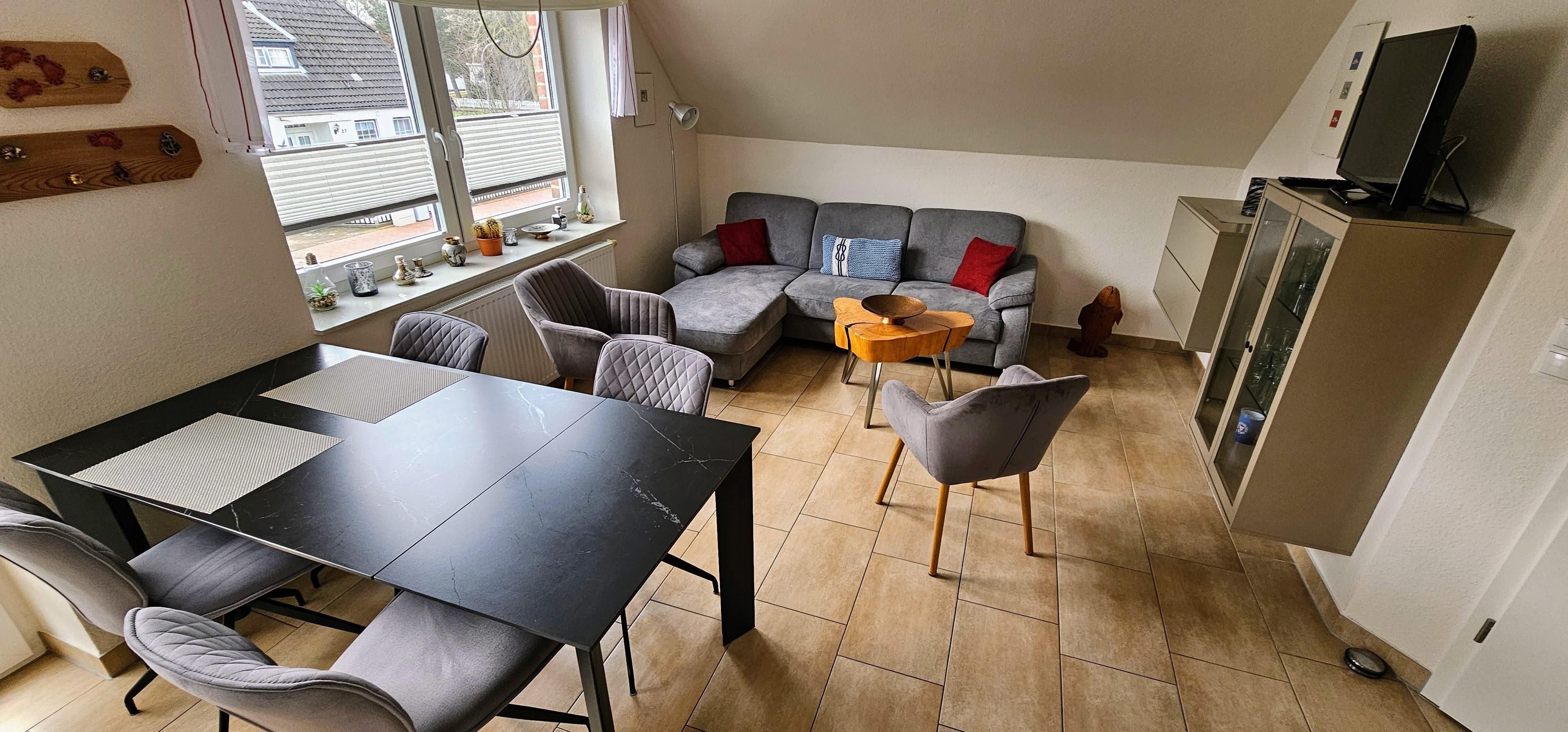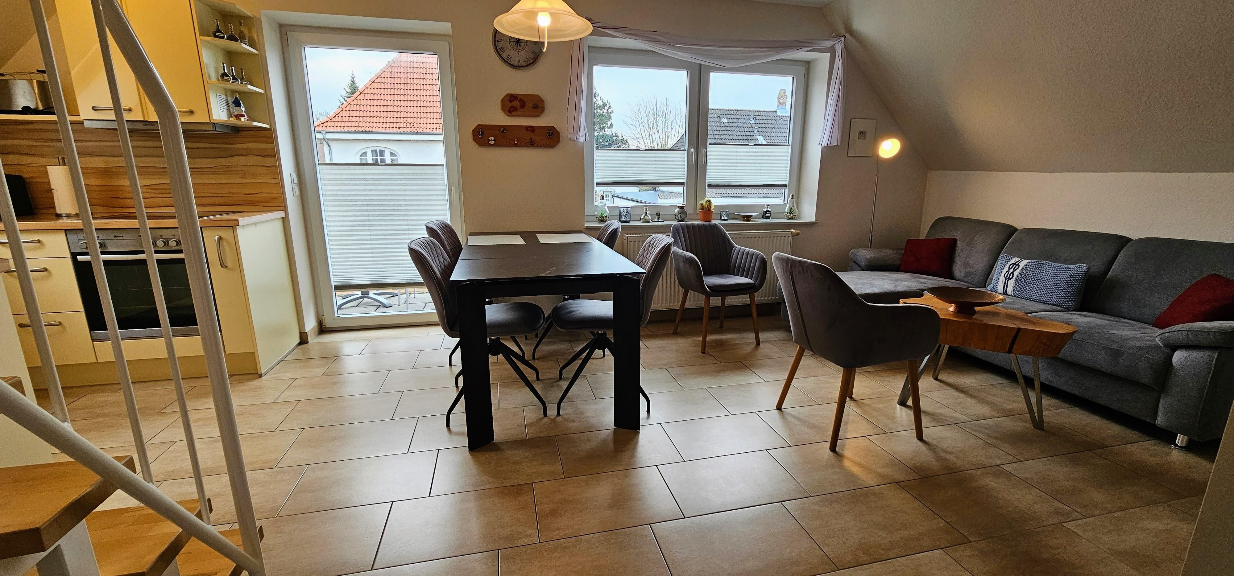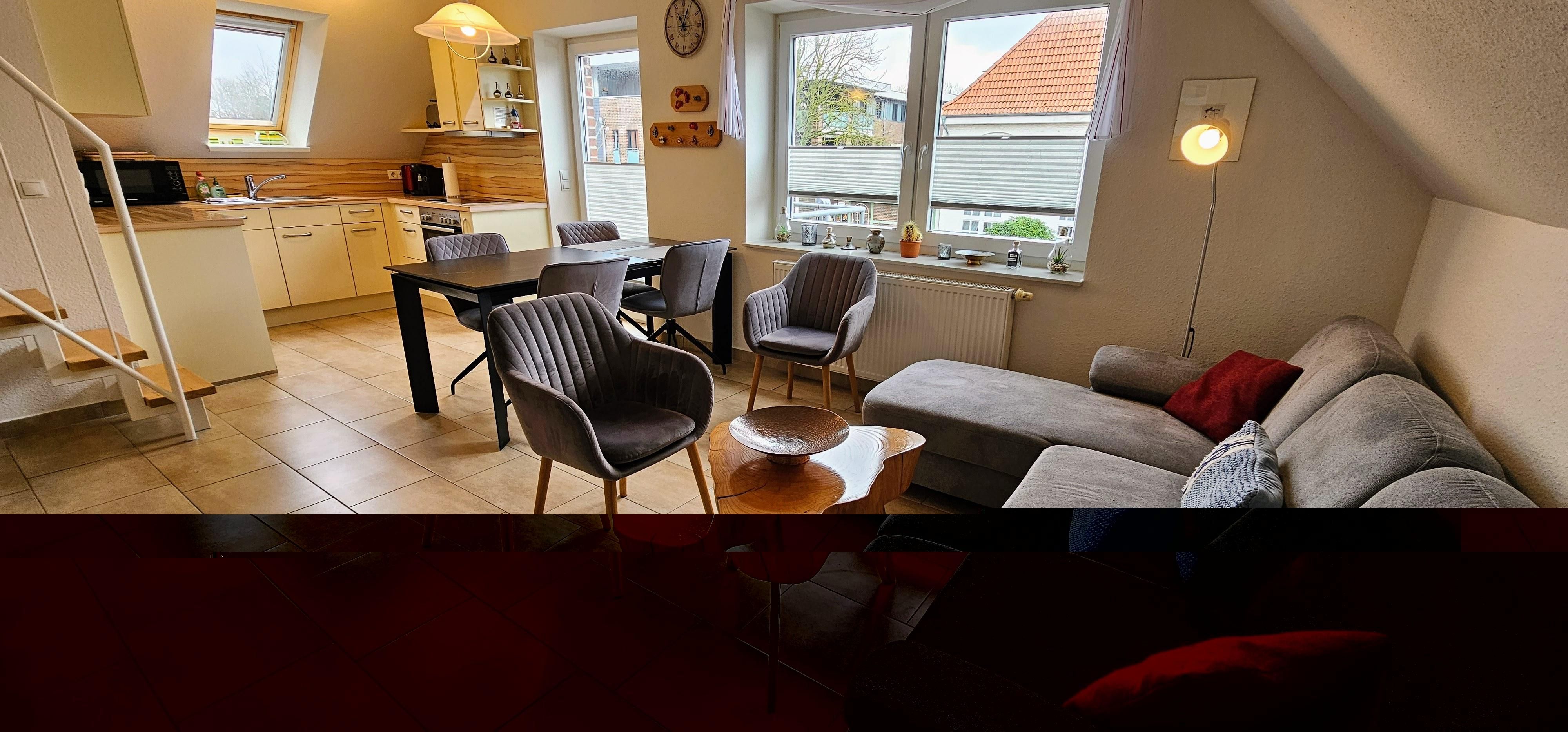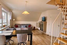 Moderne 3-Zimmer-Ferienwohnung Deck 1 mit ca. 55qm auf 2 Ebenen (OG,DG. Zugang über Außentreppe) für bis 4 Personen ( Wohlfühlbelegung:max. 2 Erwaschsene). In ruhiger, zentrumsnaher Lage im Ortsteil Dorf in St. Peter-Ording.