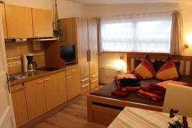Er besteht aus einem kombinierten Wohn-Schlafraum mit Miniküche.