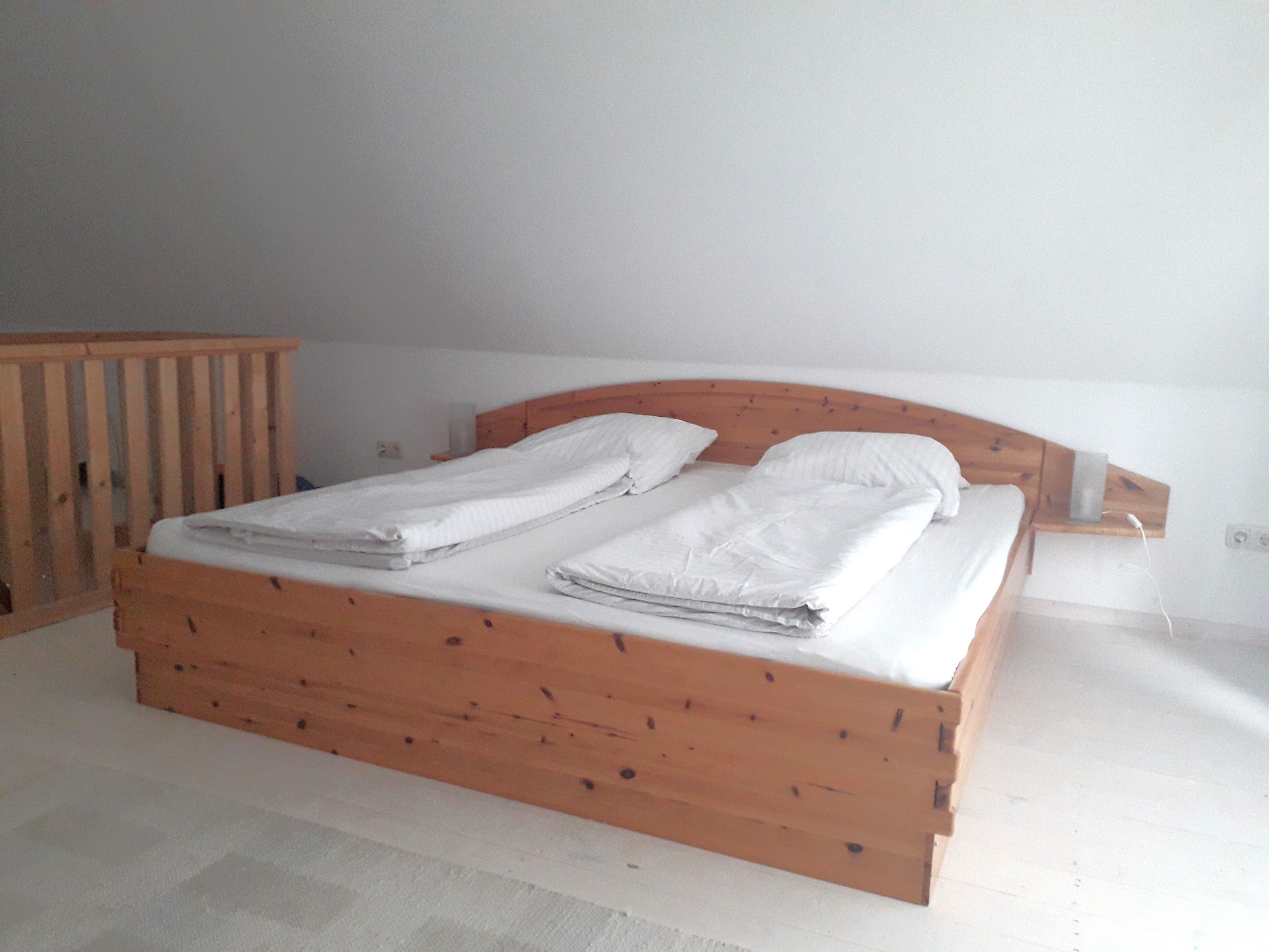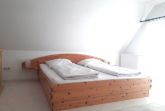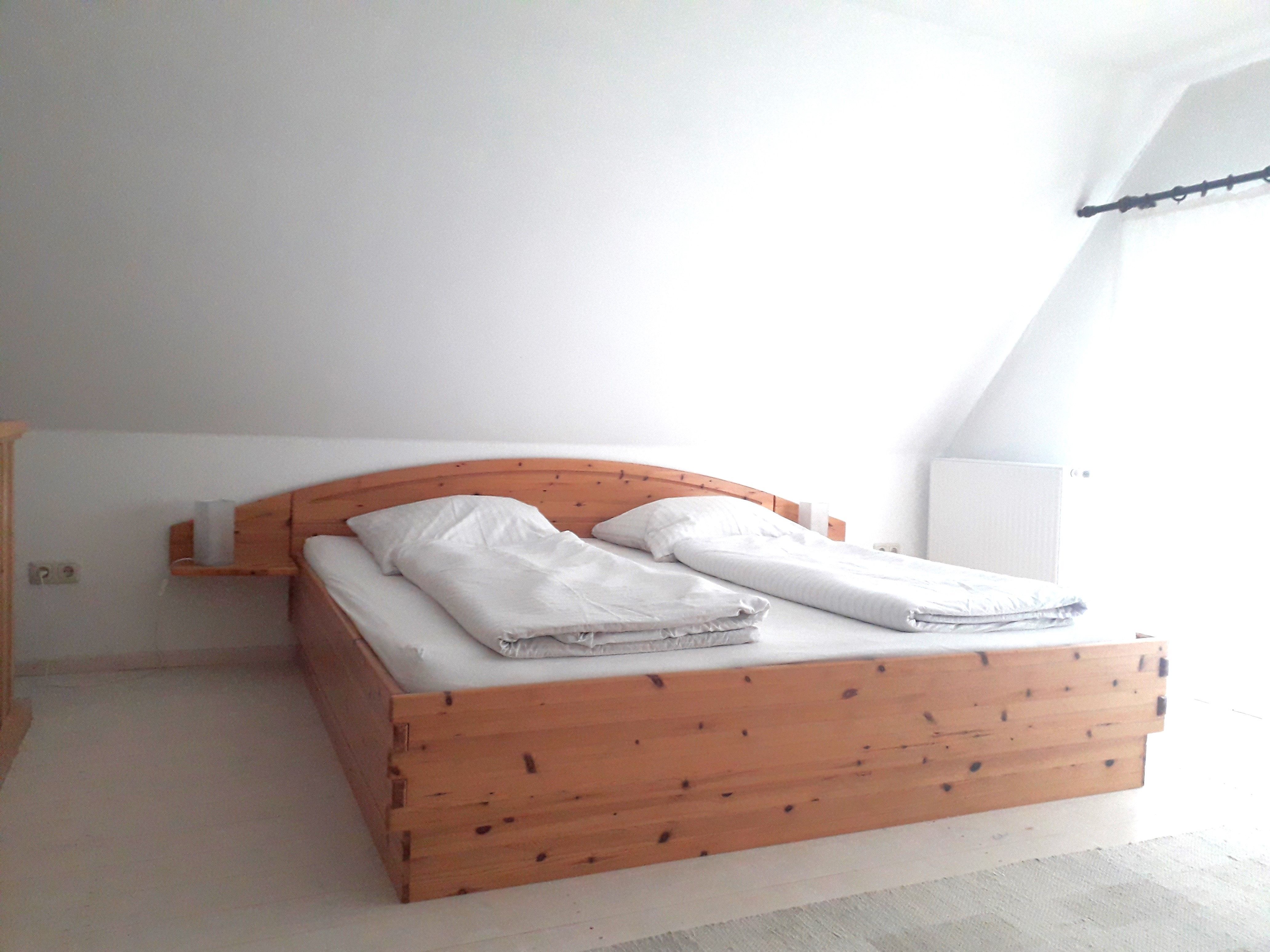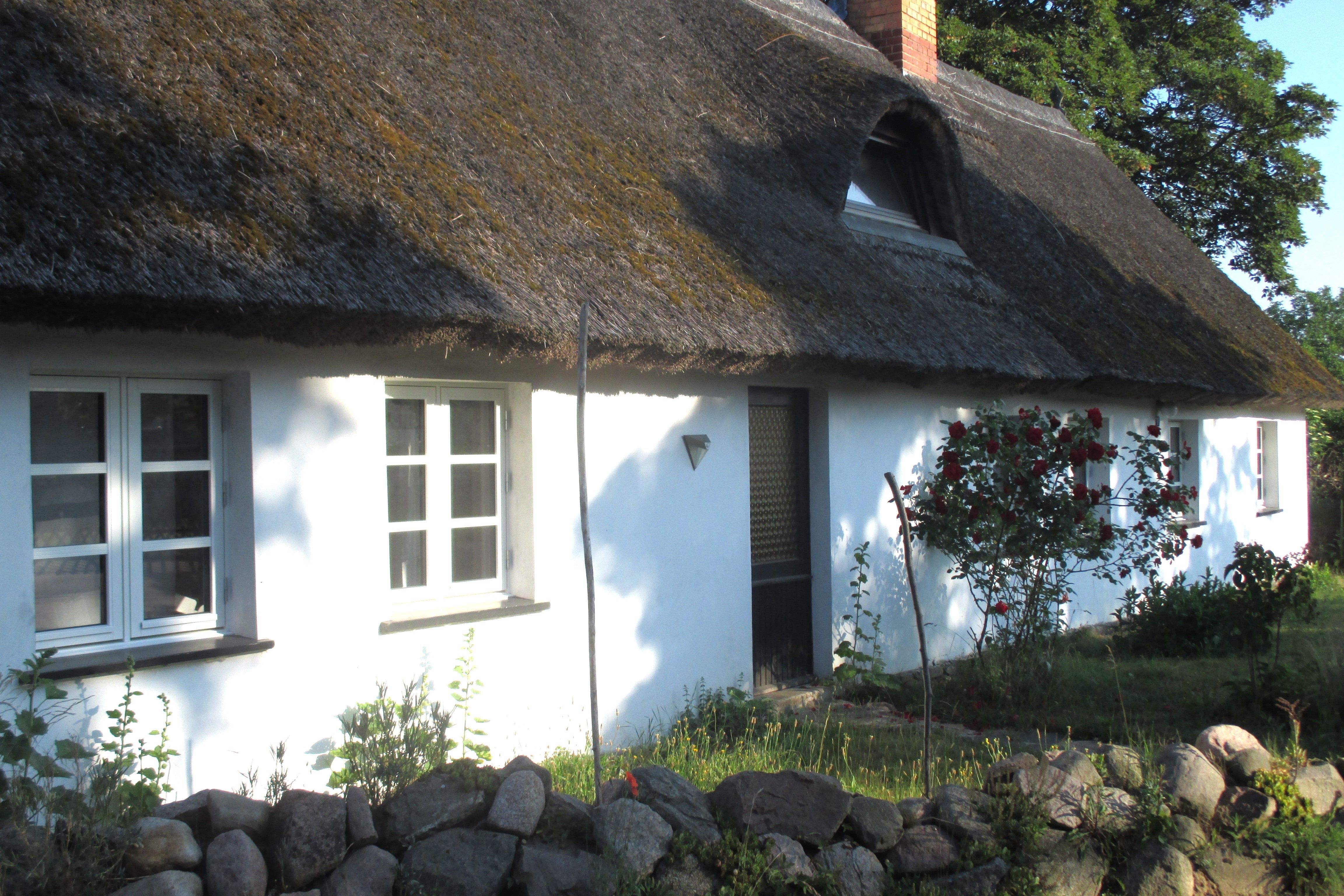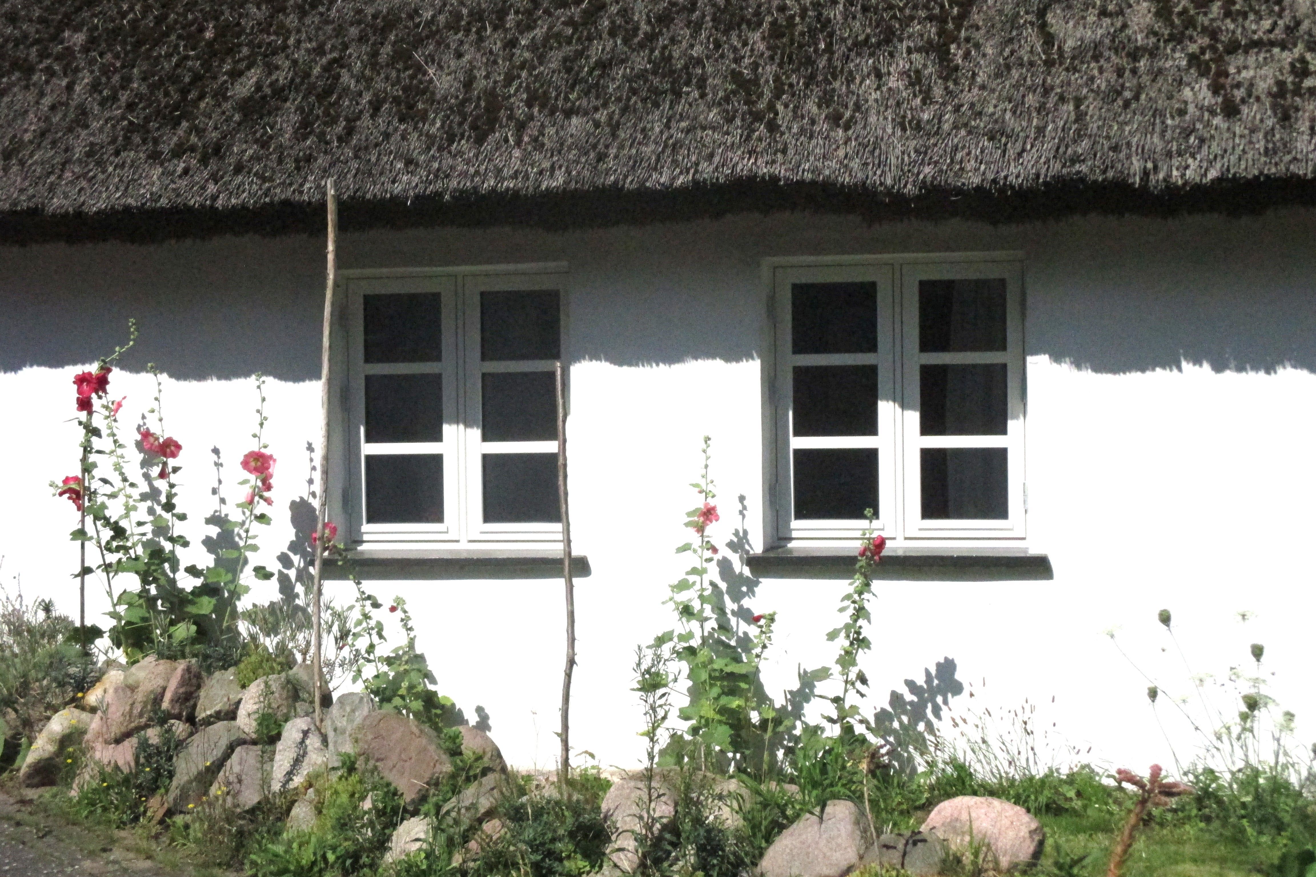 Die Ferienwohnung unter dem Reetdach des alten Hauses hat einen separaten Eingang und ist lichtdurchflutet und freundlich. Sie erstreckt sich über zwei Etagen. Die nach oben offene Wohnküche im Erdgeschoss verfügt über freiliegende Deckenbalken. Über eine steile Treppe gelangen Sie in das luftige Schlafzimmer im Obergeschoss, in dem sich ein Doppelbett und ein Einzelbett befinden. Sie eignet sich besonders gut für Paare. Für Ihre Fahrräder gibt es eine abschließbare Abstellmöglichkeit. Ein Parkplatz steht Ihnen ebenfalls zur Verfügung. Im Garten kann die Wäschespinne gern zum Trocknen der Handtücher genutzt werden.