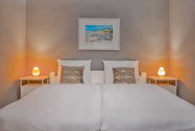 Ebenso komfortabel geht es in den zwei Schlafzimmern der Wohnung weiter. Einmal mit einem bequemen Doppelbett (180x200) und großem Kleiderschrank und im anderen Schlafzimmer ein Etagenbett, welches auch für Erwachsene geeignet ist. Für Verdunklung sorgen Plissees bzw. Rollo.