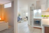 Auch die offene Küche wurde neben dem Wohnbereich komfortabel ohne störende Wände oder Türen integriert. Modern und durchdacht gestaltet, bietet Ihnen die Einbauküche alle Annehmlichkeiten für eine sorgenfreie Selbstversorgung.