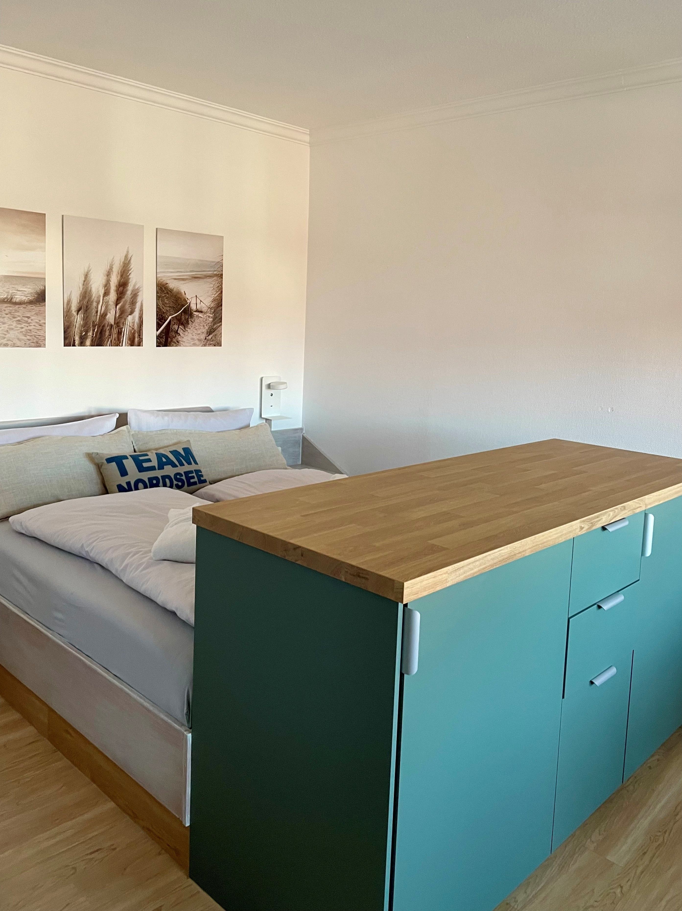 Gemütliche Nichtraucher-Ferienwohnung für 2-3 Personen mit einem Schlafzimmer und einem Wohn-Schlafzimmer in der Inselresidenz Strandburg.