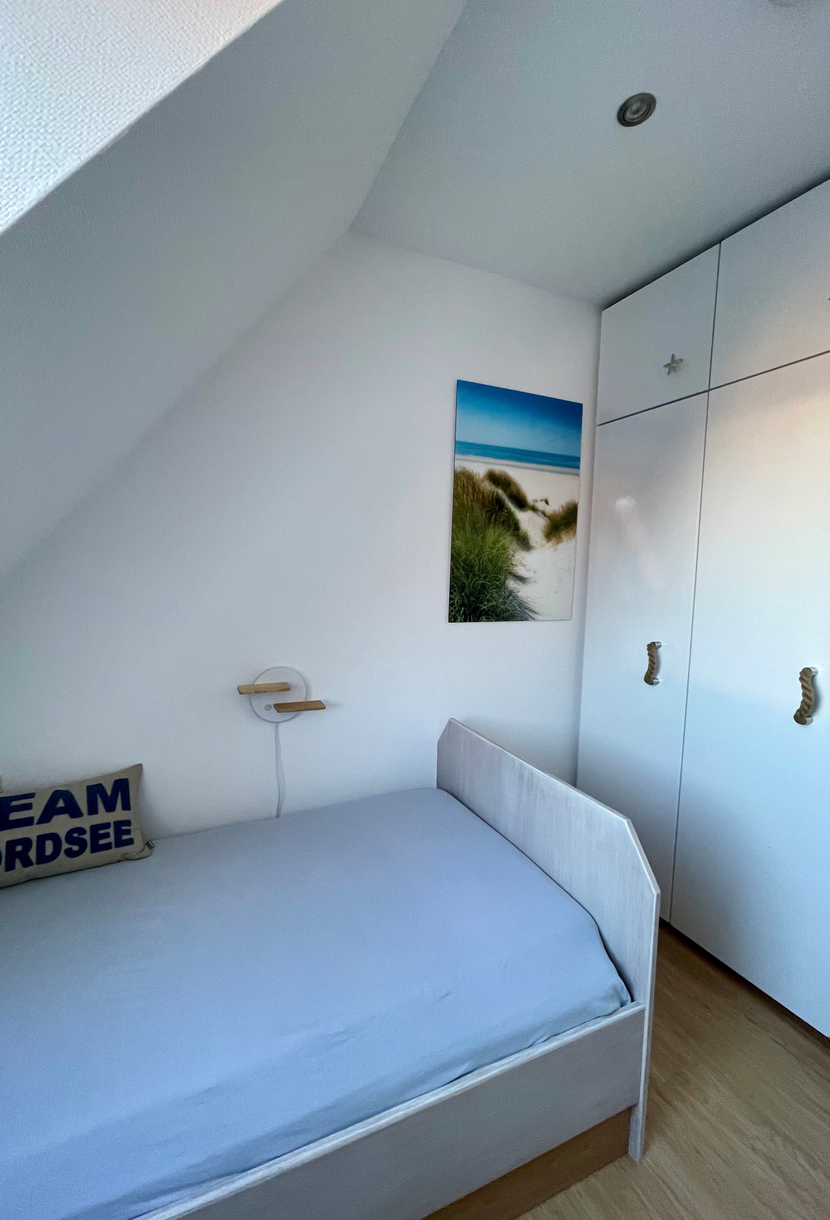 Das separate Schlafzimmer ist mit einem Einzelbett ausgestattet.
