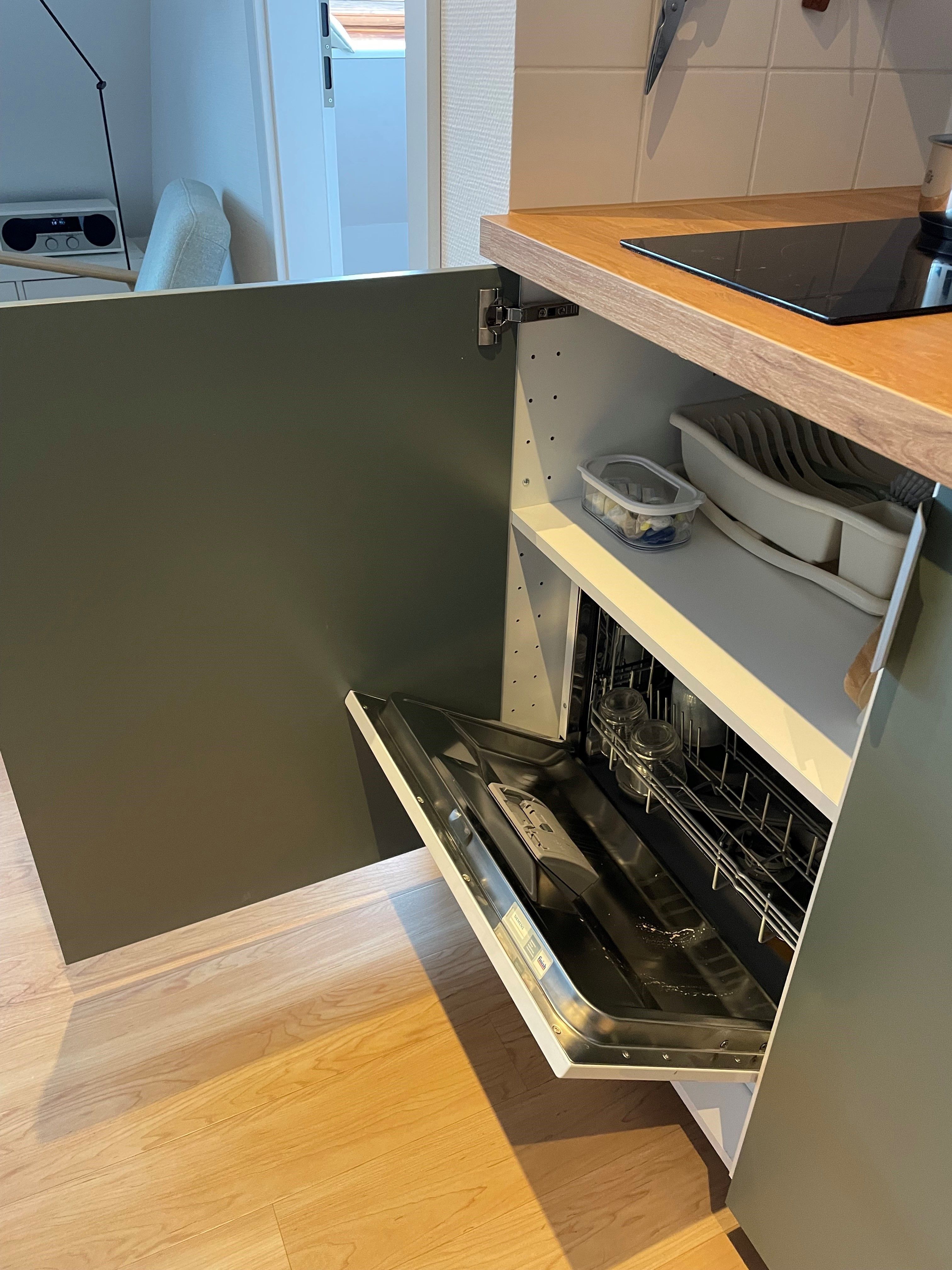 In der Kochnische finden Sie einen 2-Plattenherd mit Ceranfeld, einen Kühlschrank, eine Kaffeemaschine, einen Wasserkochen, sowie einen Toaster.