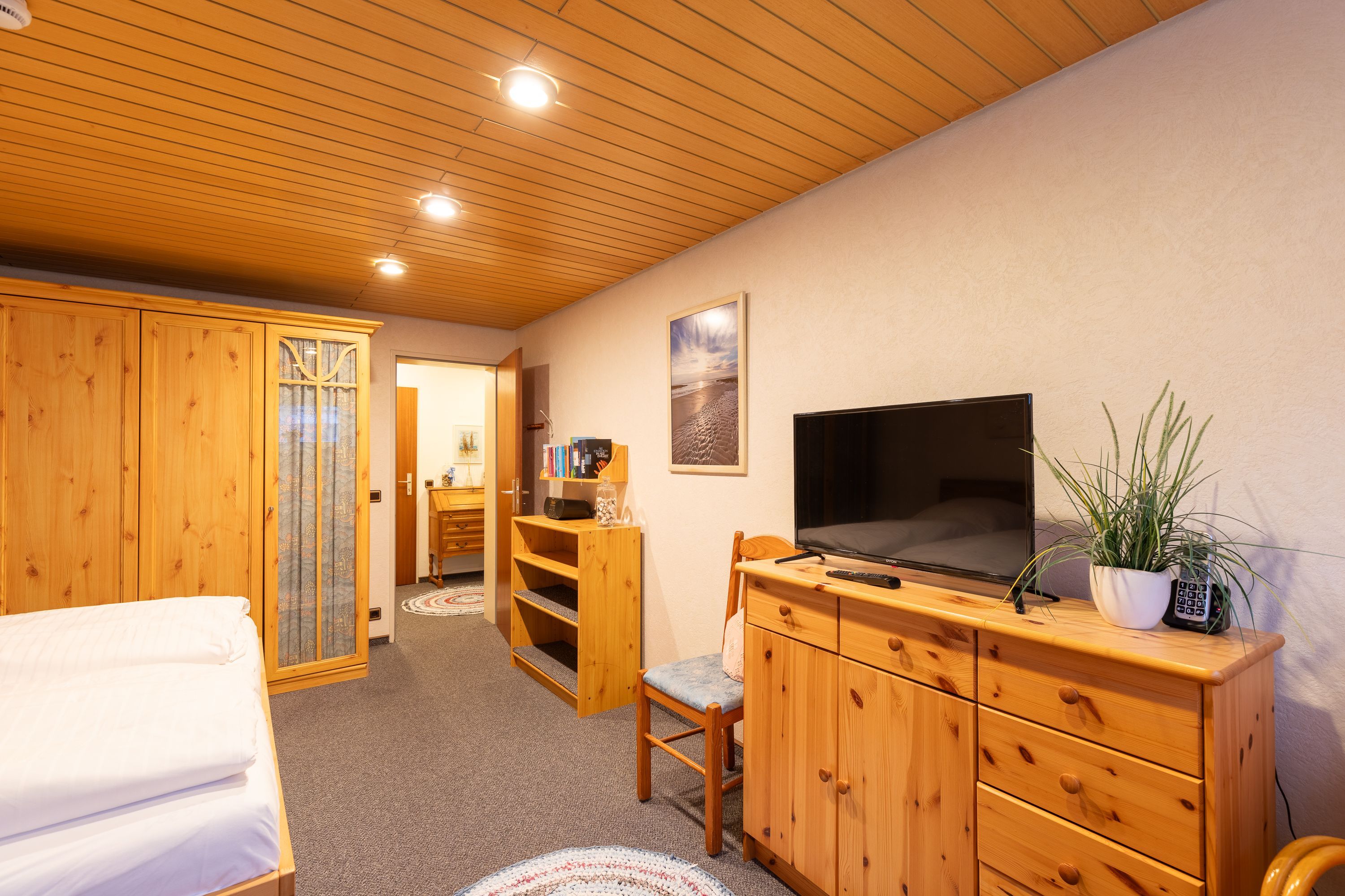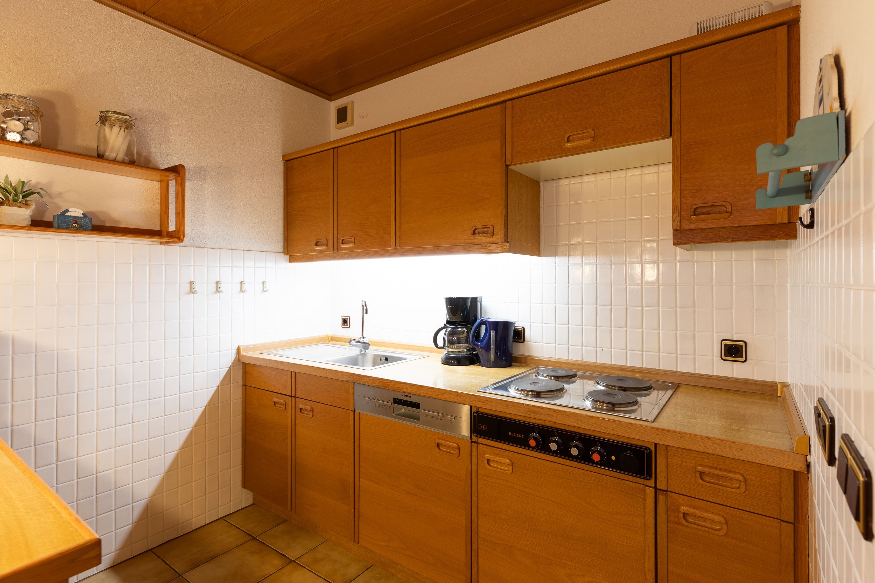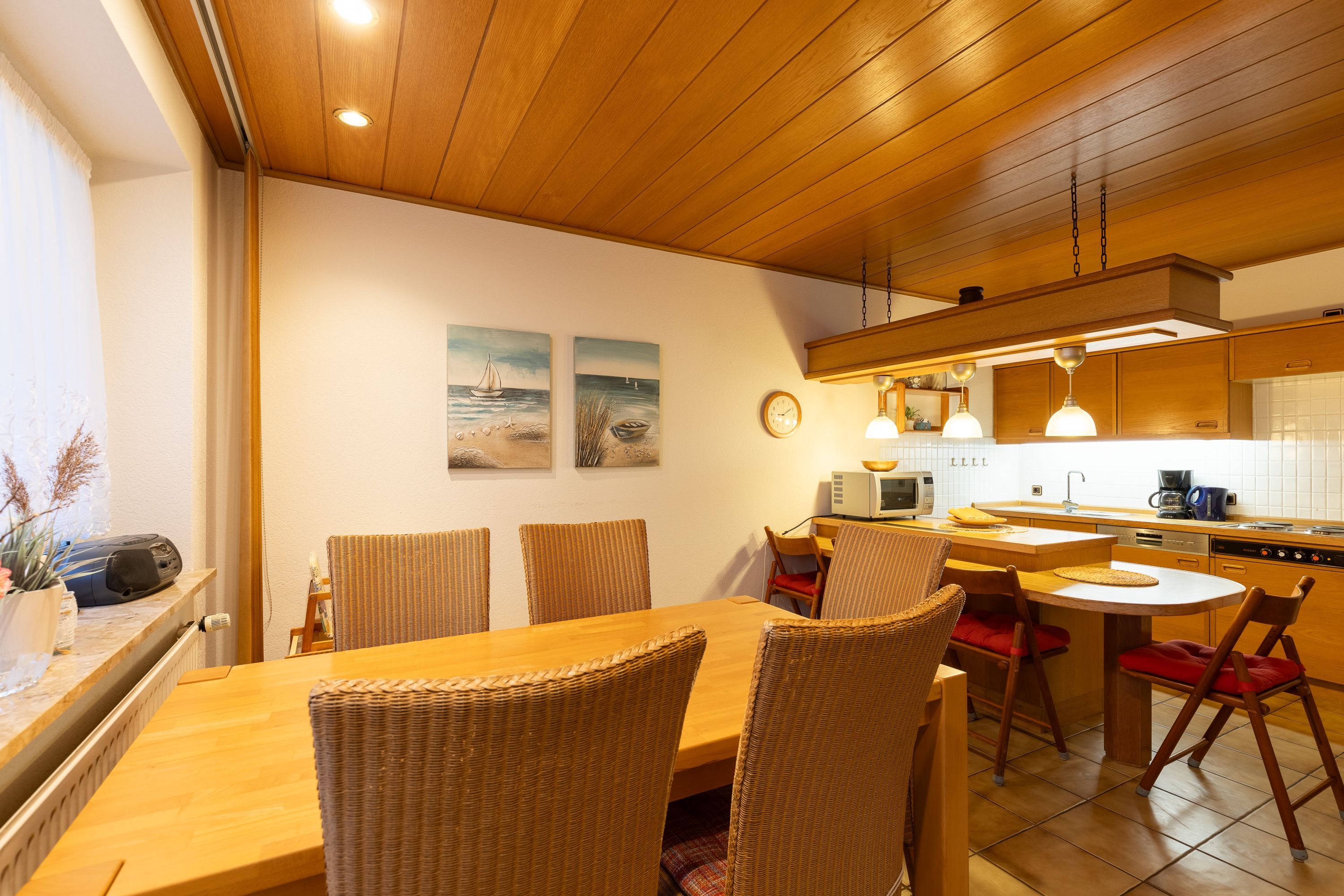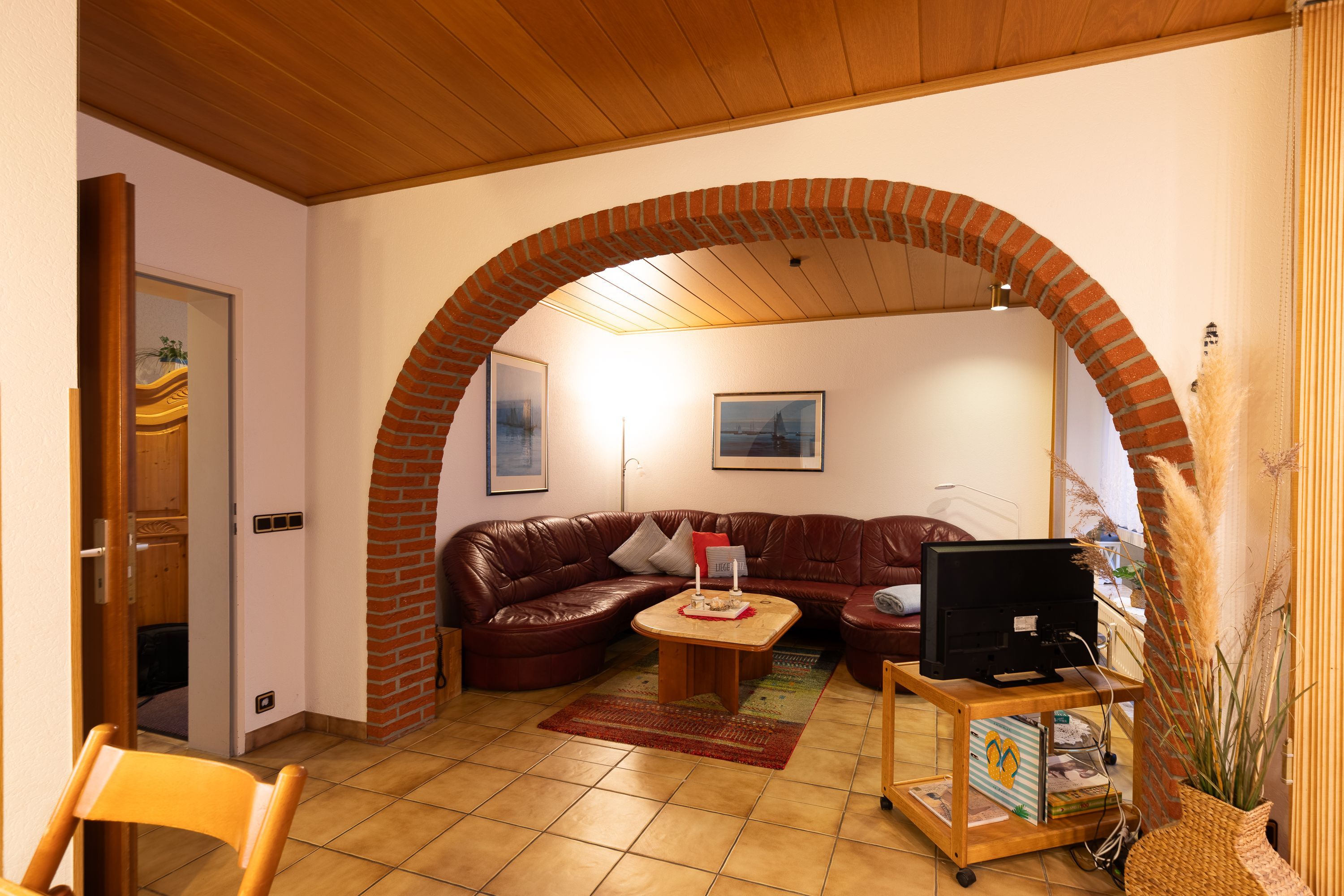 Die 3 Zimmer Wohnung, ca. 76m² ist für bis zu 5 Personen ausgestattet, helles großes Wohnzimmer mit Sofa, TV, Essplatz mit 5 Stühlen und Zugang zum Balkon, mit Gartenmöbel, Küchenzeile (Kochfeld mit vier Platten, kleiner Backofen, Geschirrspüler, Kaffeemaschine, Wasserkocher, Toaster), 1 Bad mit Dusche und WC, Flur, die Schlafzimmer befinden sich im Souterrain (an heißen Tagen erwartet Sie hier eine angenehme Kühle und ein gutes Raumklima), 1 Schlafzimmer mit Doppelbett und Kleiderschrank, 1 Schlafzimmer mit Doppelbett, 1 Einzelbett und Kleiderschrank, PKW-Stellplatz am Haus, Nichtraucher, es sind keine Tiere erlaubt.