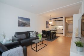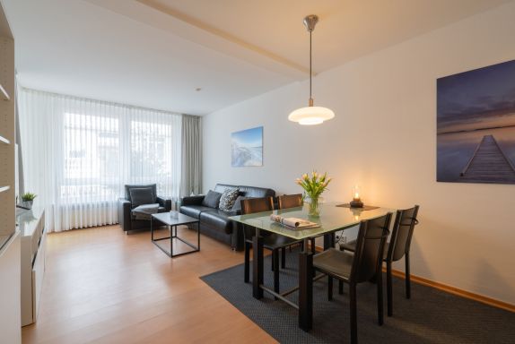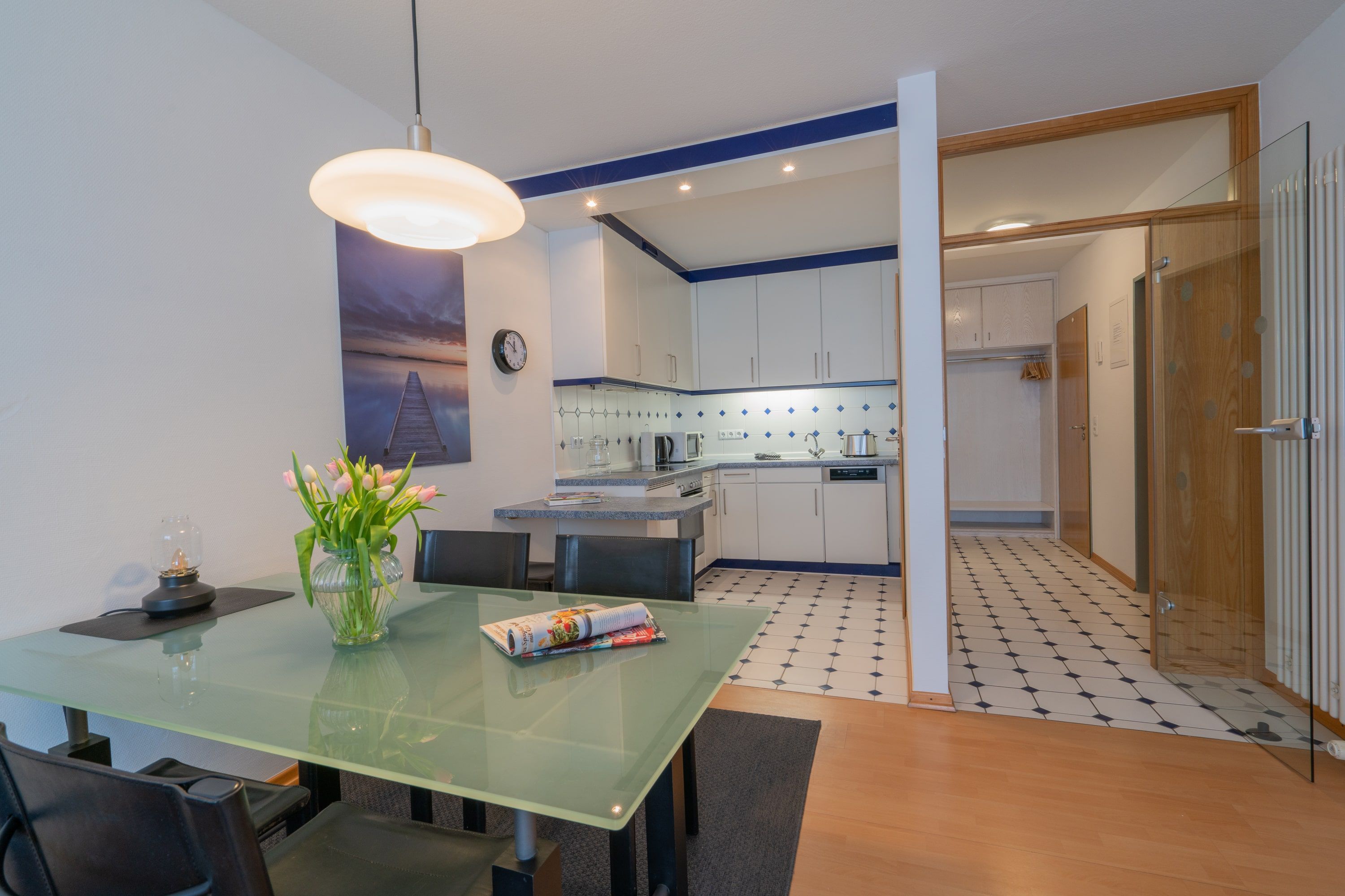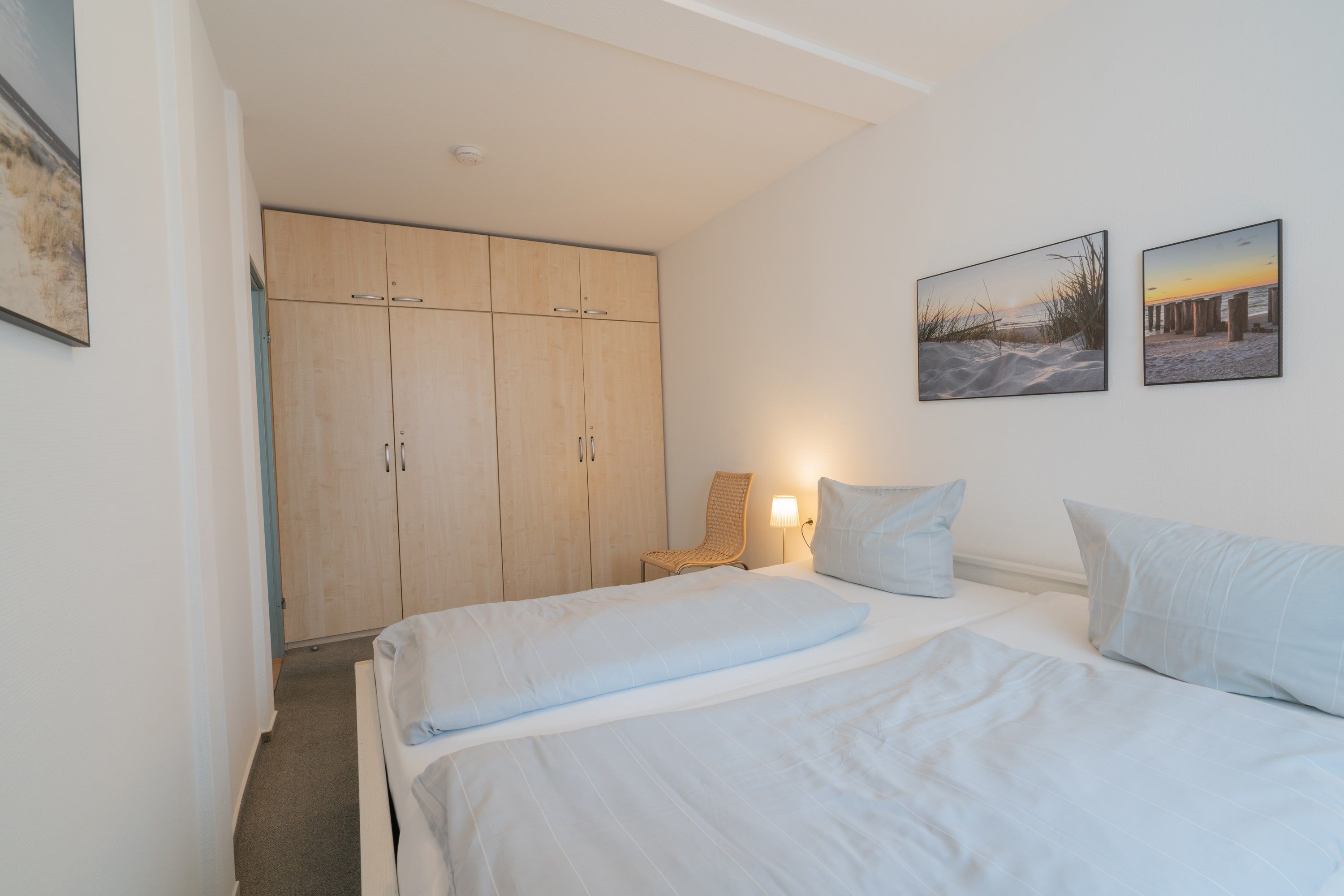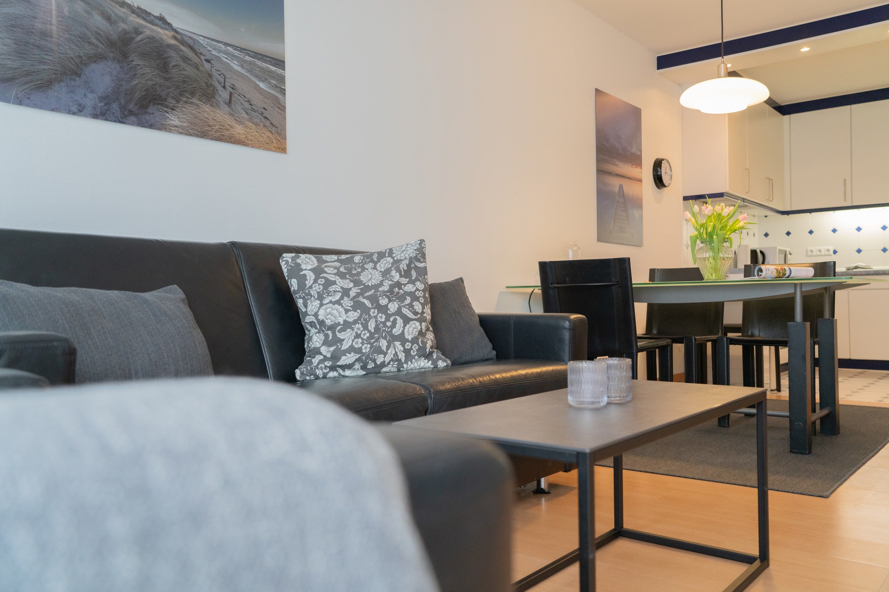 Die Wohnung überzeugt mit einer offenen Gestaltung. Das separate Schlafzimmer mit einem gemütlichen Doppelbett sorgt für erholsame Nächte, während das Schlafsofa im Wohnzimmer zusätzlichen Platz für Ihre Mitreisenden bietet. Der Wohnbereich ist hell und freundlich gestaltet ideal, um nach einem Tag am Meer die Beine hochzulegen. Die offene Küche ist voll ausgestattet, sodass Sie sich kulinarisch austoben können.