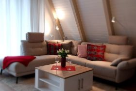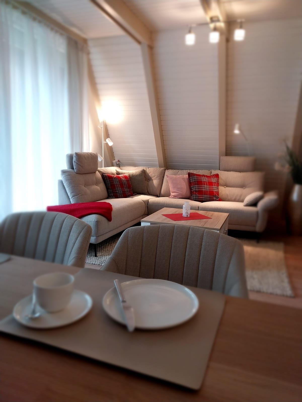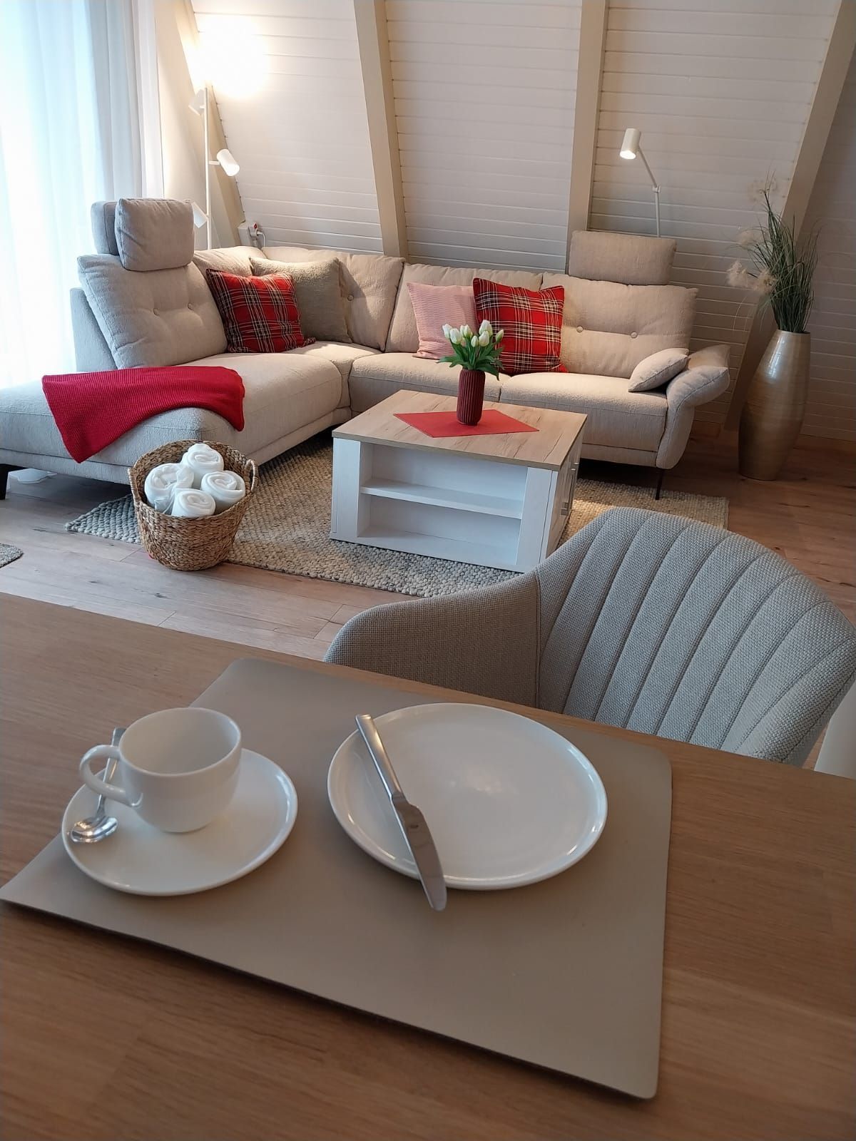 Egal, ob Sie Ihr Frühstück auf der direkt vor dem Wohnzimmer gelegenen Terrasse genießen oder den Abend mit einem Glas Wein dort ausklingen lassen, die bequemen Sitzmöbel sind ein Garant für Entspannung und Erholung.