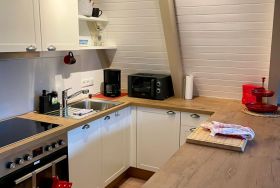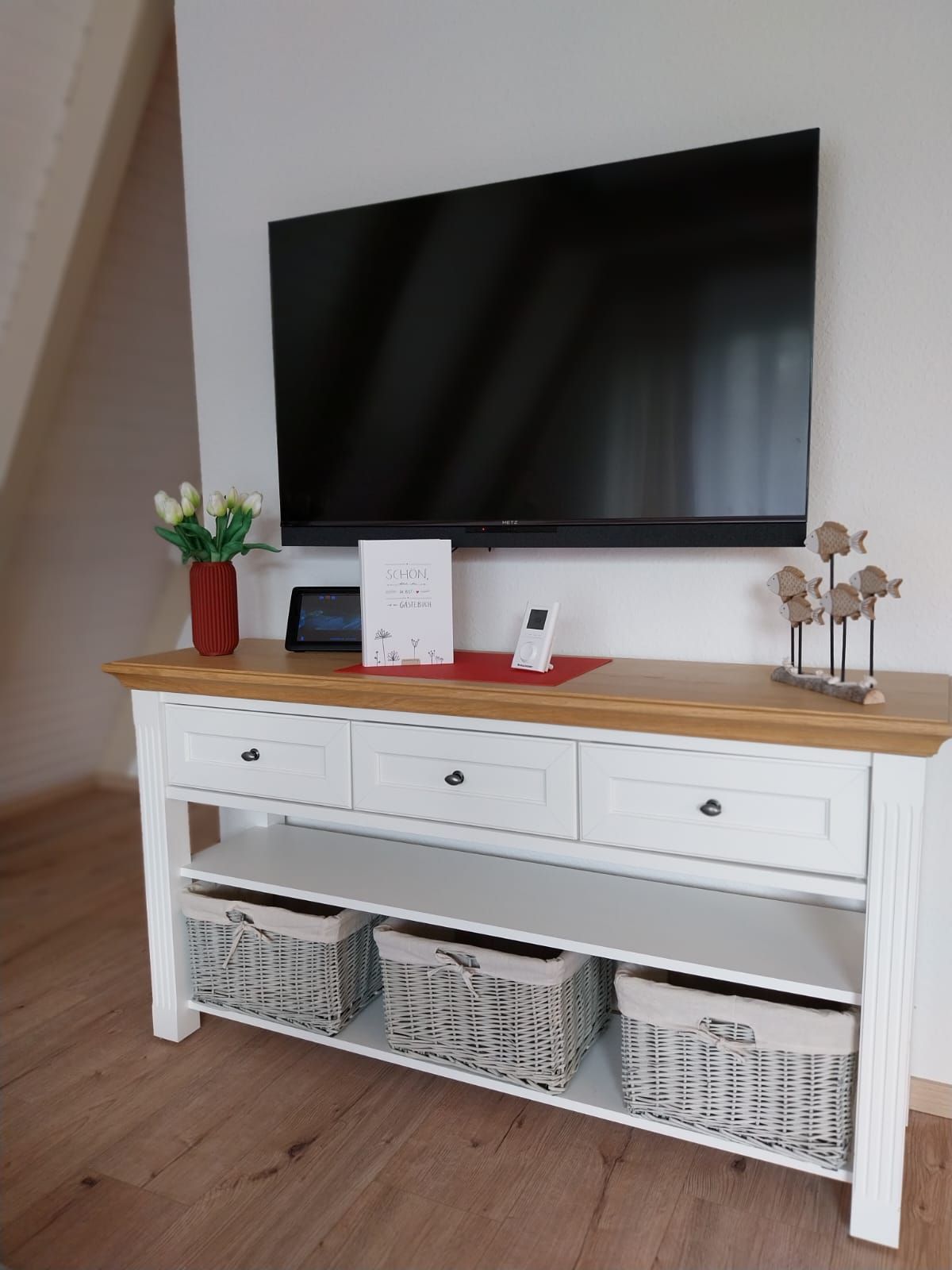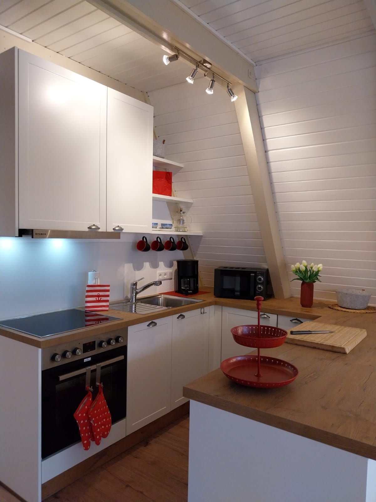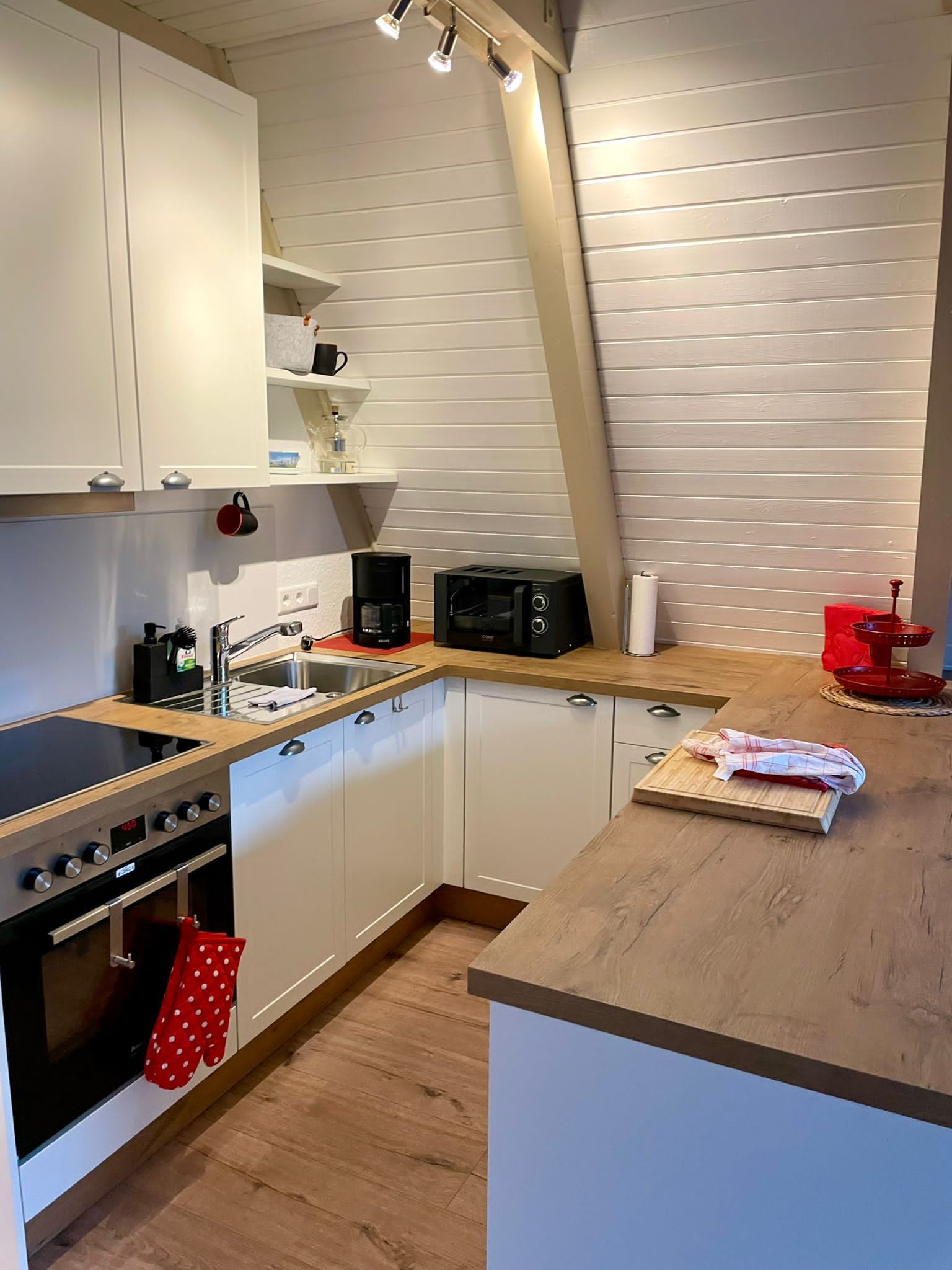 Die echte Küche ist sehr modern und mit allem eingerichtet, was das Herz begehrt, und lädt dazu ein, sich etwas Leckeres zuzubereiten. Im gemütlichen Wohnbereich mit einer einladenden Sofalandschaft können Sie sich nach einem schönen Tag in Butjadingen perfekt entspannen und Ihre nächsten Ausflüge planen.