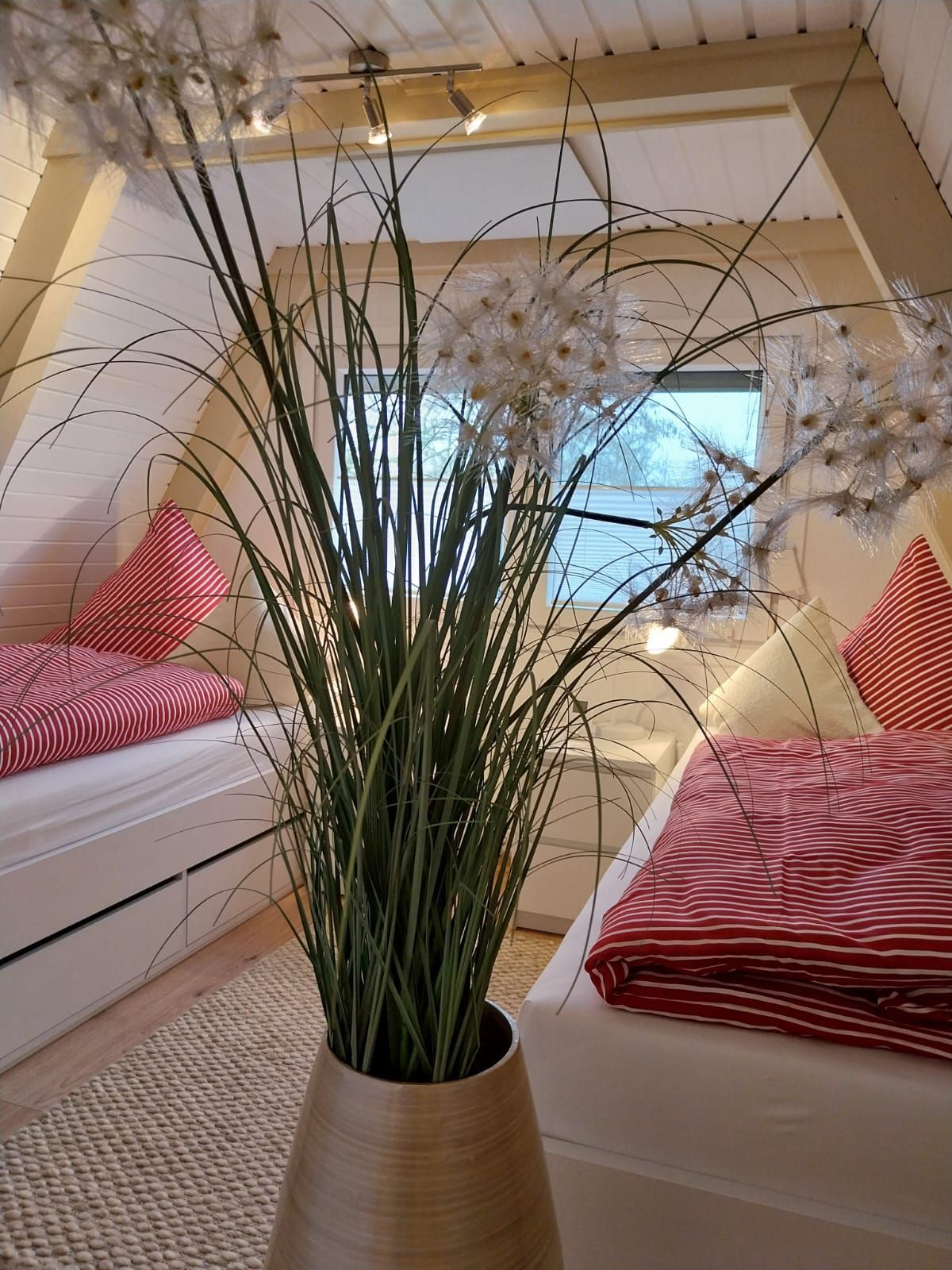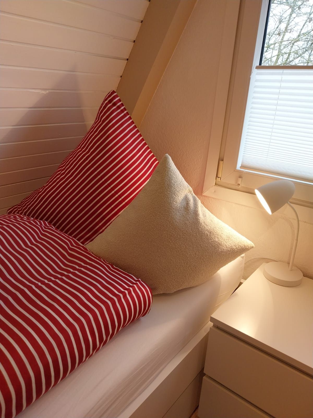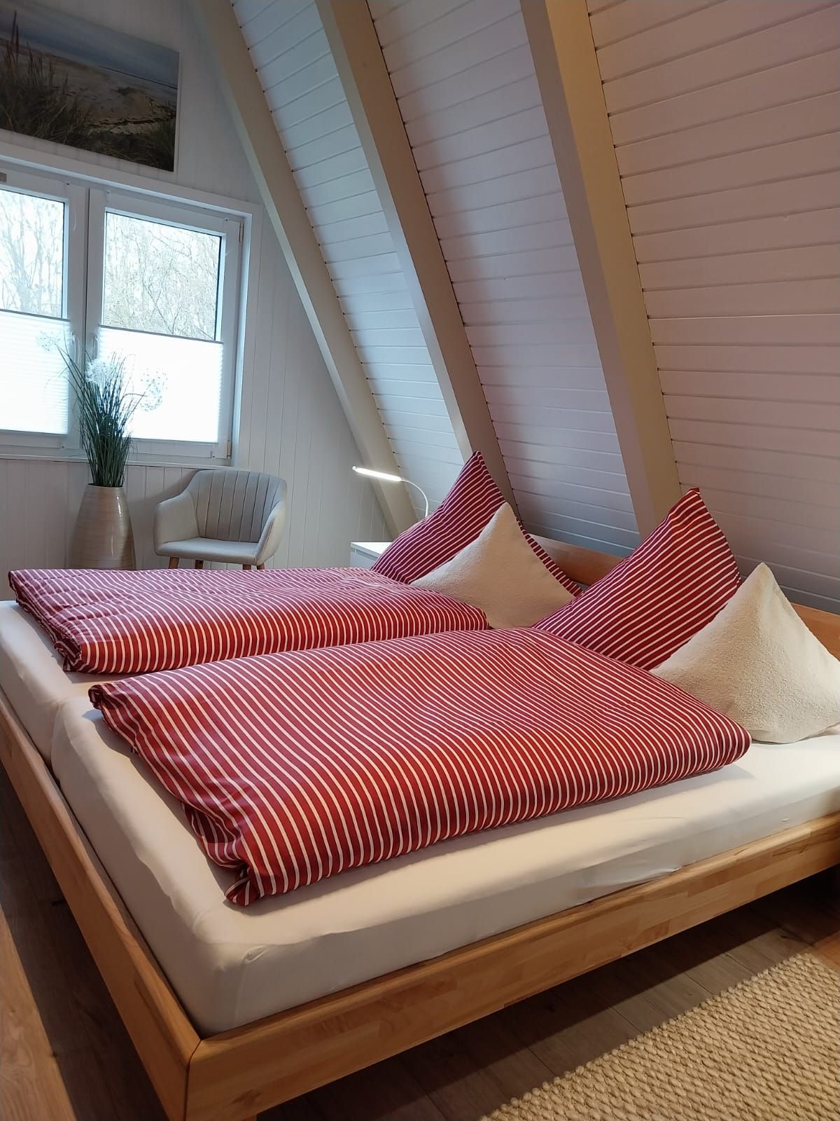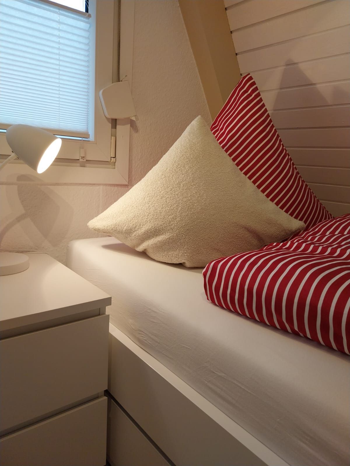 In unserem 2024 frisch renovierten und klimatisierten Schwedenhaus erwarten Sie ein gemütliches Wohnzimmer mit einer integrierten Küche und zwei liebevoll gestaltete Schlafzimmer. Diese befinden sich im Obergeschoss und sind selbstverständlich beide mit Fernsehern ausgestattet. Das eine der beiden Schlafzimmer bietet ein gemütliches Doppelbett, das andere zwei Einzelbetten.