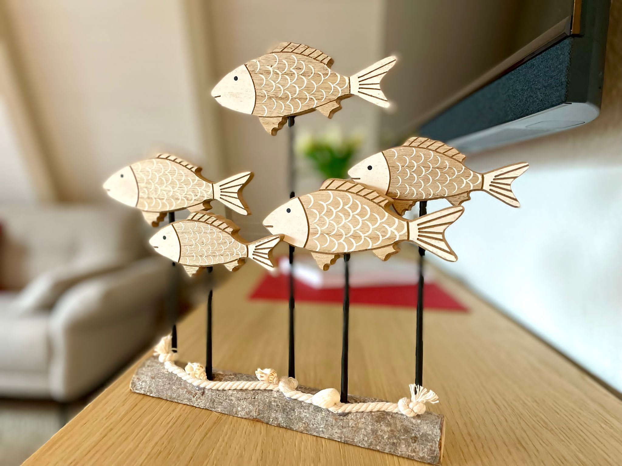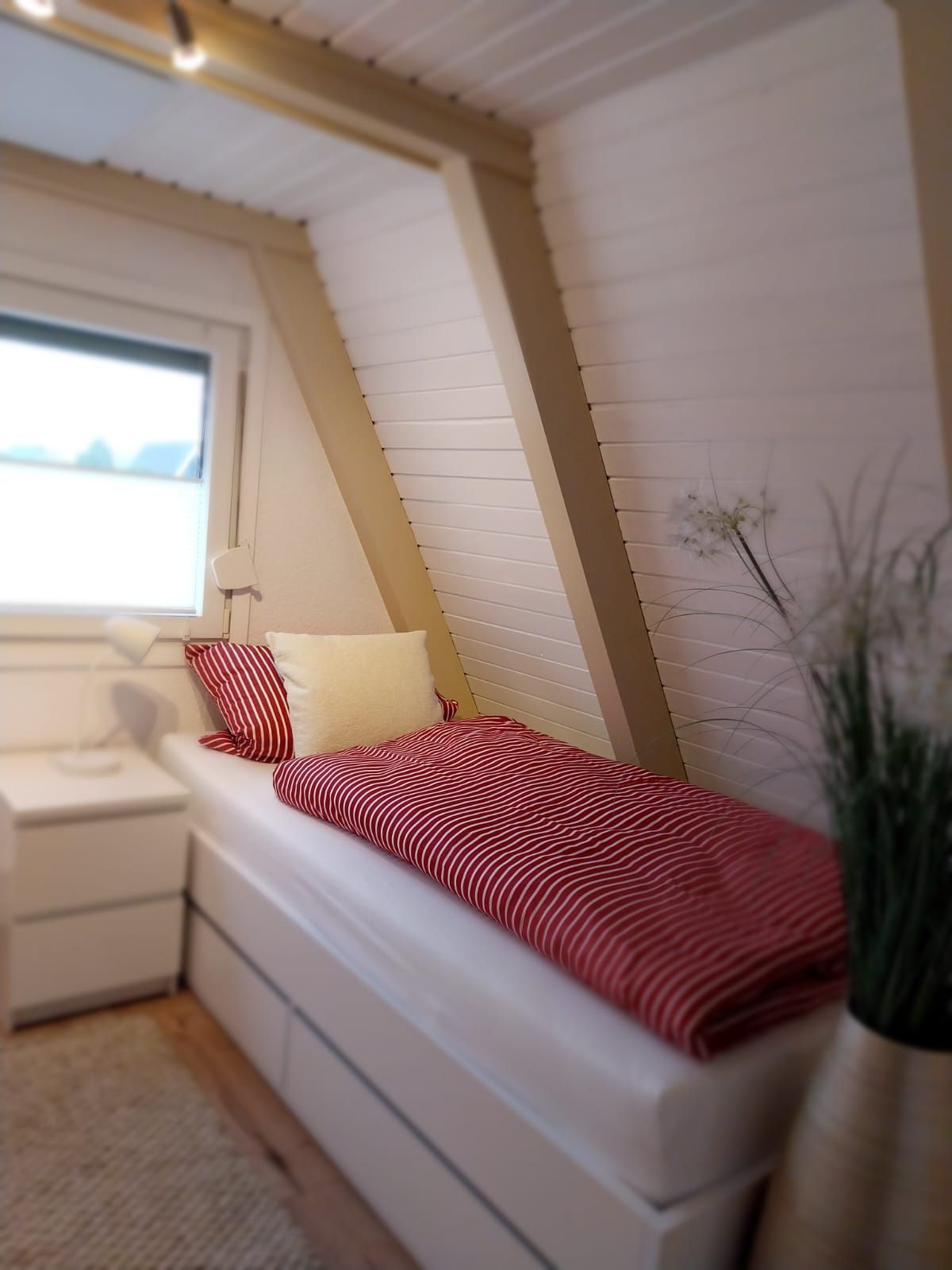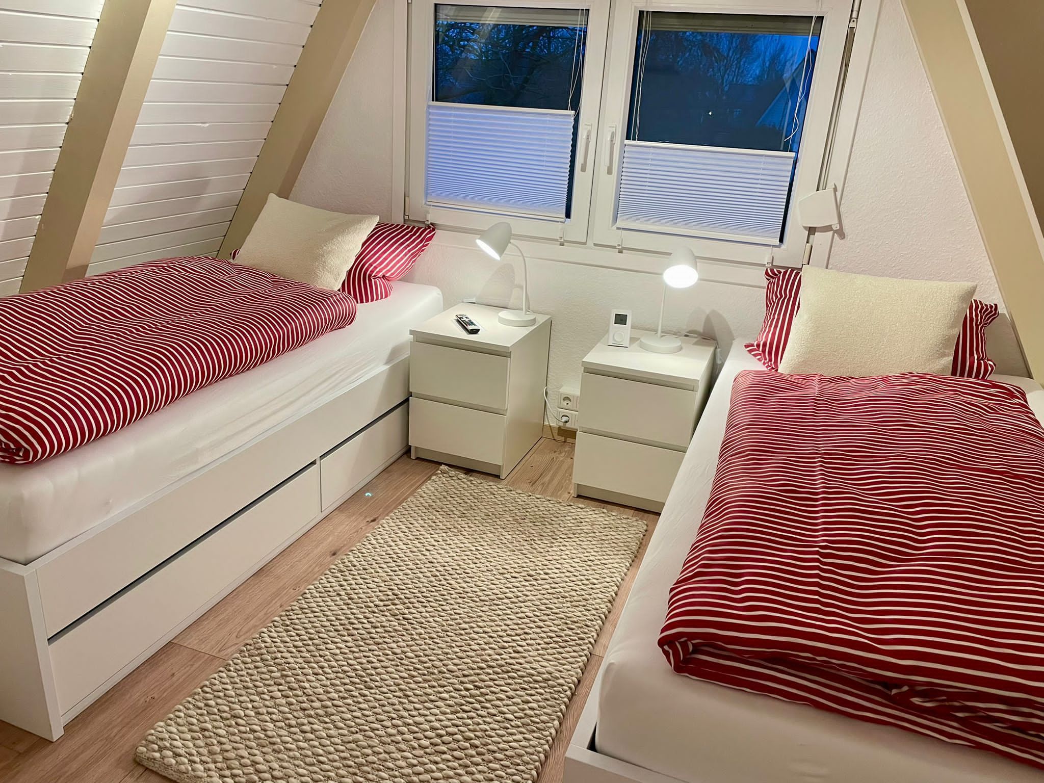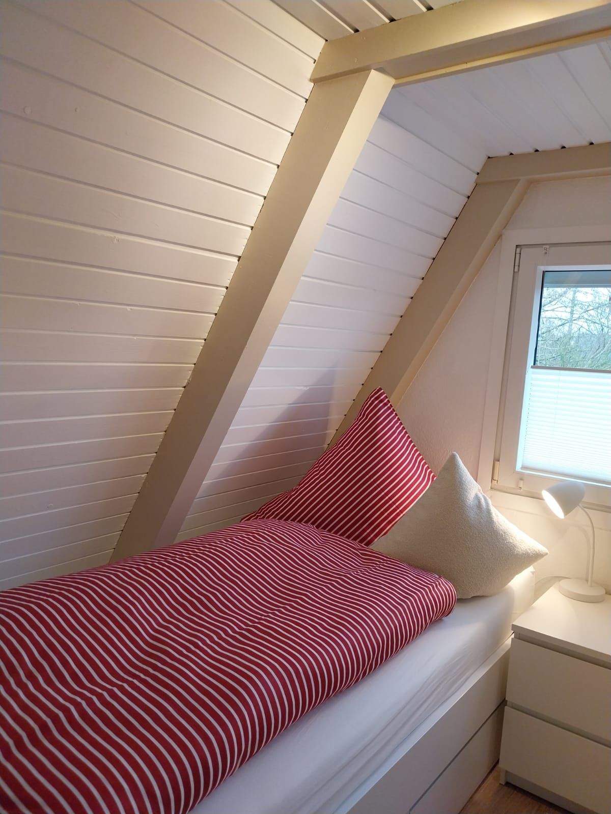 In unserem 2024 frisch renovierten und klimatisierten Schwedenhaus erwarten Sie ein gemütliches Wohnzimmer mit einer integrierten Küche und zwei liebevoll gestaltete Schlafzimmer. Diese befinden sich im Obergeschoss und sind selbstverständlich beide mit Fernsehern ausgestattet. Das eine der beiden Schlafzimmer bietet ein gemütliches Doppelbett, das andere zwei Einzelbetten.