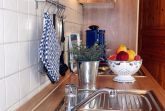 -Küchenzeile mit Geschirrspüler, Backofen, Herd, Kaffeemaschine etc.