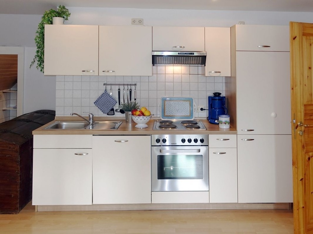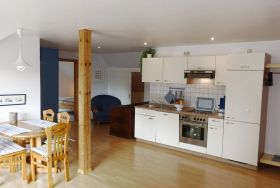 Ferienwohnung für bis zu 5 Personen mit Balkon, Küche, Herd, Backofen, Geschirrspüler, TV, WLAN, Fasssauna und vielen weiteren Extras zum Wohlfühlen.