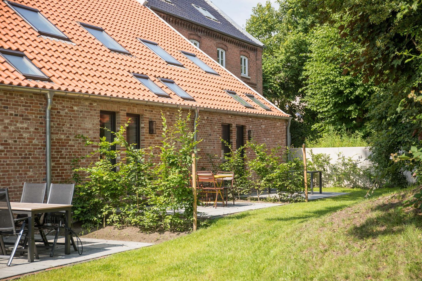 Alle Wohnungen sind Maisonette und zeichnen sich durch moderne, Grundrisse aus. Durch die Einbeziehung des historischen Ständerfachwerks in die Wohnraumgestaltung erhalten die Einheiten zudem eine besondere, unverwechselbare Note. Fußbodenheizung, Echtholz-Parkettböden sowie Armaturen und Keramik namhafter Hersteller versprechen einen hohen Wohnkomfort. Zu jeder Wohnung gehört eine großzügige Terrasse sowie ein PKW-Stellplatz mit Abstellschuppen. Die Außenanlagen des rund 4000 qm großen Grundstücks zeichnen sich besonders an der Südseite und Ostseite durch großzügige Grünflächen aus, die mit Sträuchern und Hecken geschmackvoll angelegt wurden. Ein alter Baumbestand rundet das Gesamtbild ab.
