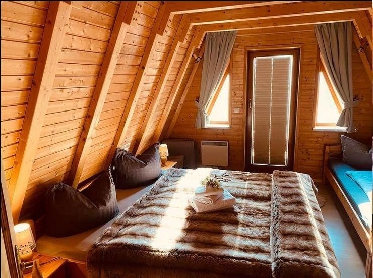 Das Ferienhaus ist ein Holzhaus, mit einem Schrägdach Auf zwei Etagen, mit Sonnenterrasse und Balkon. Das Besondere an diesem Haus ist die Bauform und die wunderbare Ausstattung, die keine Wünsche offen lässt. Das i-Tüpfelchen ist die hauseigene Sauna, die zum entspannen einlädt.
