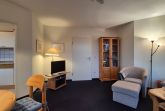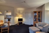 Diese 2-Zimmer-Ferienwohnung (Wohnung 35) befindet sich im 1. Obergeschoß in der Residenz Bellevue in 17454 Zinnowitz, Heimweg 11 und bietet einen schönen Blicke auf das Umfeld und die Landschaft, mit Wald und Achterwasser.