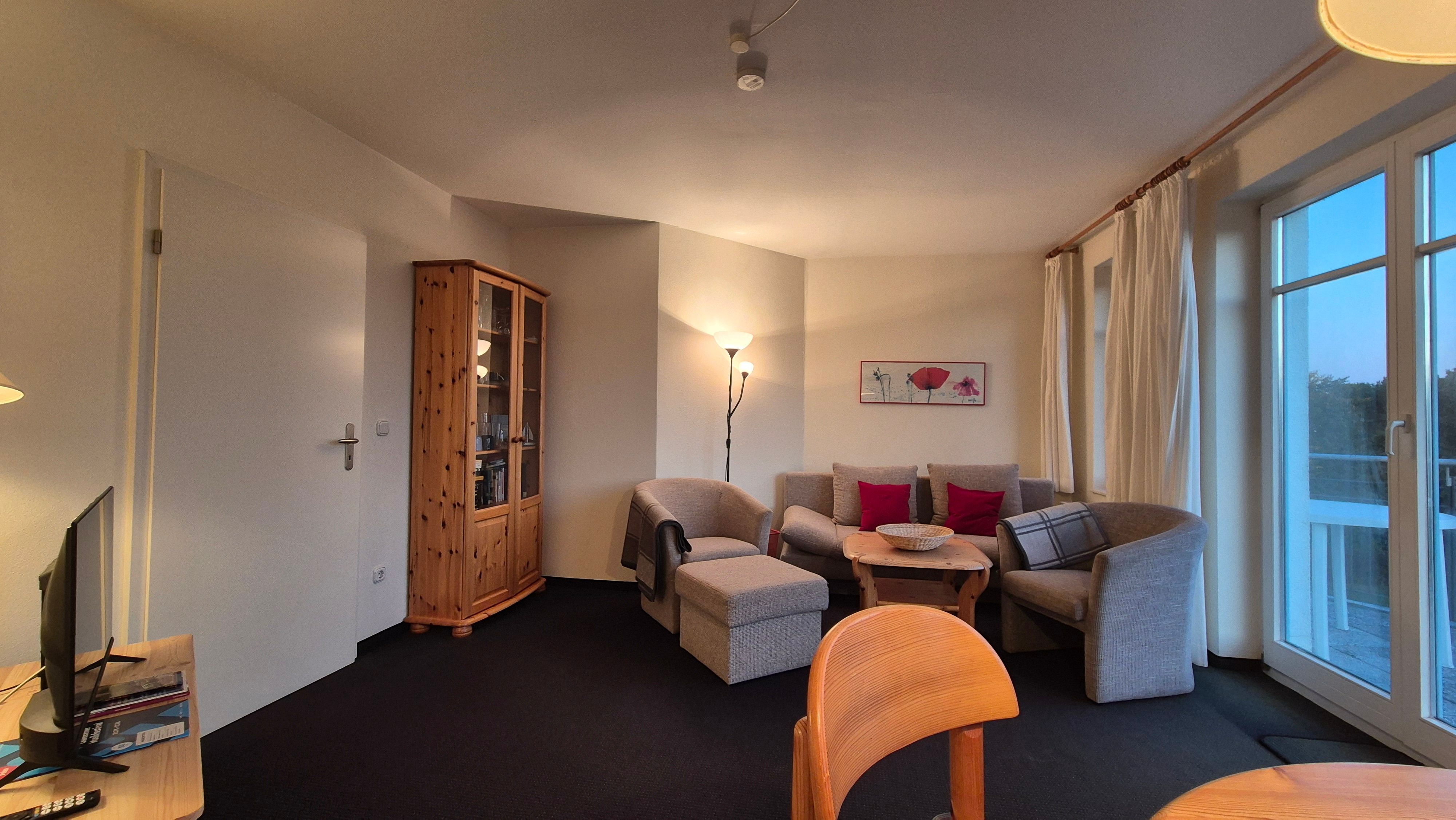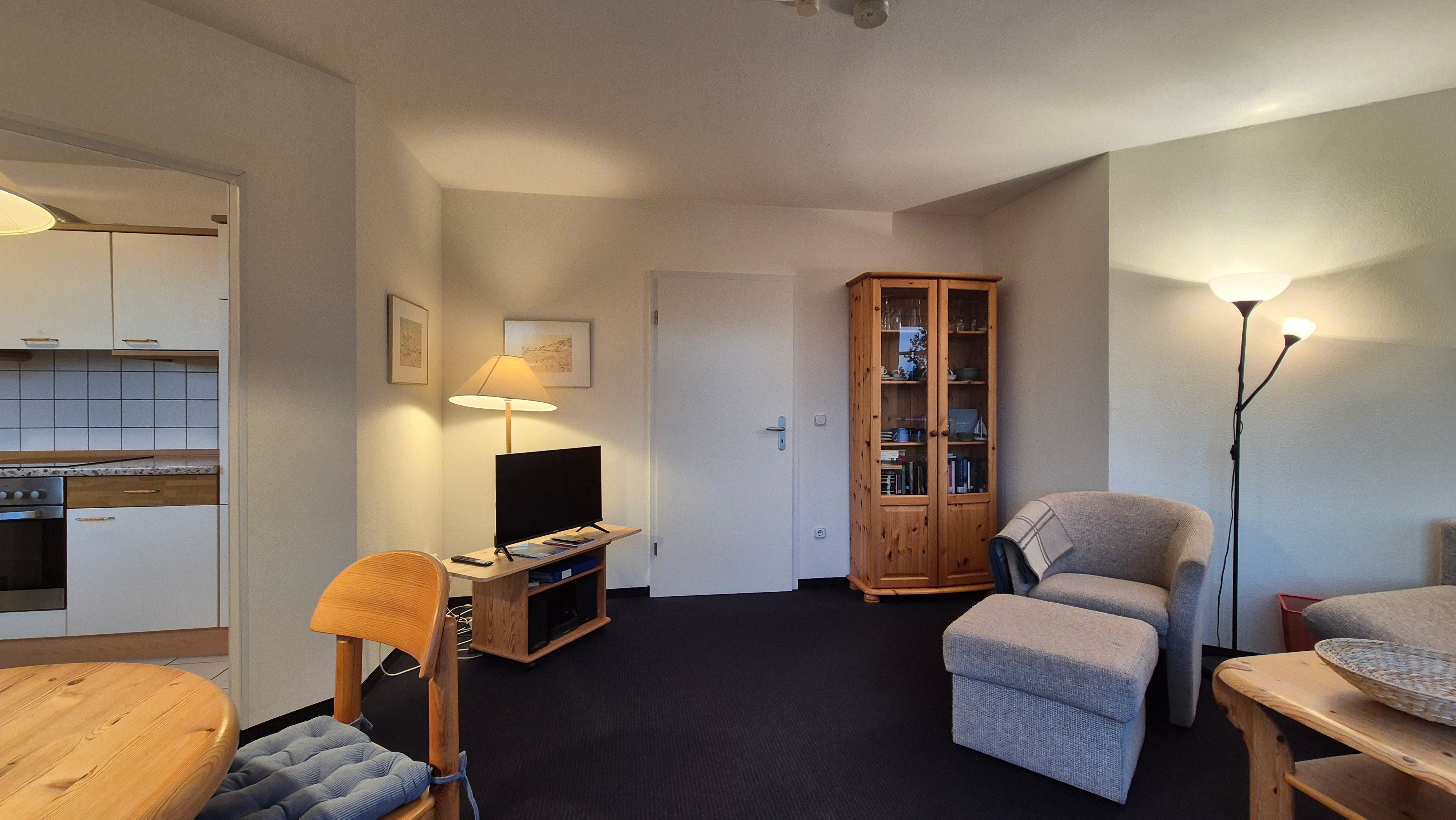 Ferienwohnung (Nr. 35) für bis zu 4 Personen (ca. 55 m²) im 1.OG mit Wohn- und Esszimmer mit offener Küche, 1 Schlafzimmer, 1 Bad und 1 Balkon.