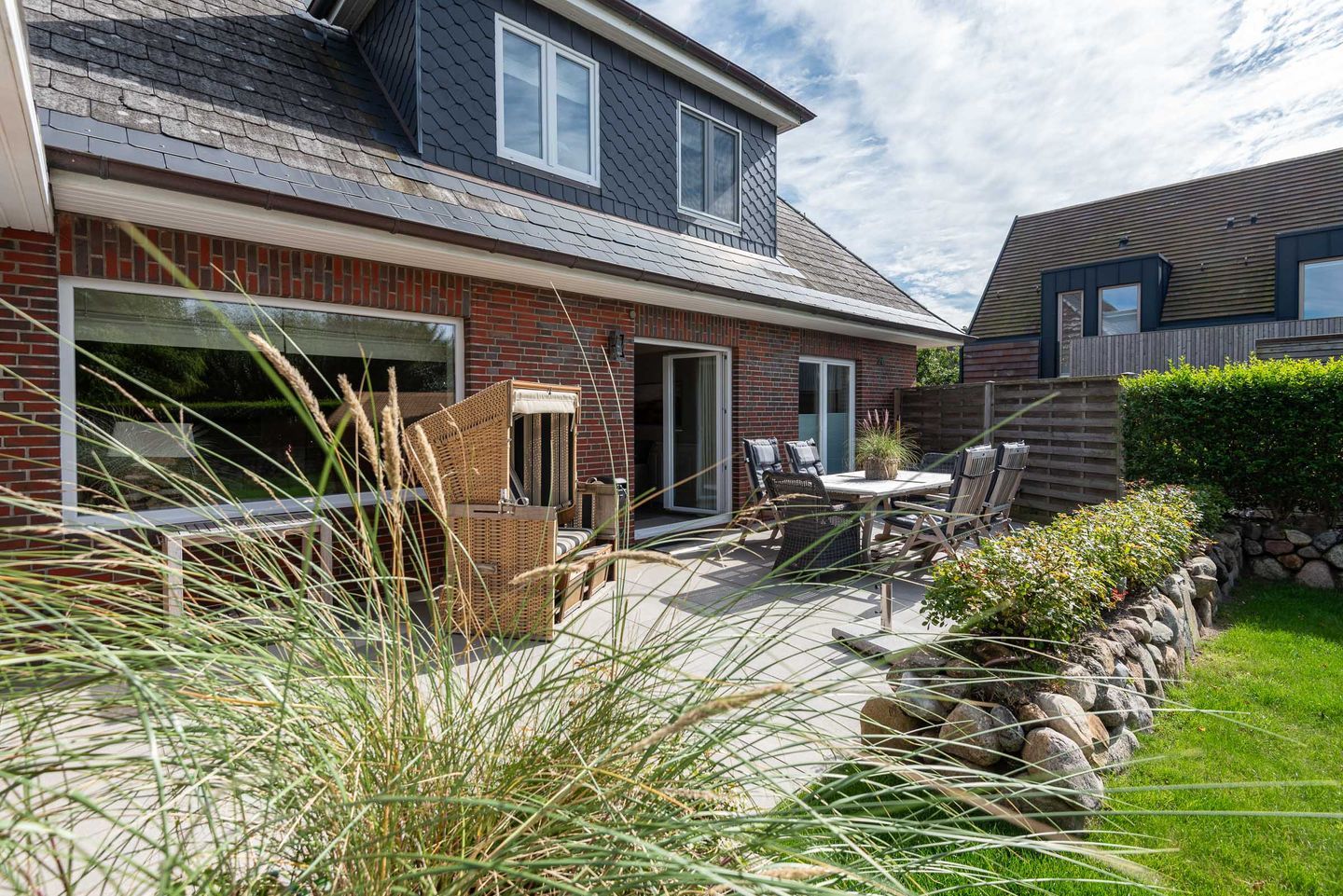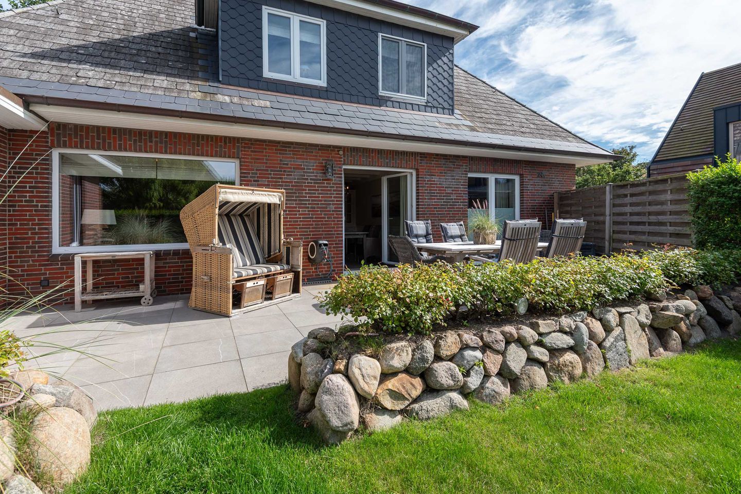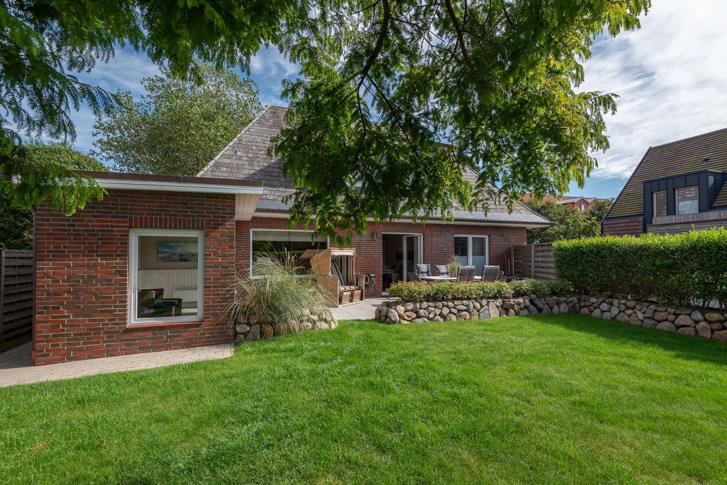 Die Ferienwohnung befindet sich im Erdgeschoss vom Sönhüs auf einem ca. 860 m² großen und eingewachsenen Grundstück.