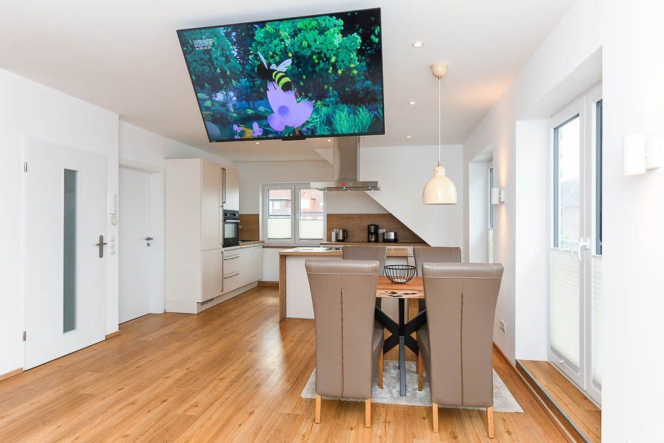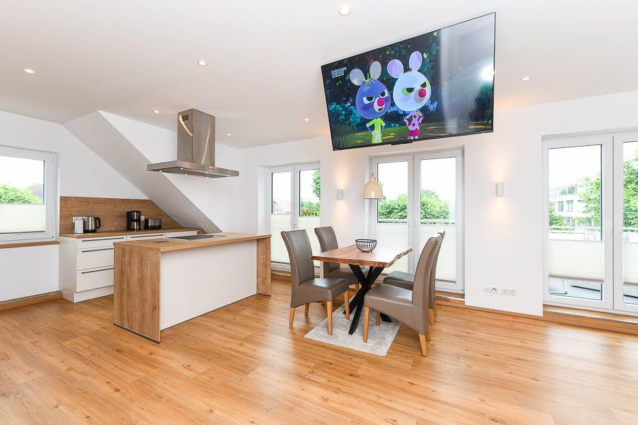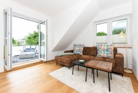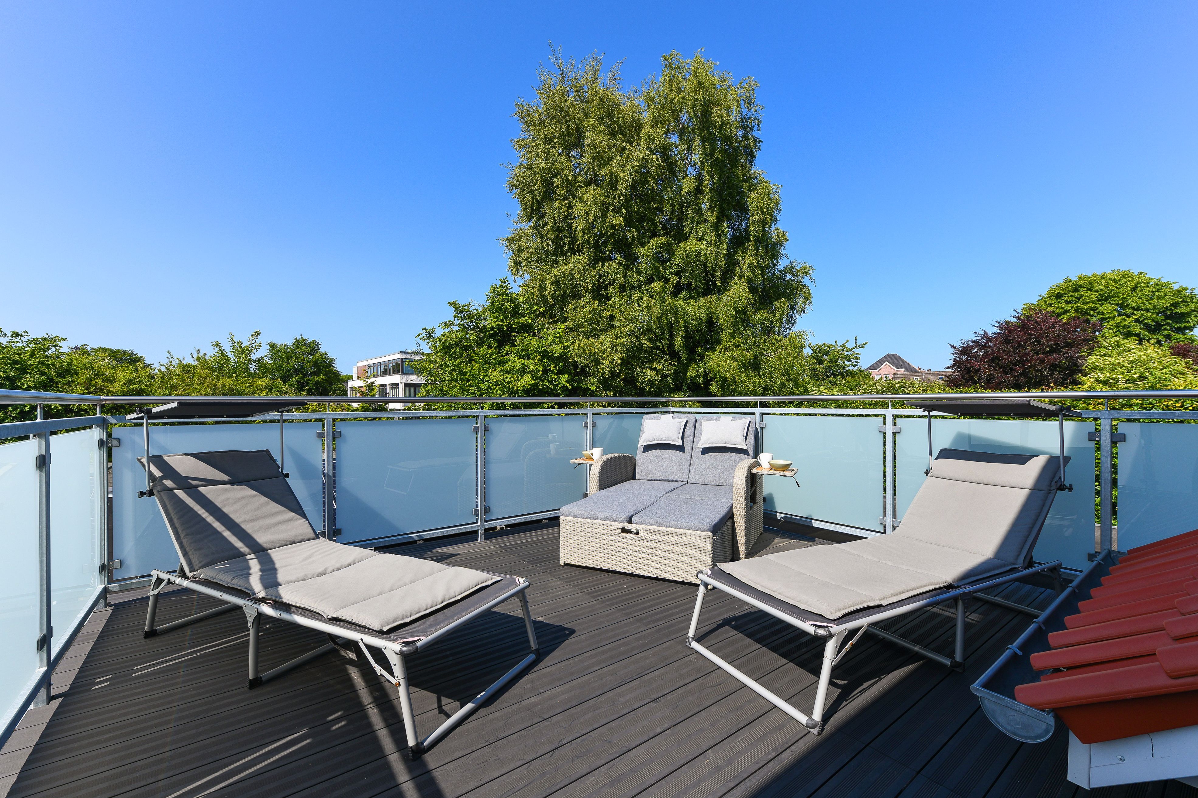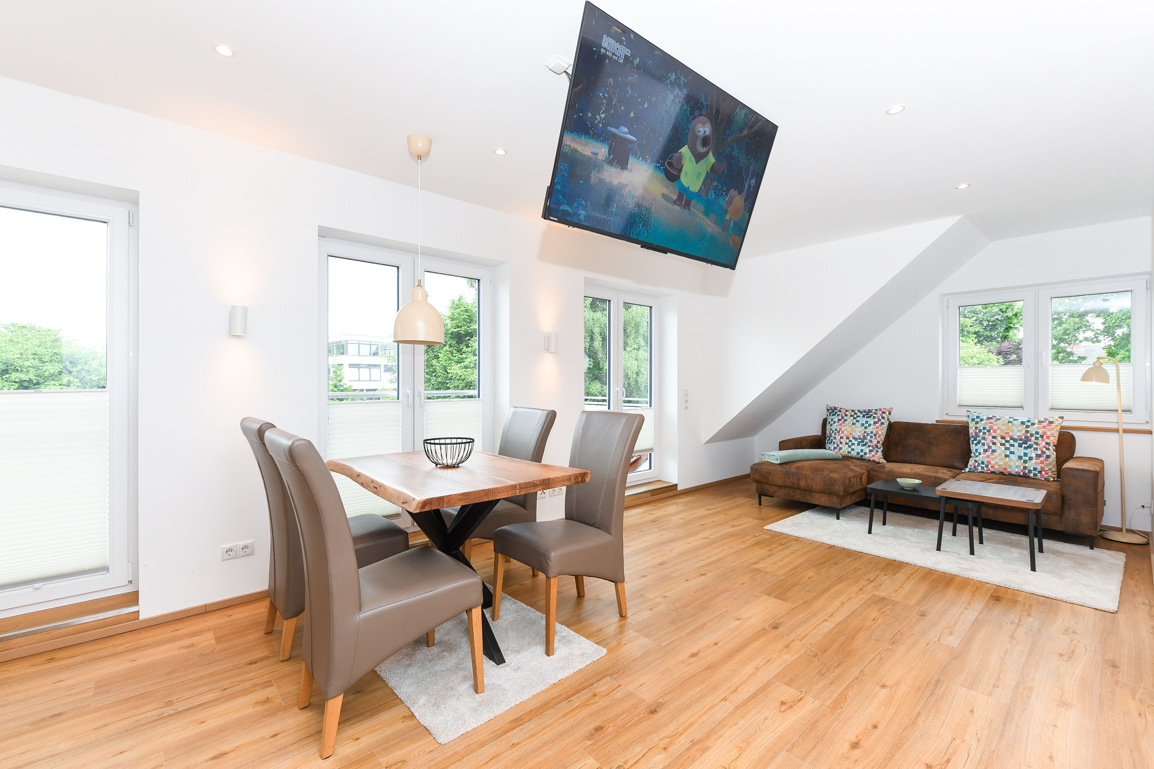 Die Ferienwohnung sind geschmackvoll, hell und freundlich eingerichtet und technisch hochwertig ausgestattet. Die Wohnung bietet eine schöne Dachterrasse mit schönem Ausblick über die Stadt.