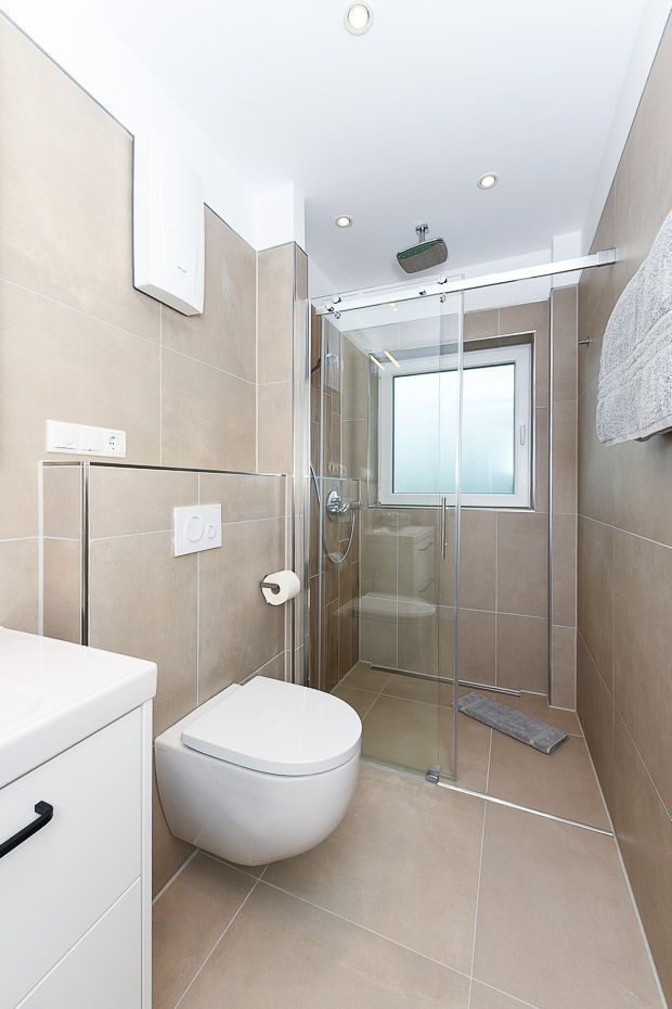 Badezimmer mit Dusche, Waschtisch, Bidet und WC