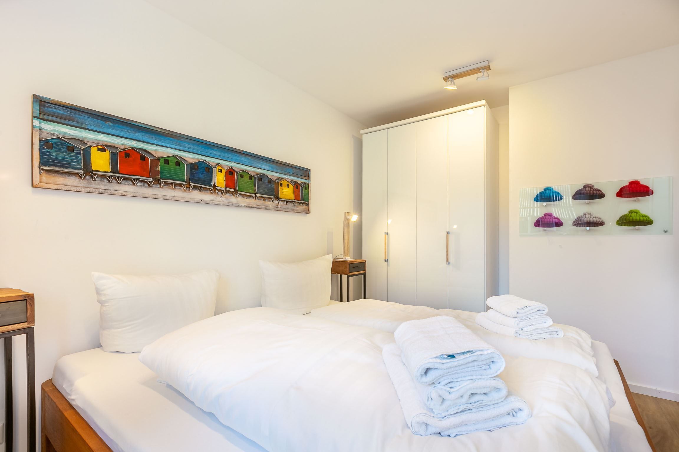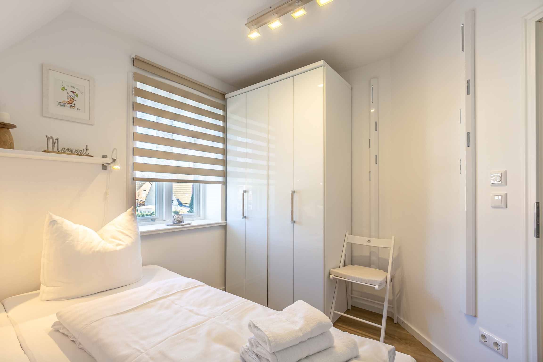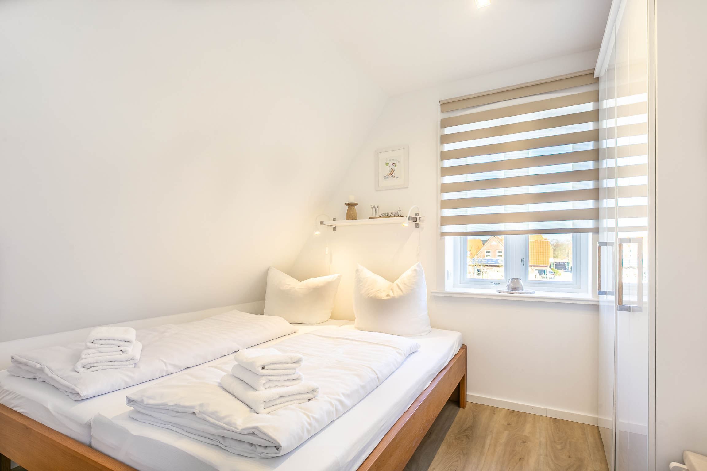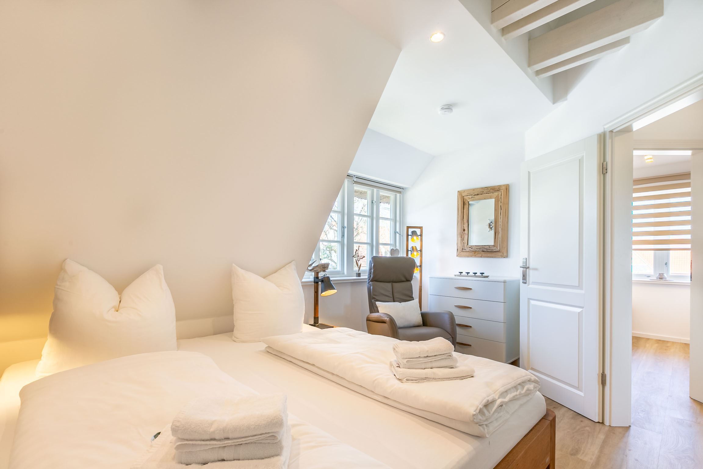 2. Schlafzimmer (OG) mit Doppelbett (2x 90x200cm), Kleiderschrank, Kommode und Sessel.