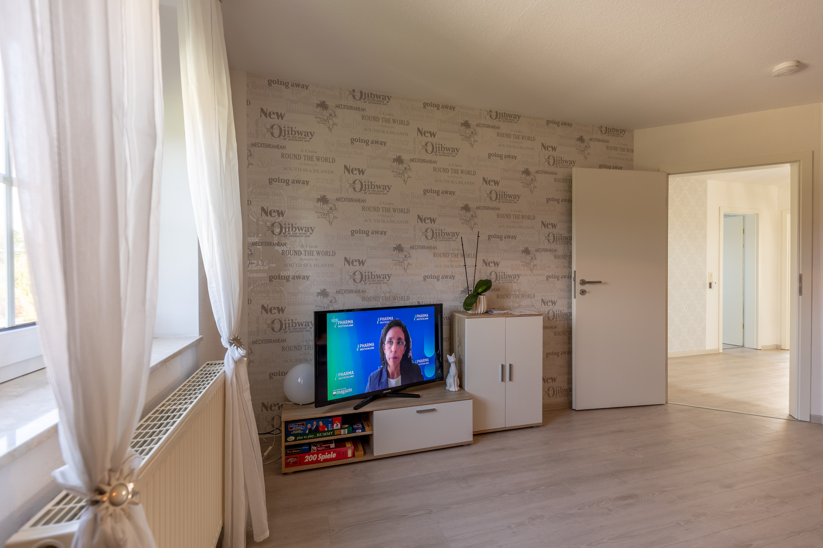 Wohnbereich: Ein Fernseher sorgt für gemütliche Abende.