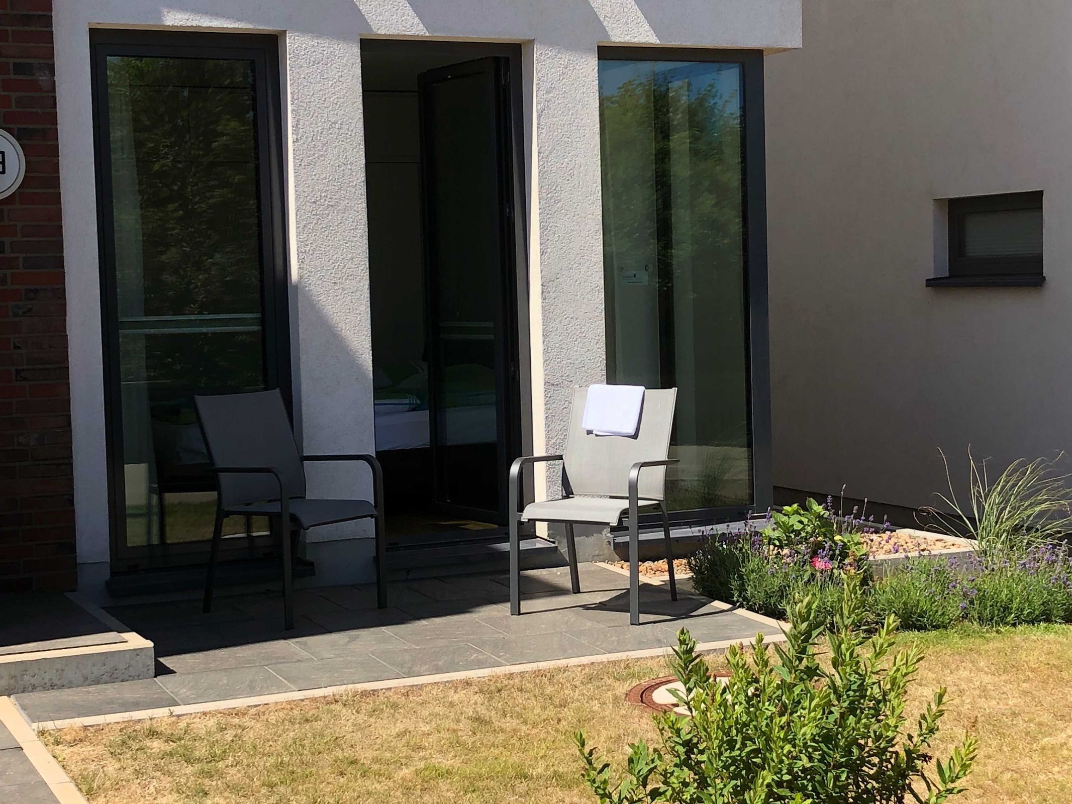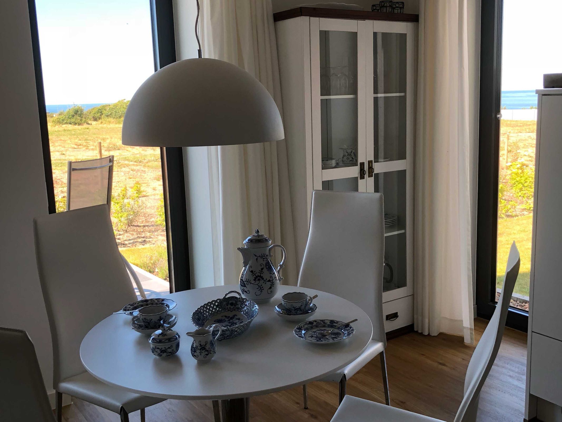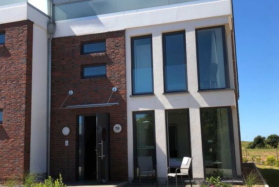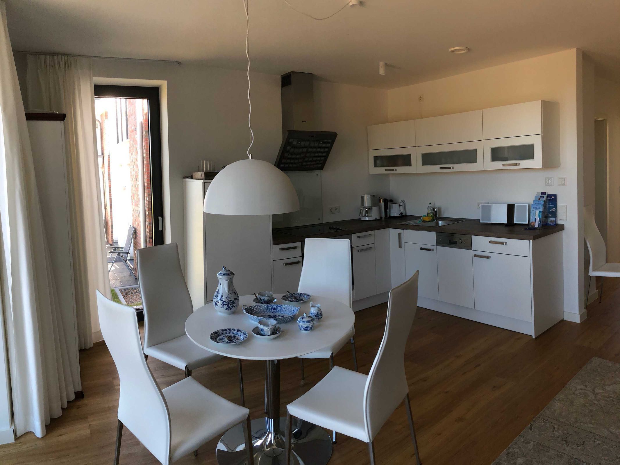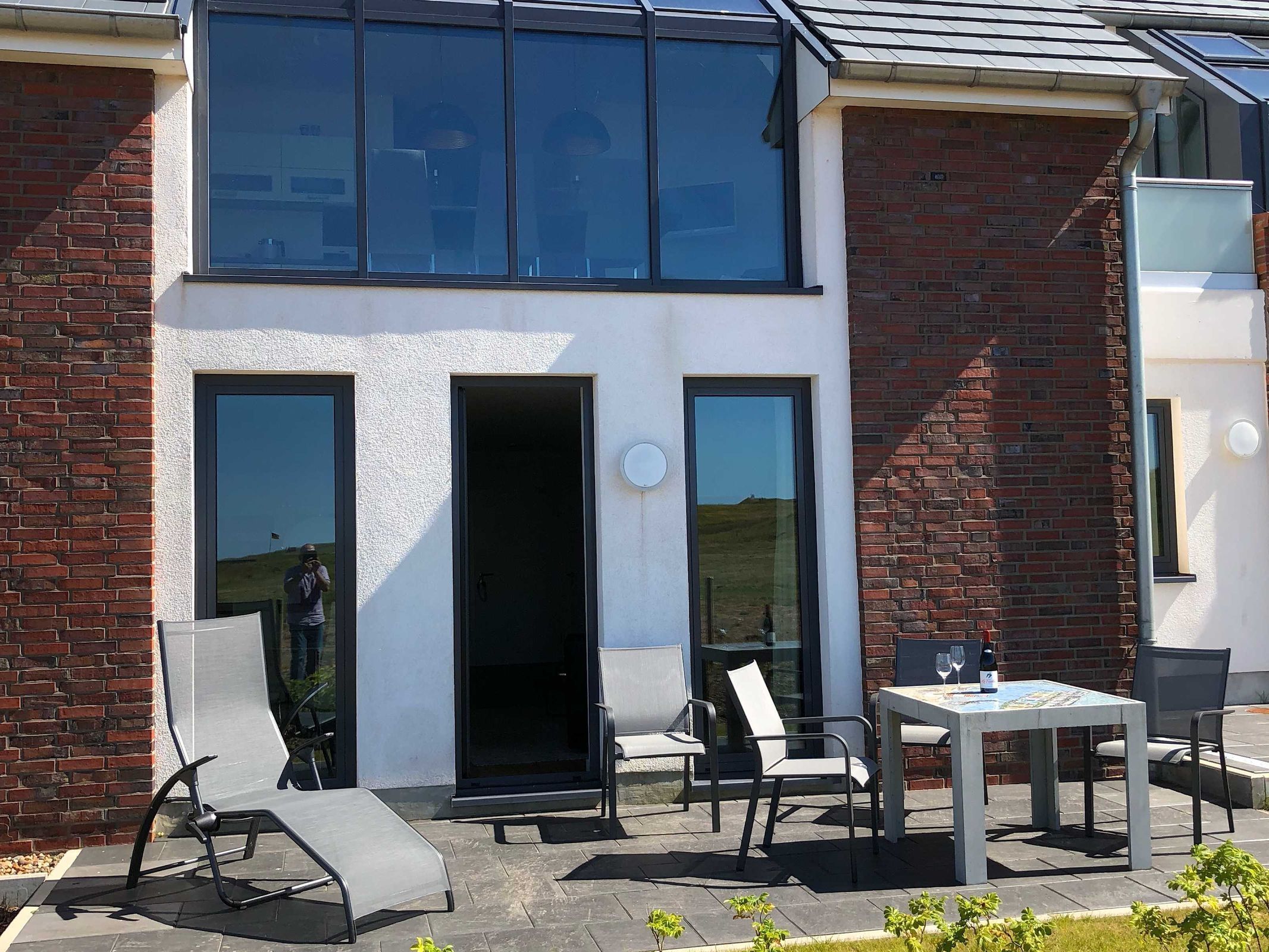 Die luxuriöse Wohnung hat ca. 59 qm Wohnfläche im Erdgeschoss. Der Wohnbereich verfügt über eine offene, komplett ausgestattete Küche und Essplatz und Zugang zur Terrasse mit einem unverbauten Blick auf die Nordsee und das grüne Oberland. Duschbad und WC sind separat. WLAN, TV und Radio/Dockingstation stehen zur Verfügung.