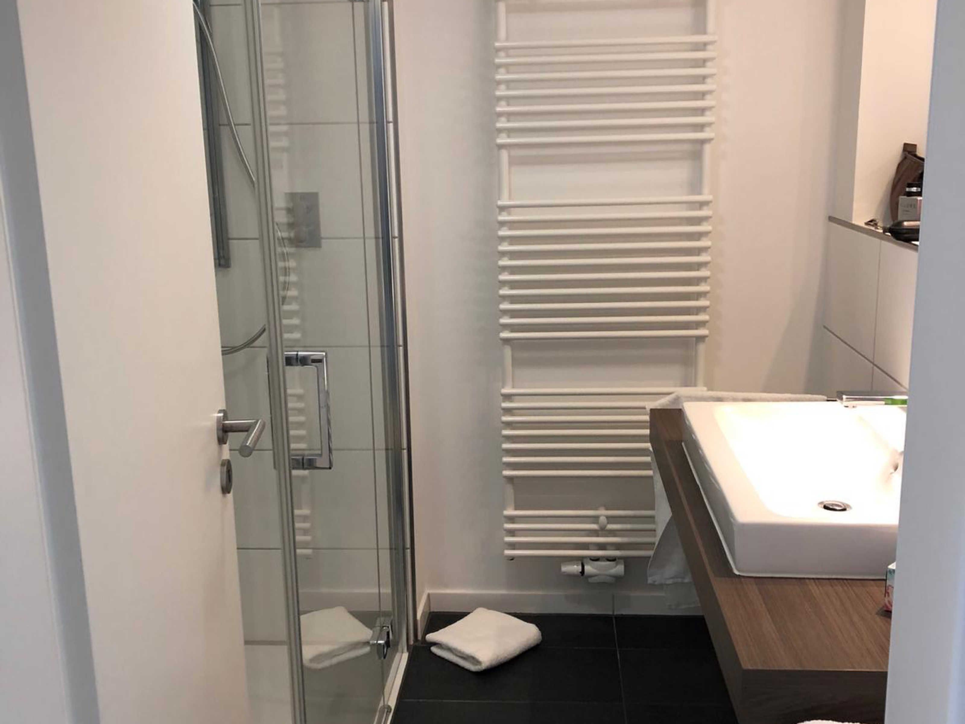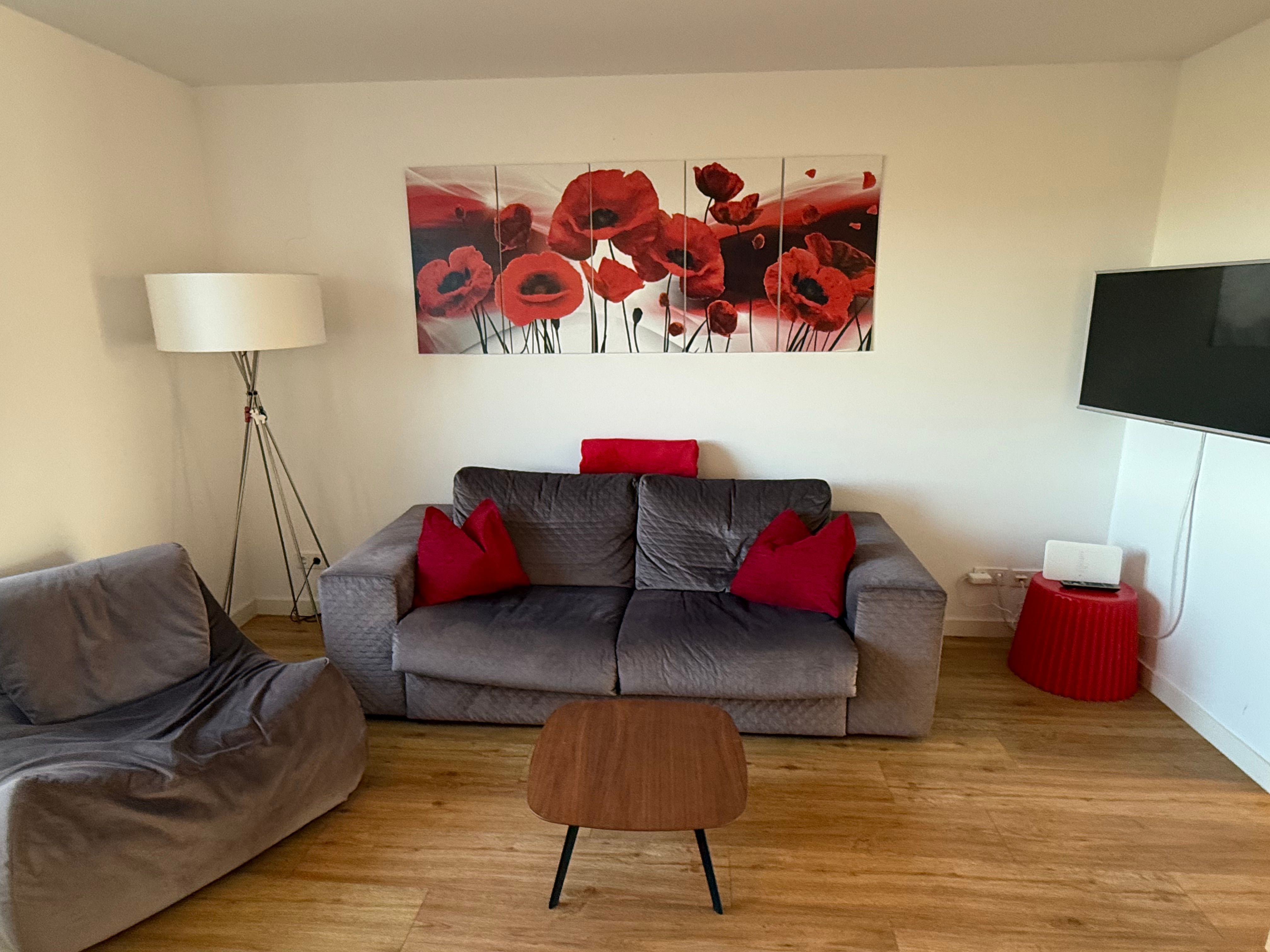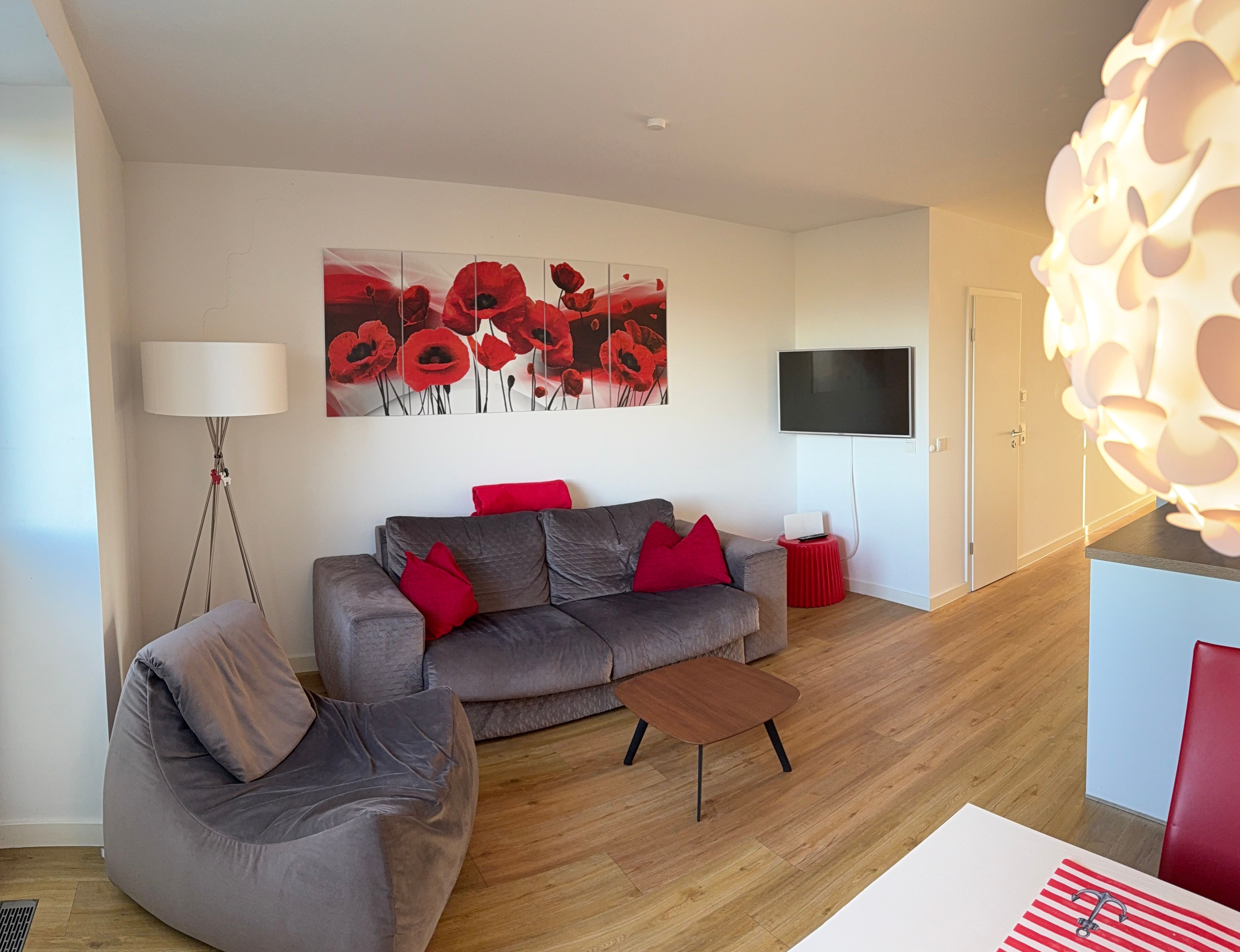 Die luxuriöse Wohnung hat ca. 55 qm Wohnfläche und befindet sich im Erdgeschoss. Der Wohnbereich mit offener