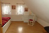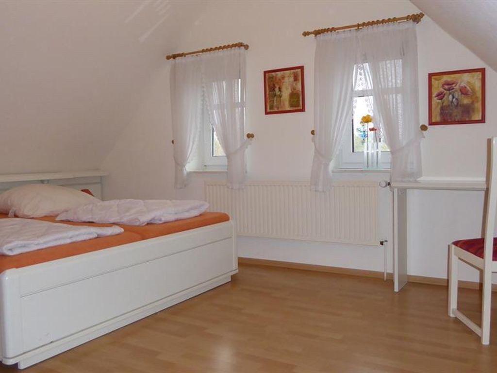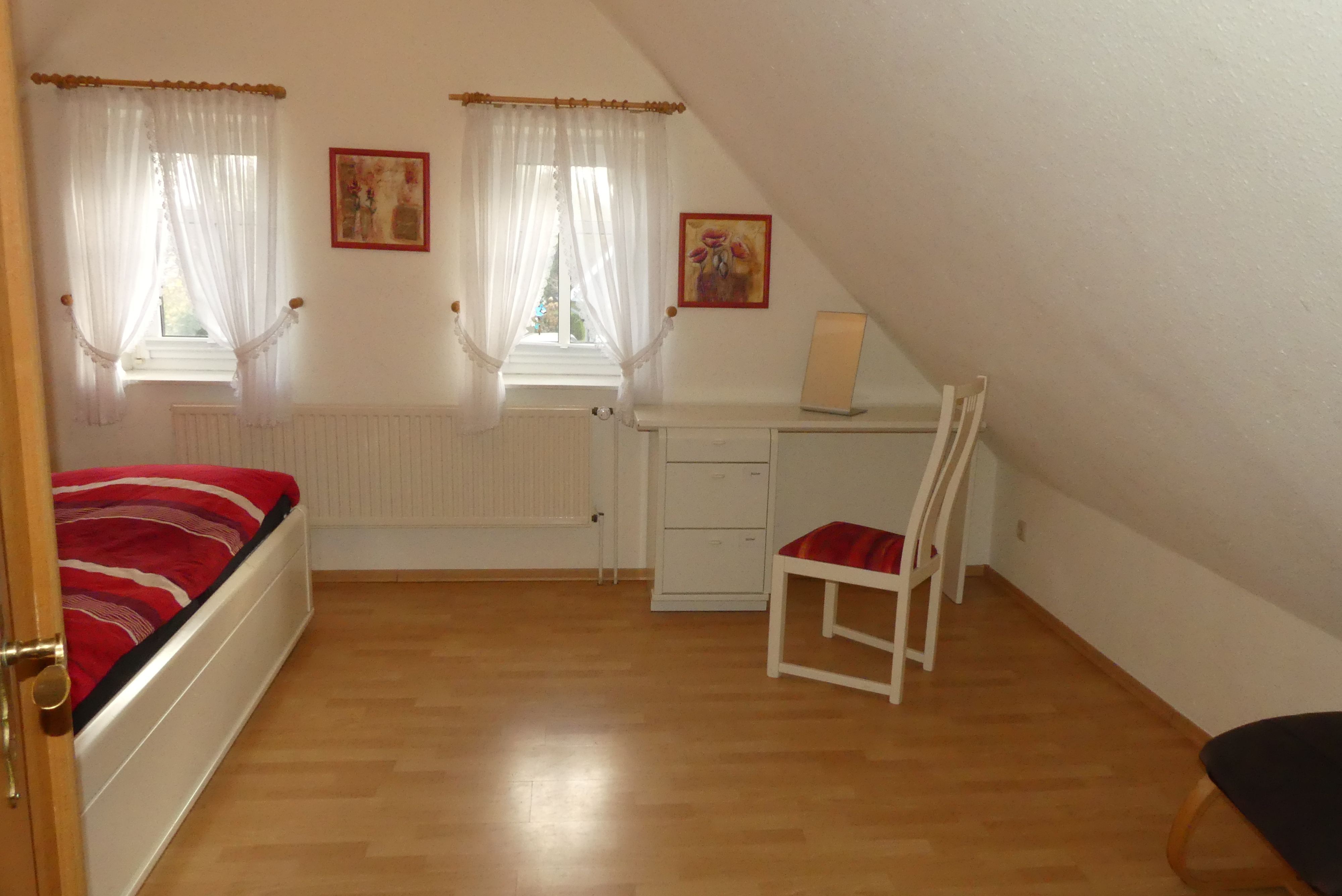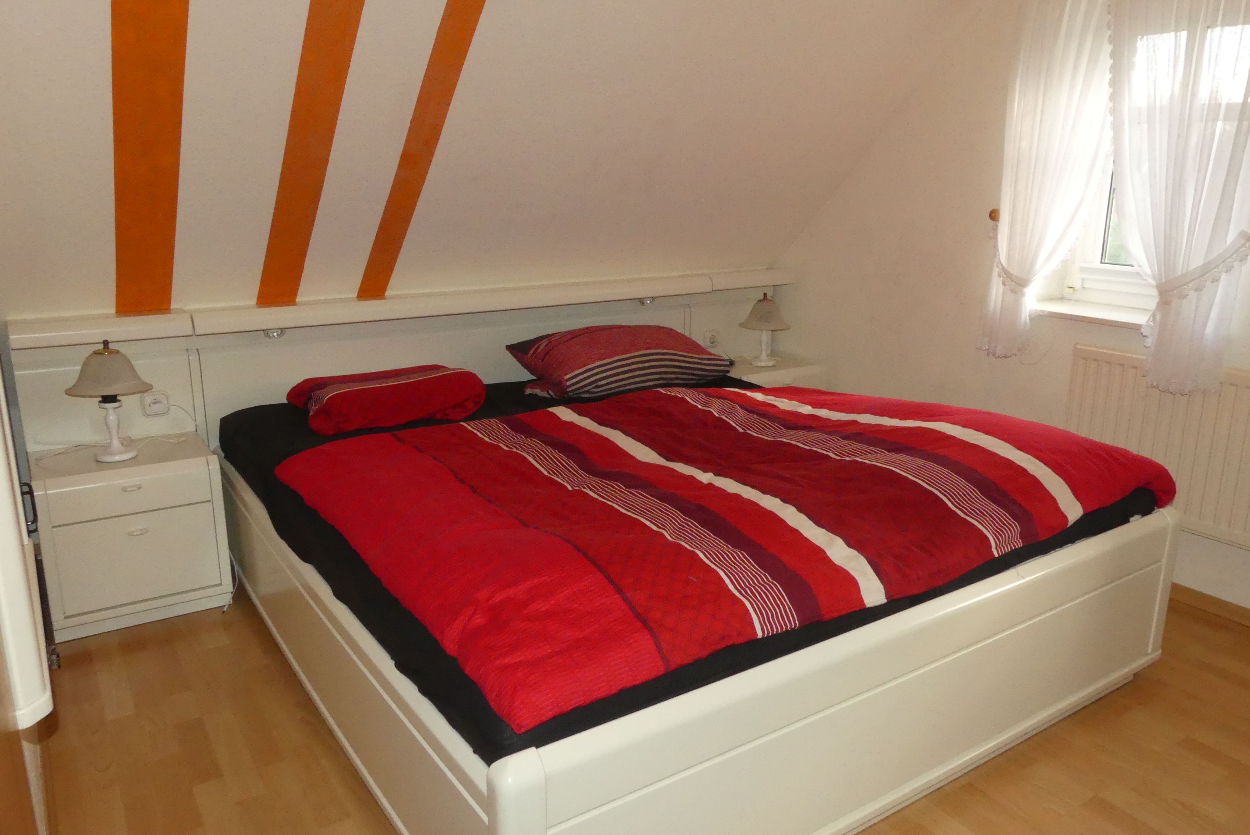Im Obergeschoss finden Sie das großzügige Elternschlafzimmer sowie ein liebevoll gestaltetes Kinderzimmer, beide mit viel Ruhe und Gemütlichkeit für erholsame Nächte.