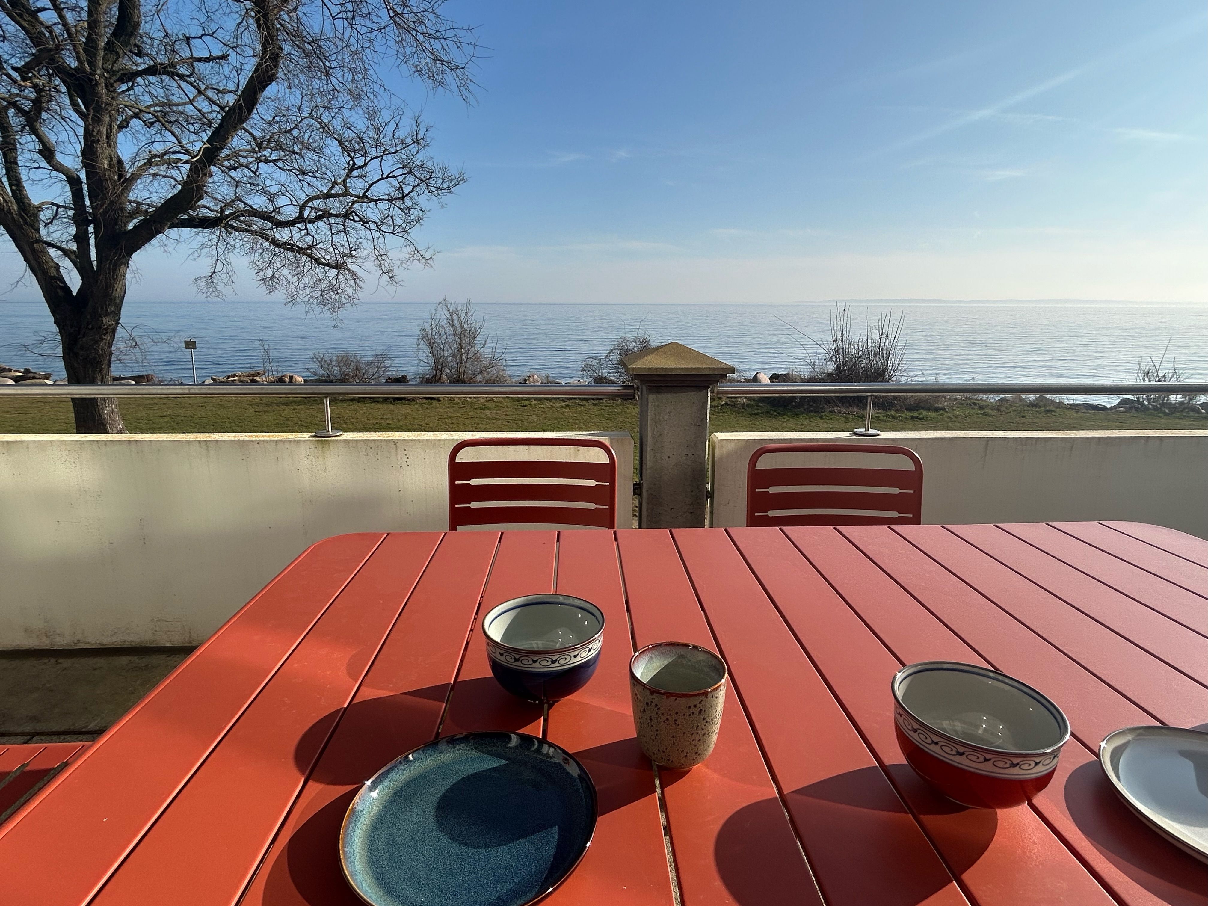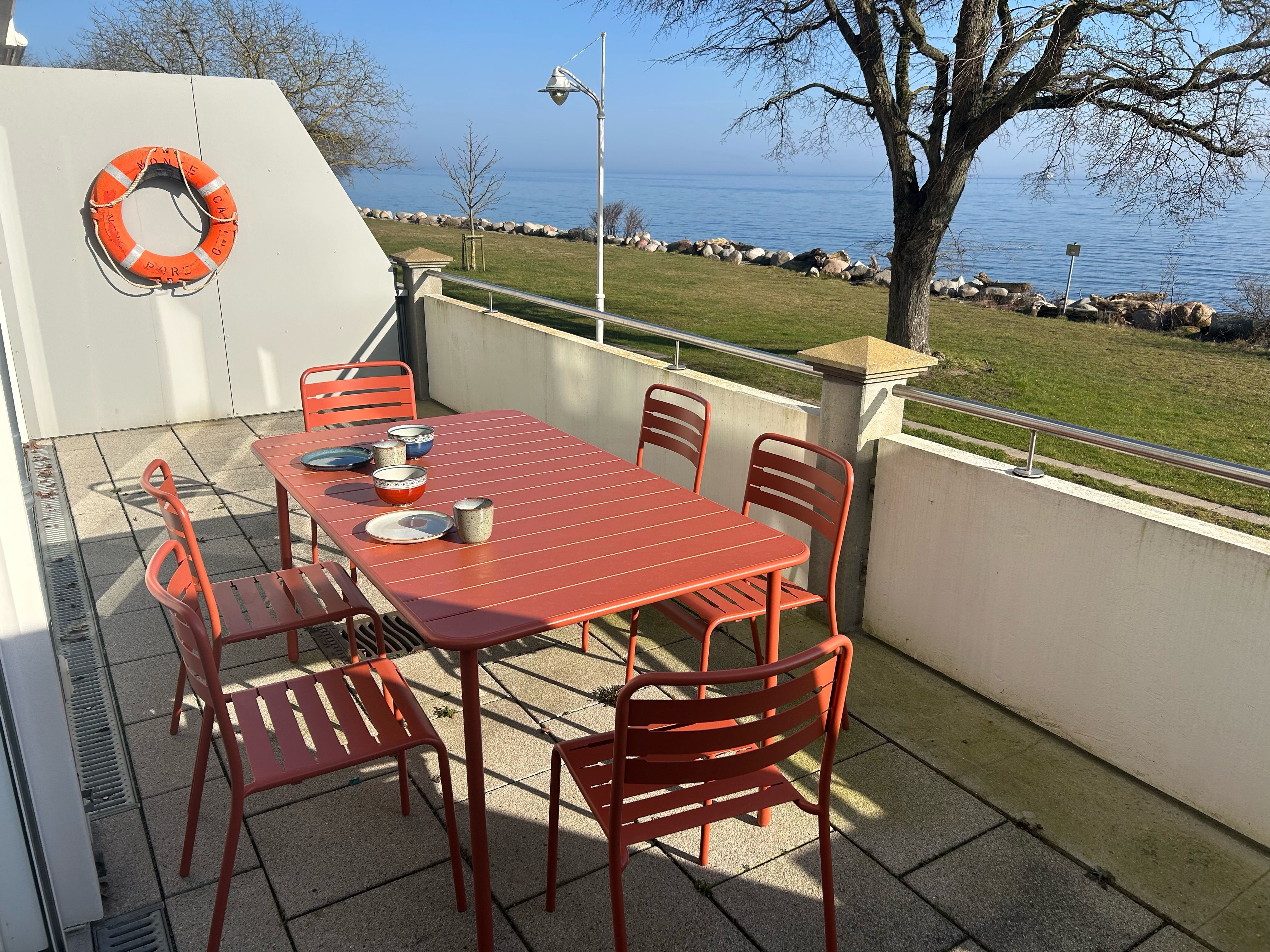 Unser Refugium befindet sich direkt an der Strandpromenade in Sassnitz. Die Ostsee ist tatsächlich nur ein paar Meter entfernt. Die Nähe zum Meer lässt sich auf dem großen Balkon oder auch von der Couch mit Ostseeblick genießen. Die Einrichtung ist charmant und farbenfroh.