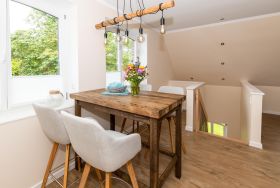 Unsere Wohnung Nr. 10 im Obergeschoss des 2019 erbauten „Haus am Teich“ ist ca. 45 m² groß und bietet Platz für 2 Personen.